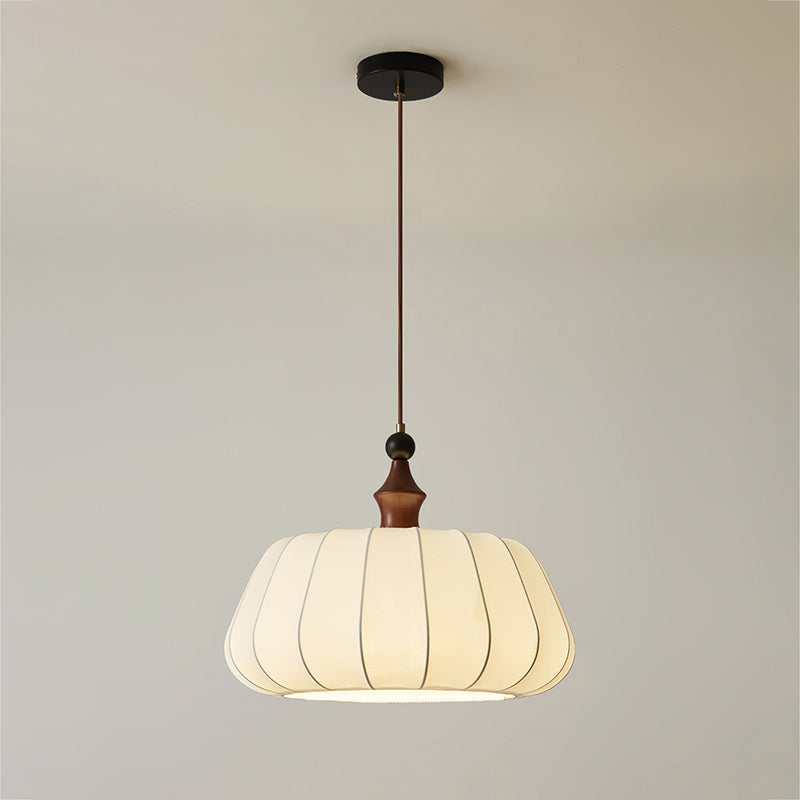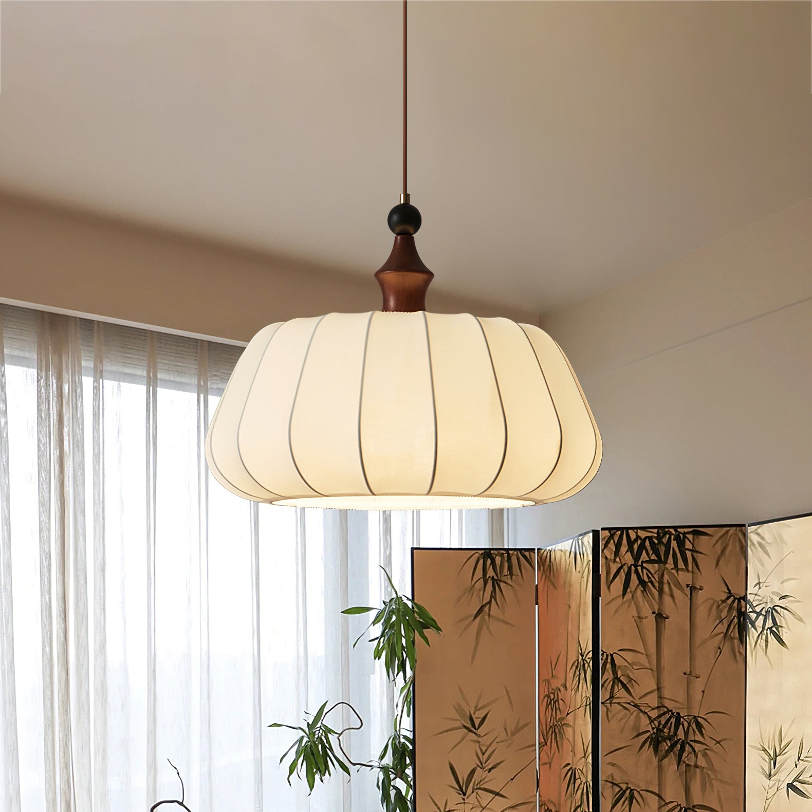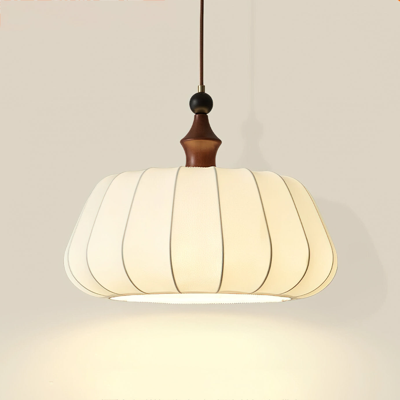 The Daynav Pendant Light from Mooijane blends natural materials with refined craftsmanship. Featuring a solid wood top that highlights the warm, organic grain, it’s paired with a hand-wrapped off-white fabric shade inspired by lanterns or pumpkins. Its soft, rounded silhouette evokes vintage charm while casting a warm, inviting glow.