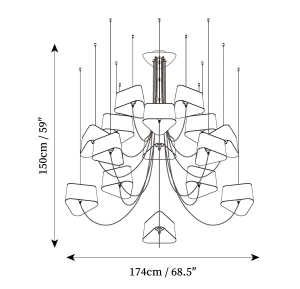 - 15 heads Size: Dia 174cm x H 150cm / ∅ 68.5″ x H 59.1″