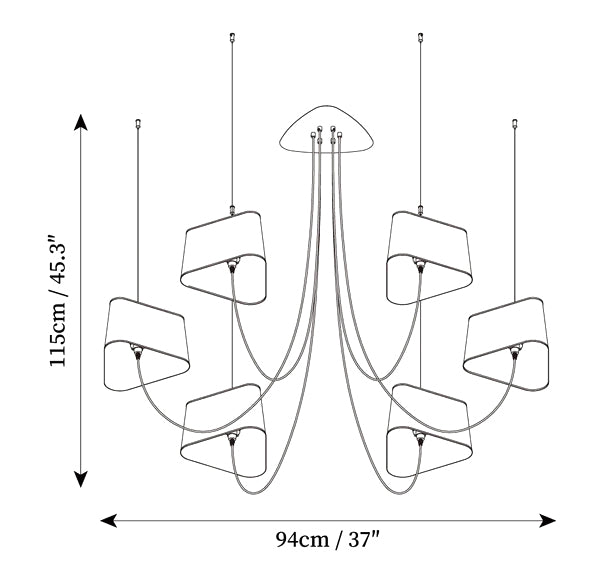 - 6 heads Size: Dia 94cm x H 115cm / ∅ 37″ x H 45.3″