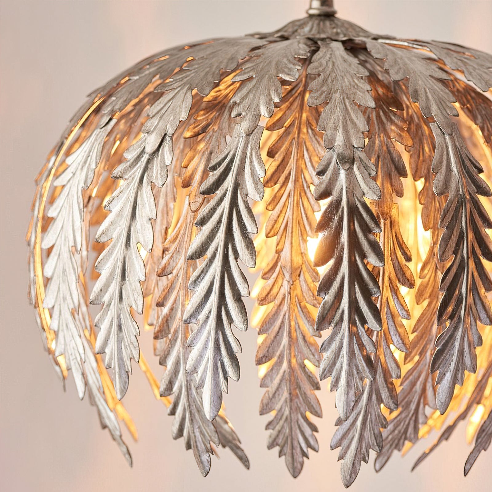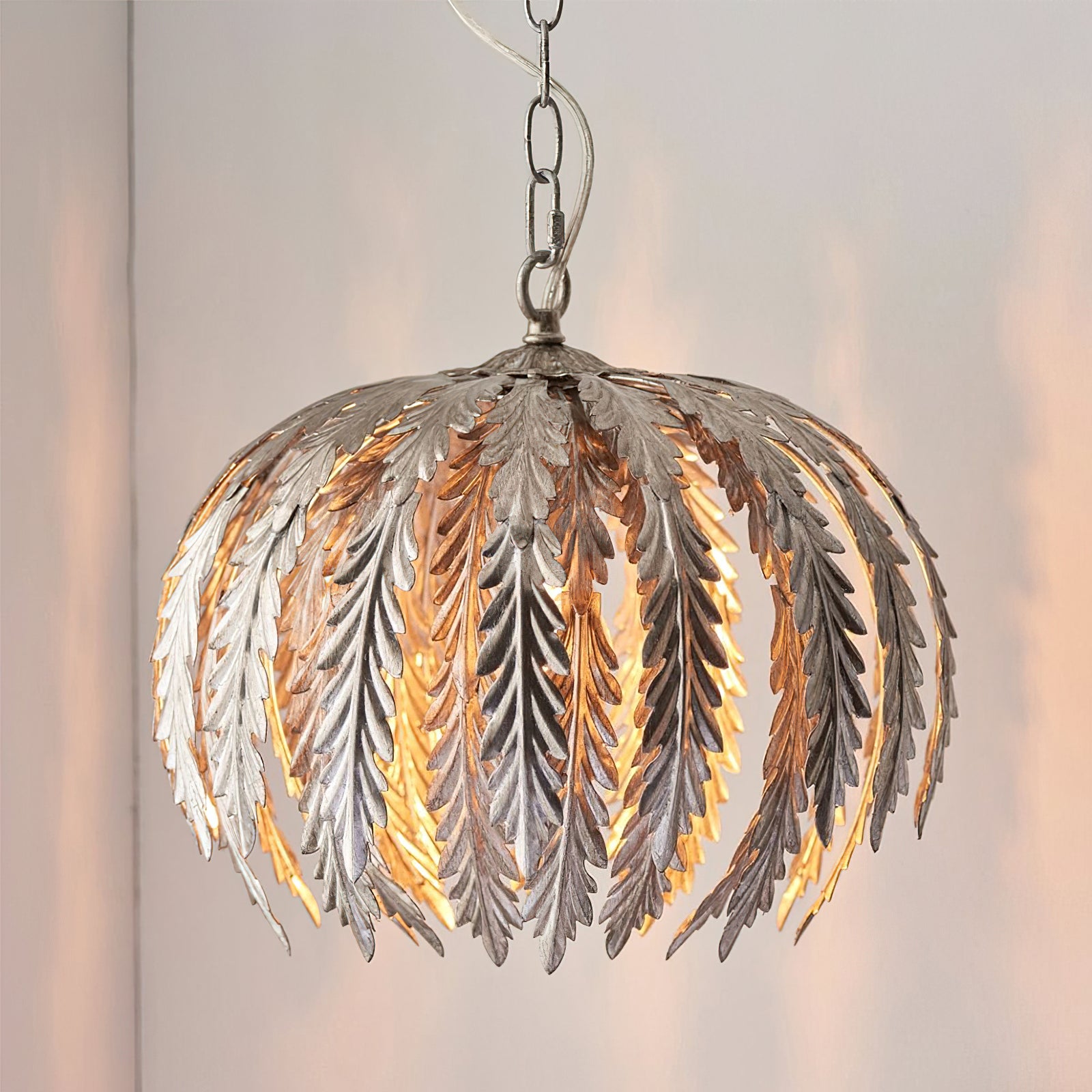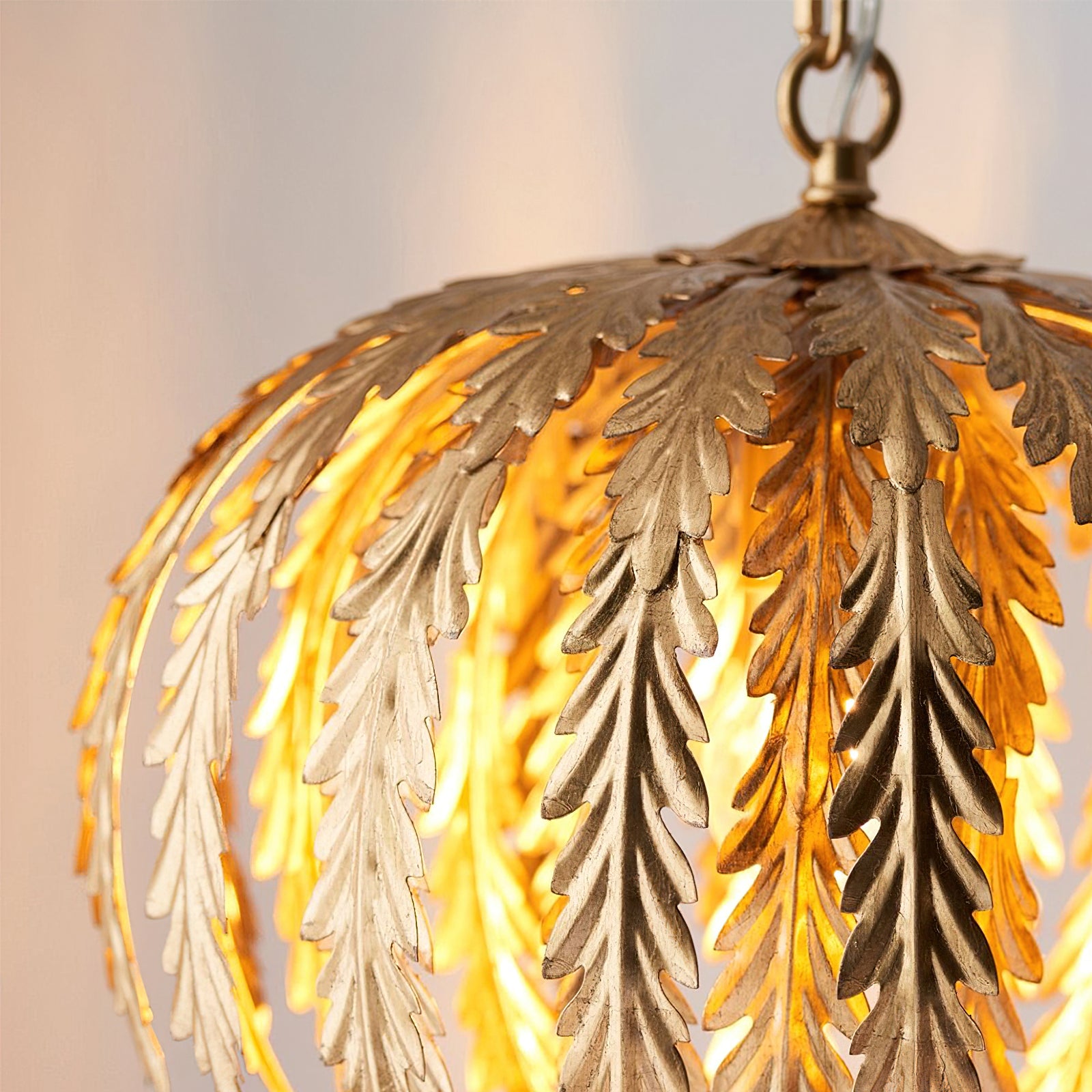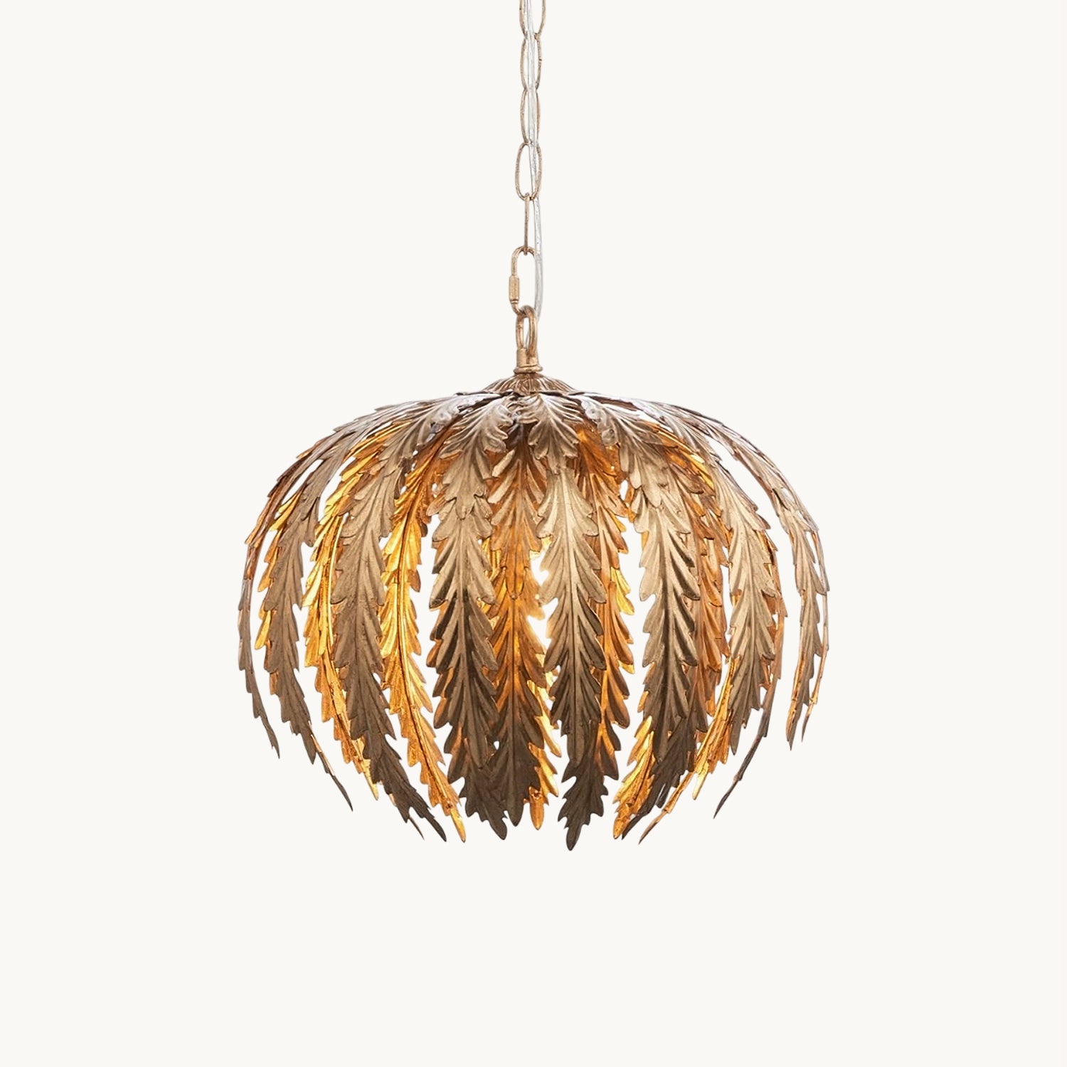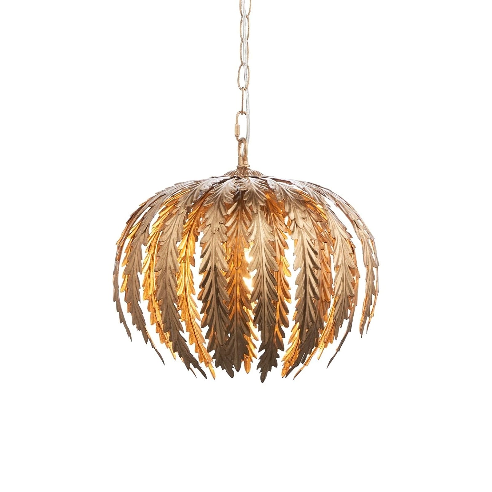 Transform your living space with the Delphine Pendant Lamp by Mooijane. This stunning chandelier features intricately designed golden feathers that dance in the light, while the height-adjustable chains allow for a customizable and enchanting ambiance. Elevate your decor with this opulent and exclusive piece.