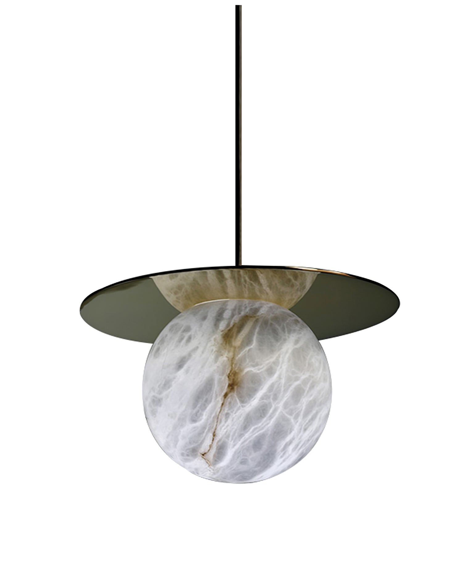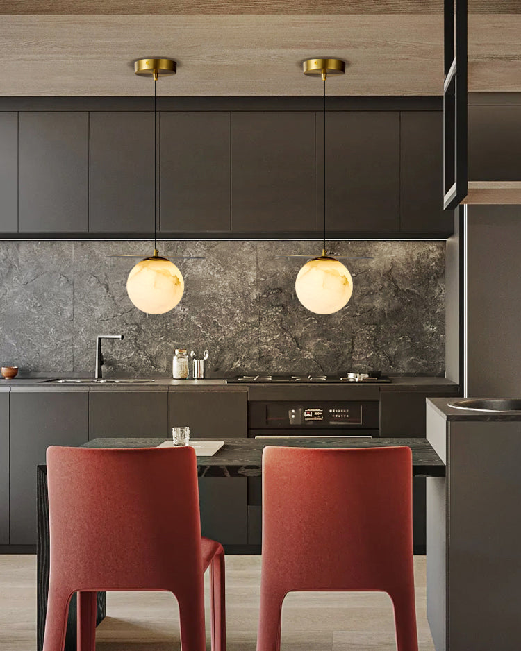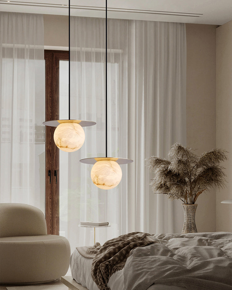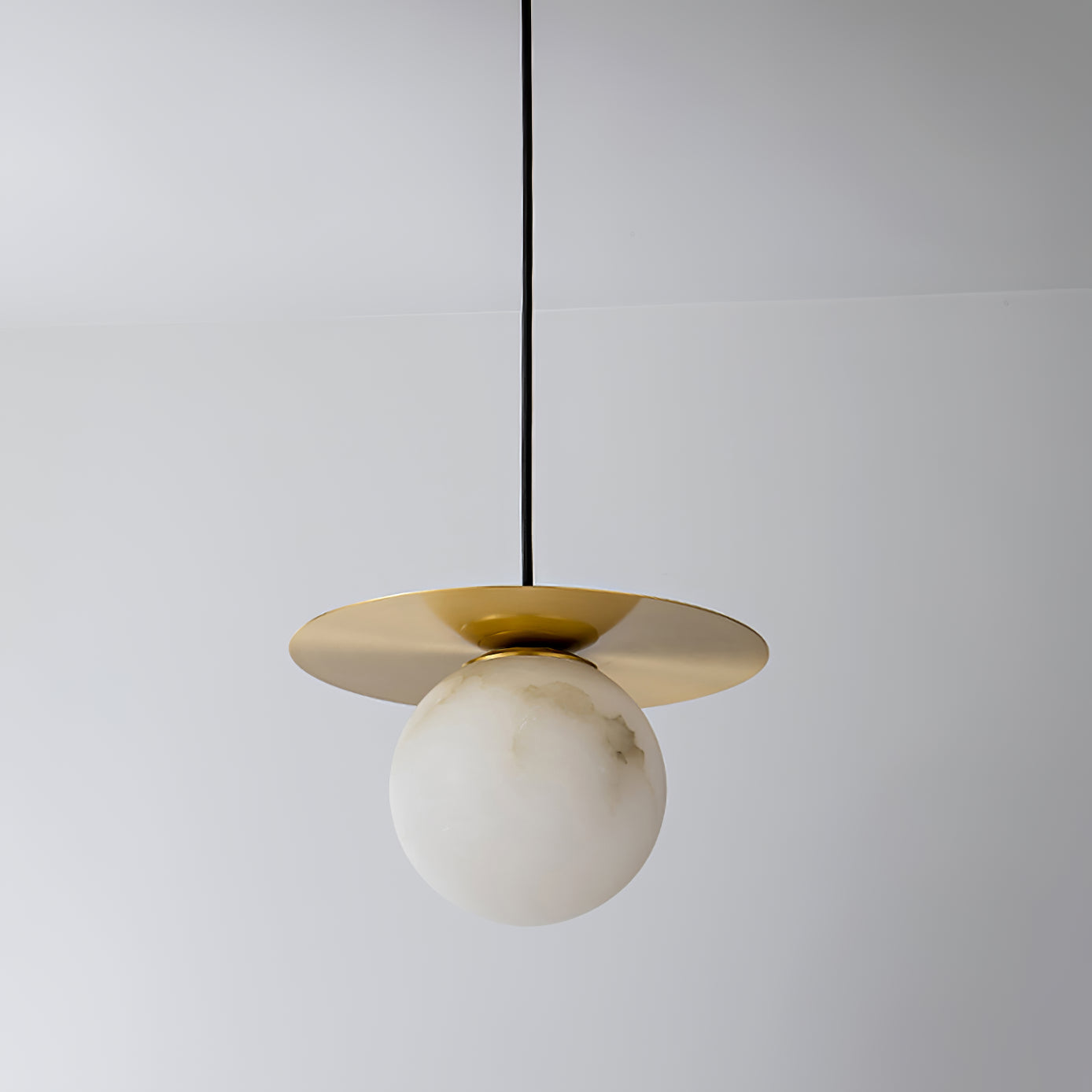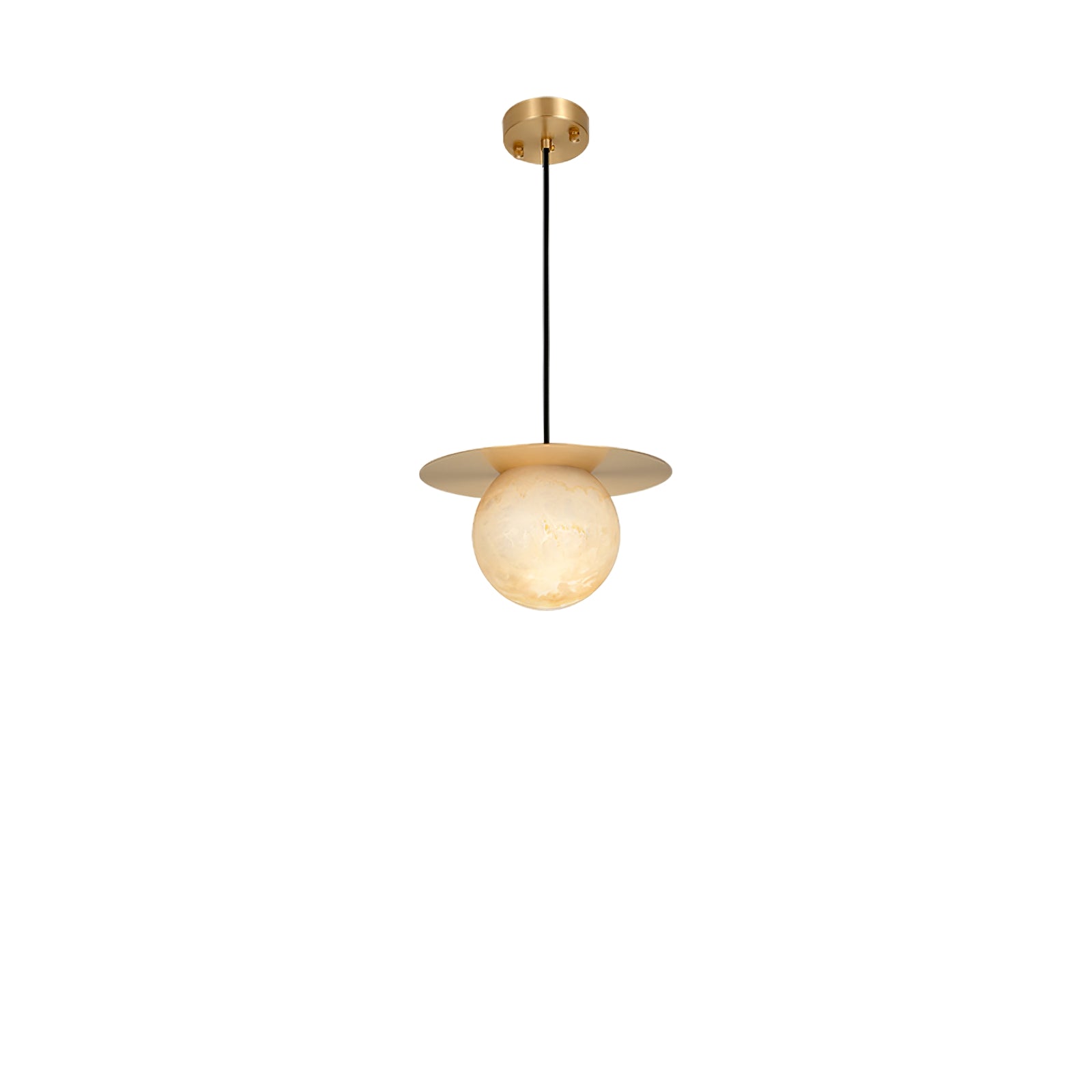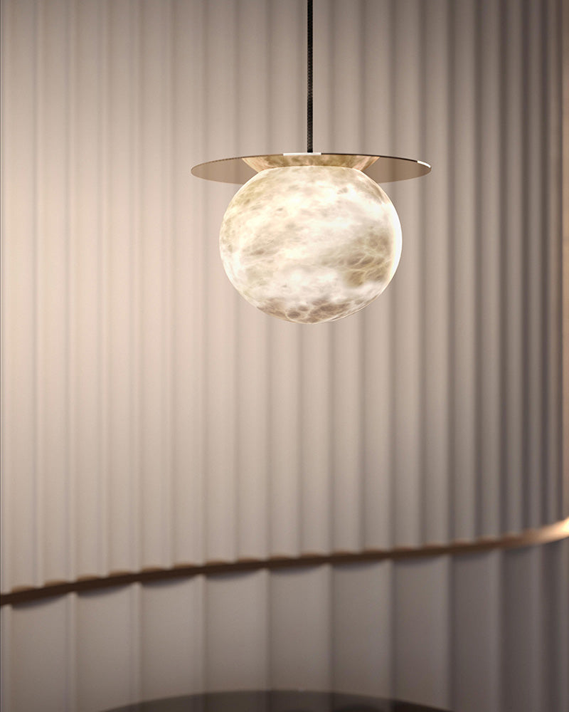 Elevate your decor with the Disc Alabaster Pendant Light from liootrlamp. This contemporary pendant light features a striking alabaster sphere suspended beneath a sleek, golden disc, creating a stunning visual contrast. Perfect for modern interiors, it adds a touch of elegance and sophistication to any room. Ideal for dining areas, kitchens, or living spaces, this pendant light combines artistic design with functional lighting to enhance your home beautifully.