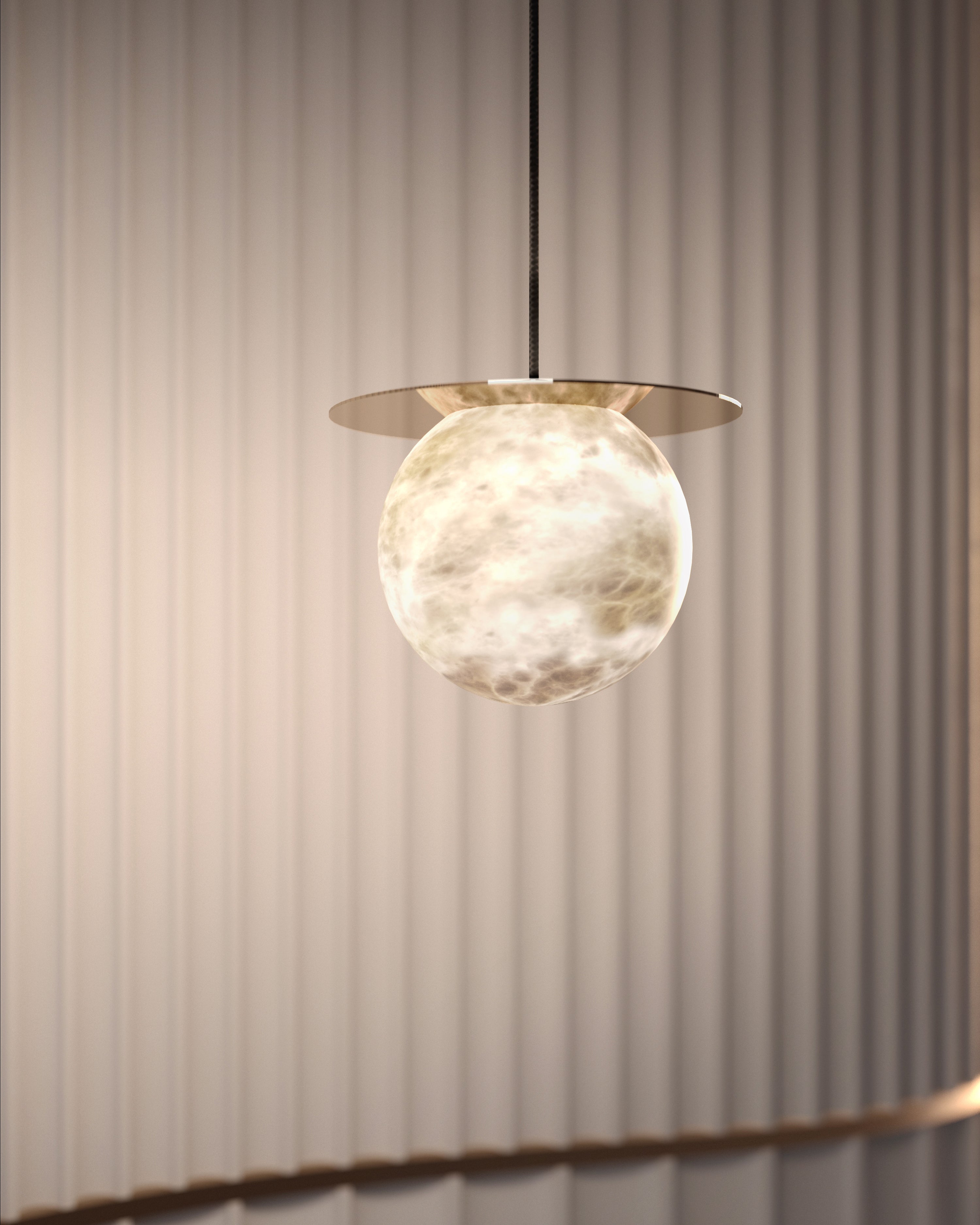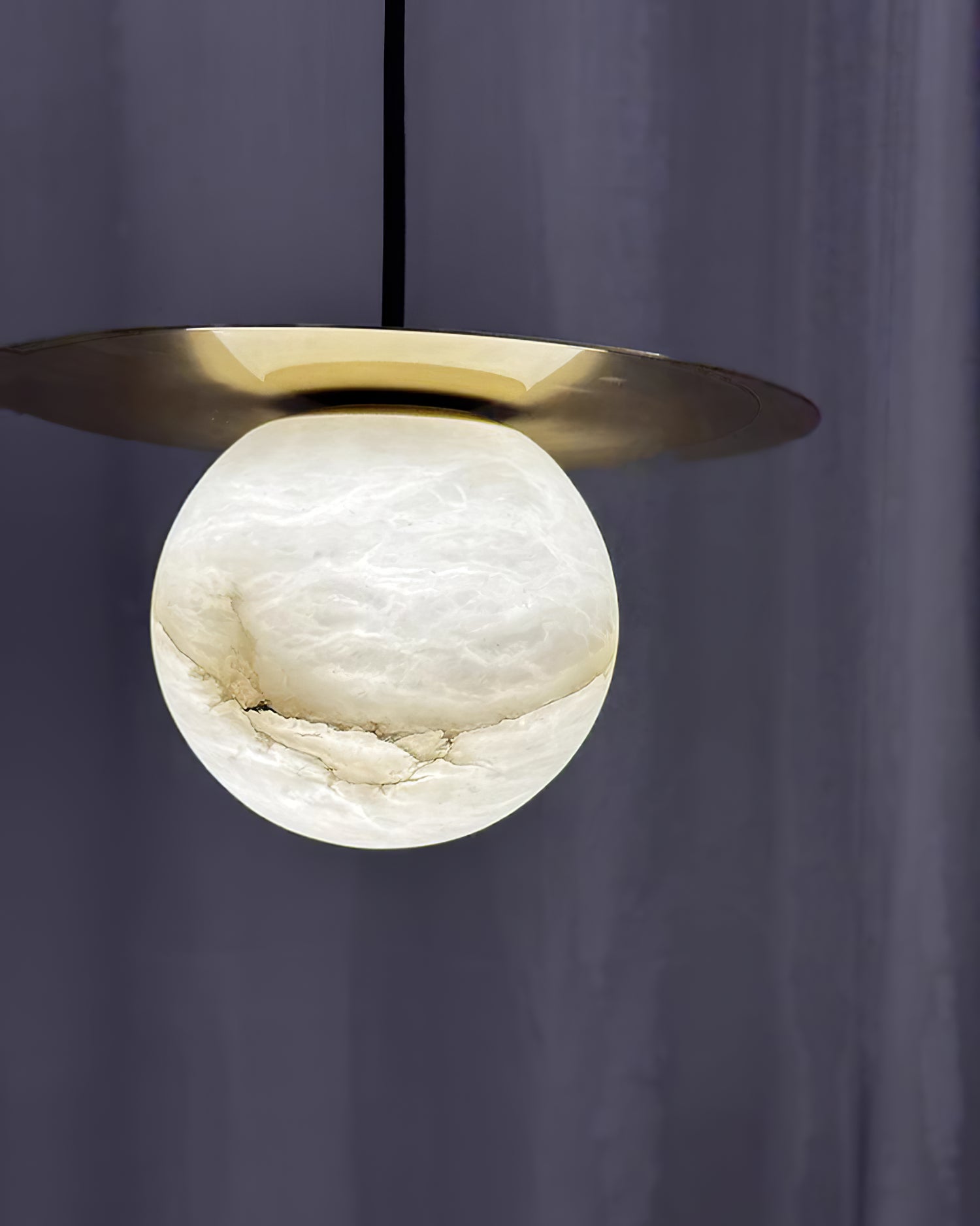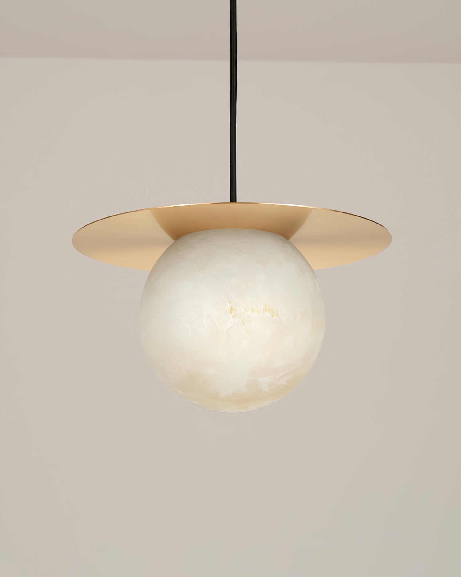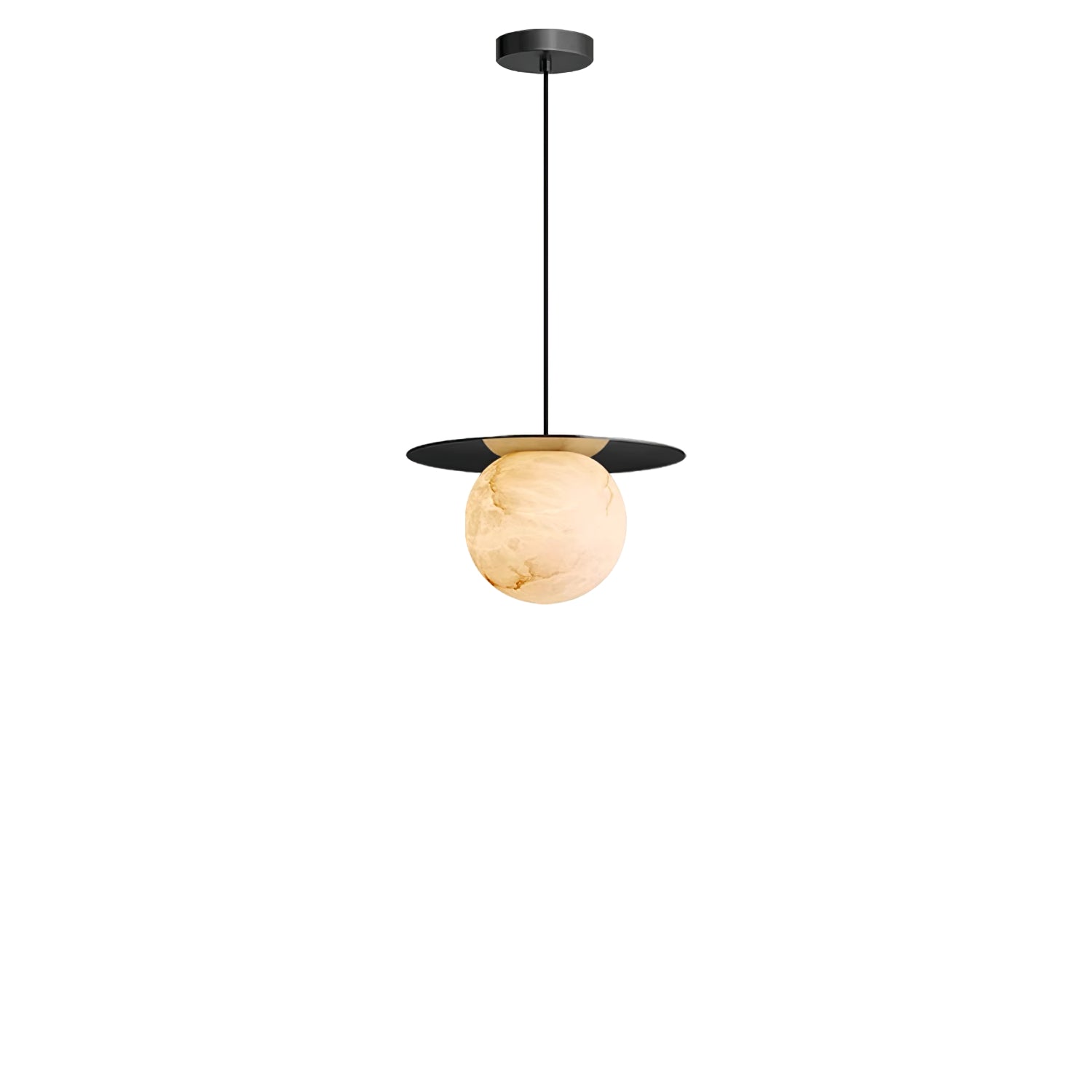 Elevate your decor with the Disc Alabaster Pendant Light from liootrlamp. This contemporary pendant light features a striking alabaster sphere suspended beneath a sleek, golden disc, creating a stunning visual contrast. Perfect for modern interiors, it adds a touch of elegance and sophistication to any room. Ideal for dining areas, kitchens, or living spaces, this pendant light combines artistic design with functional lighting to enhance your home beautifully.
