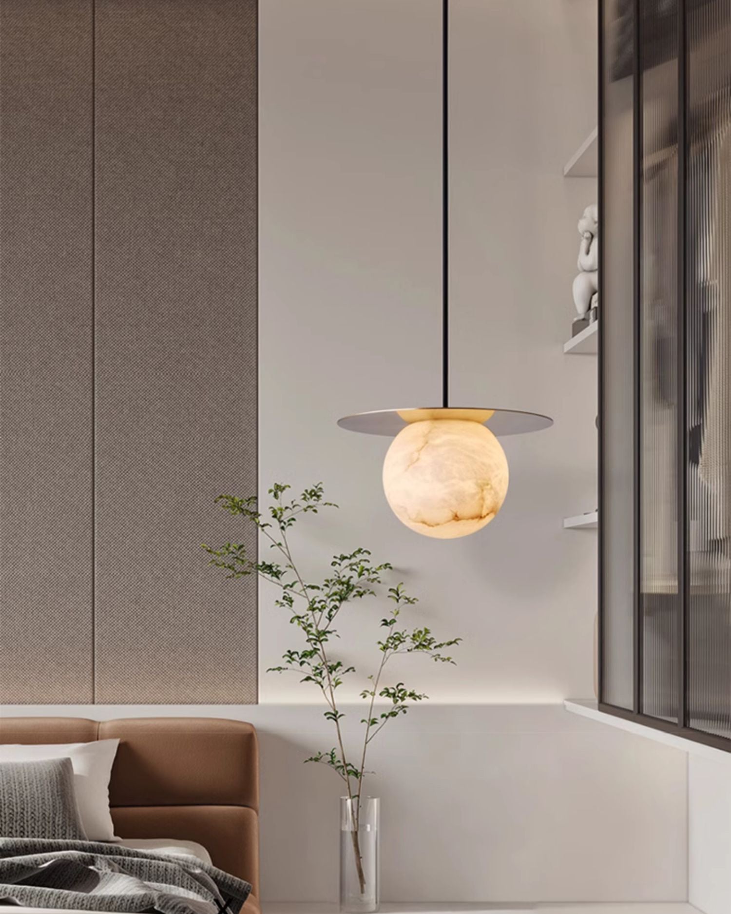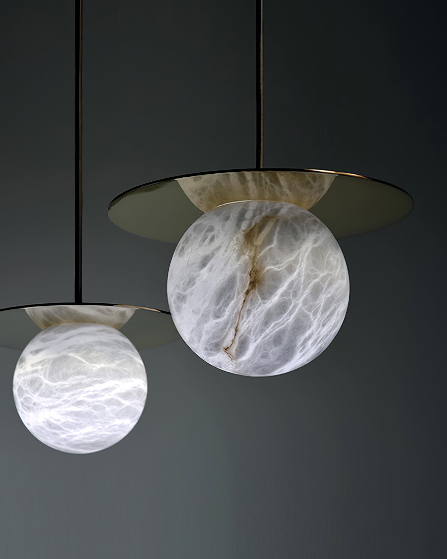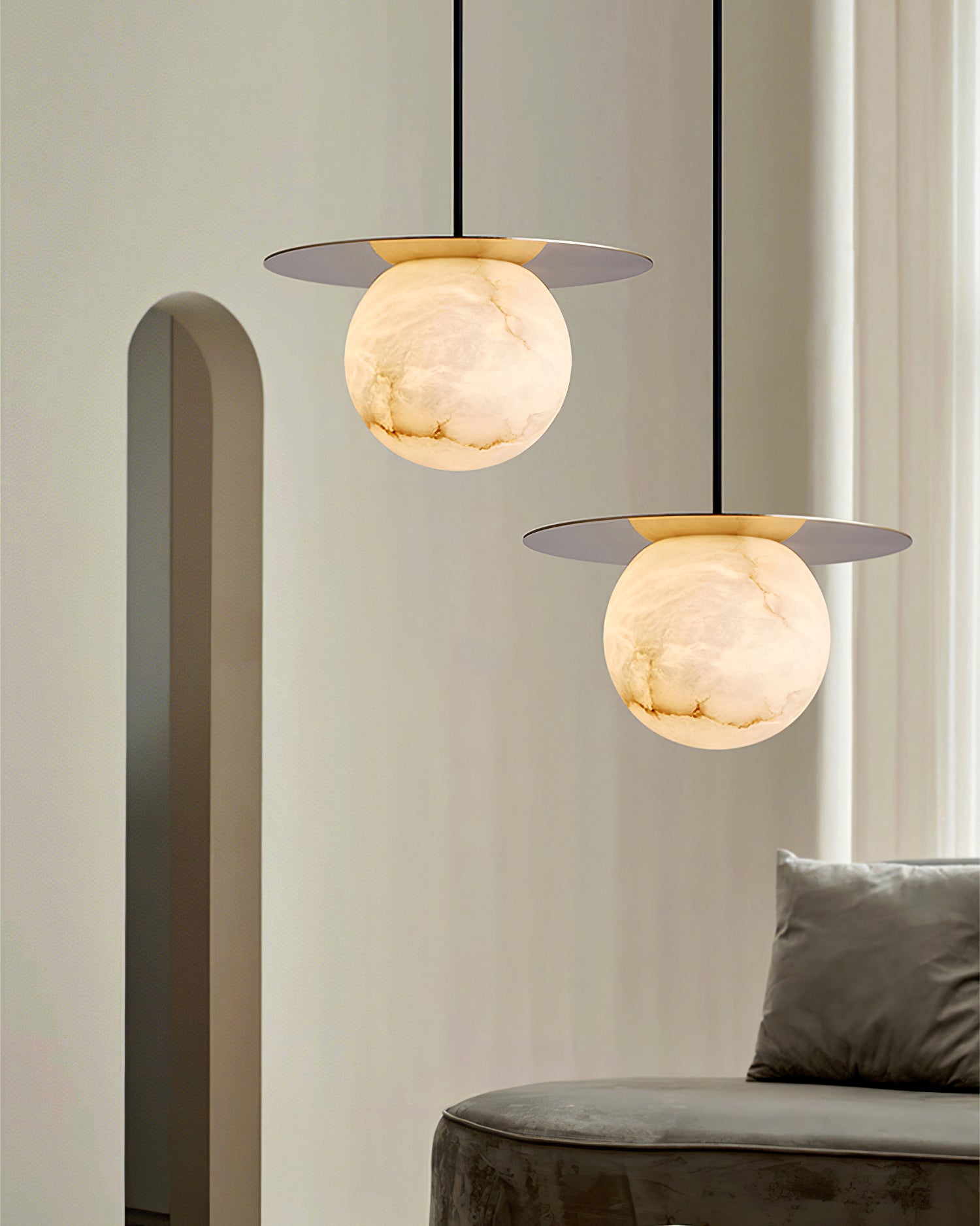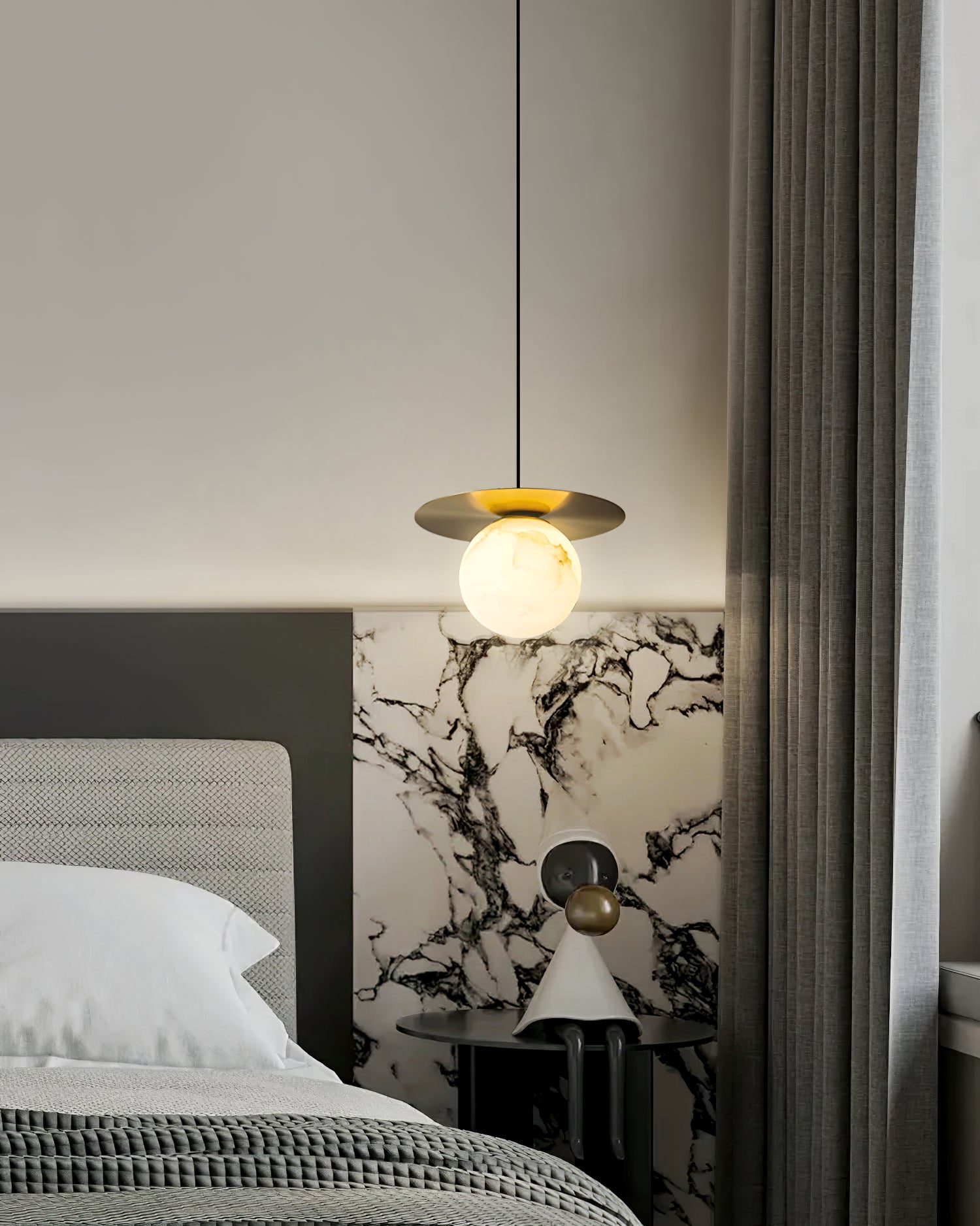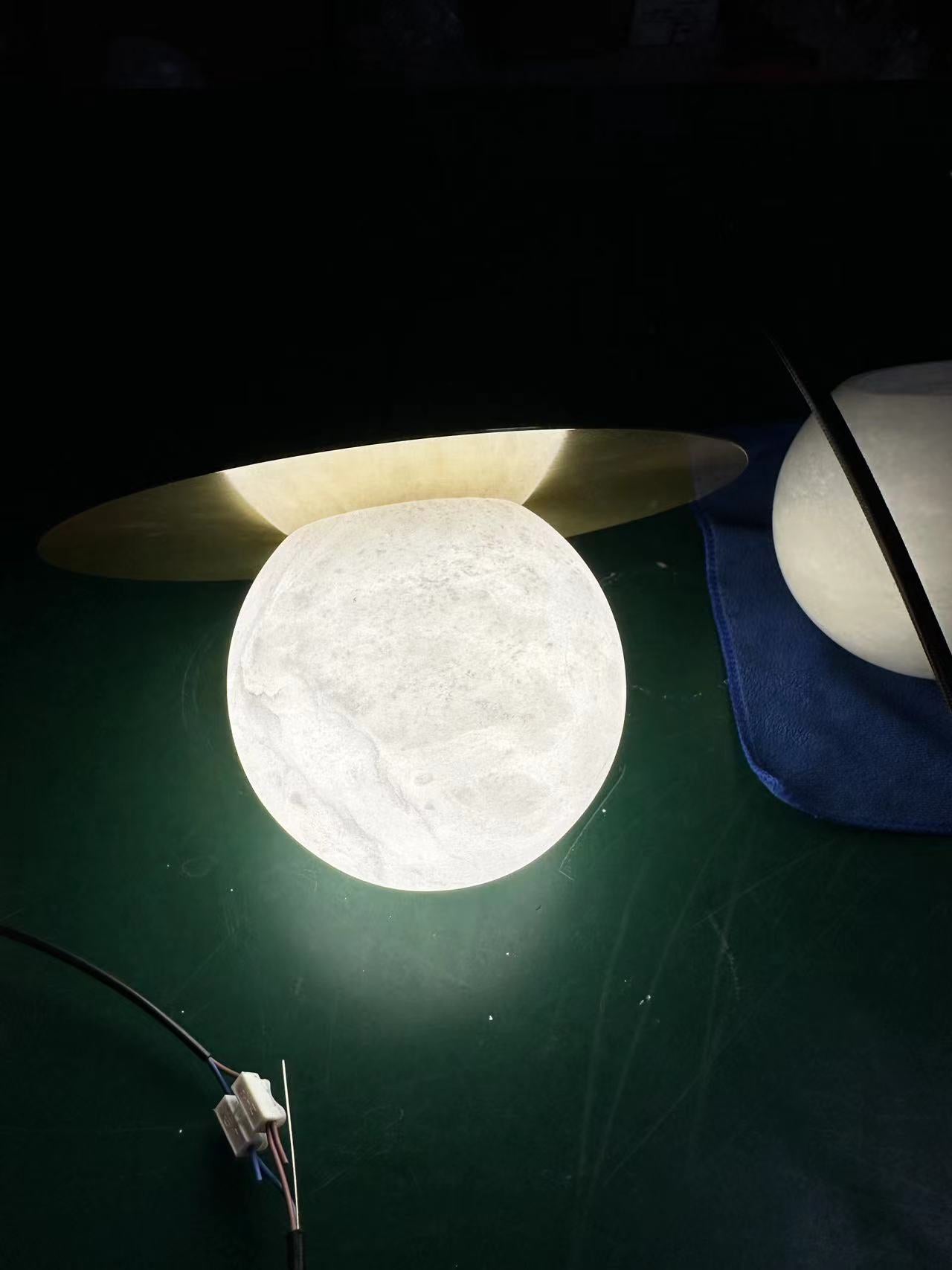 Elevate your decor with the Disc Alabaster Pendant Light from liootrlamp. This contemporary pendant light features a striking alabaster sphere suspended beneath a sleek, golden disc, creating a stunning visual contrast. Perfect for modern interiors, it adds a touch of elegance and sophistication to any room. Ideal for dining areas, kitchens, or living spaces, this pendant light combines artistic design with functional lighting to enhance your home beautifully.