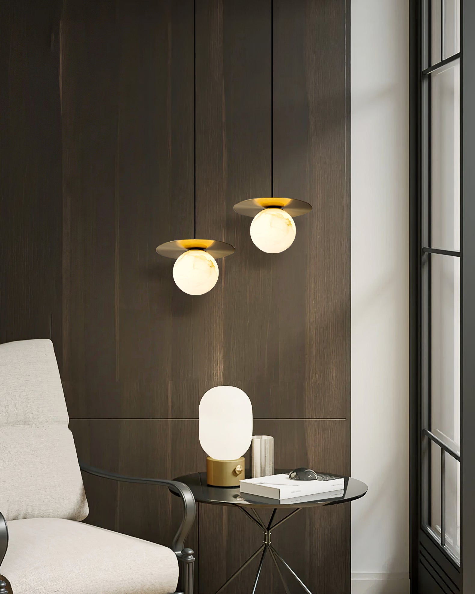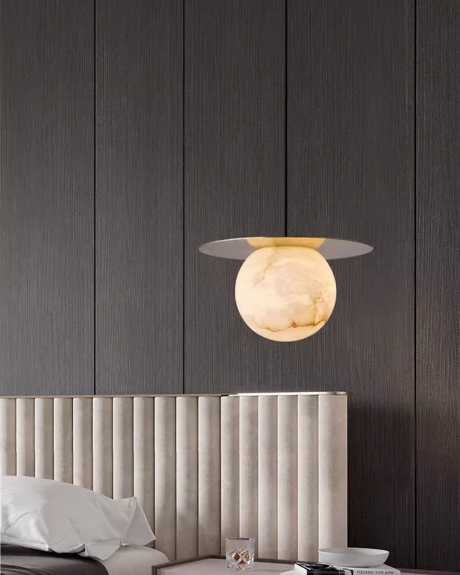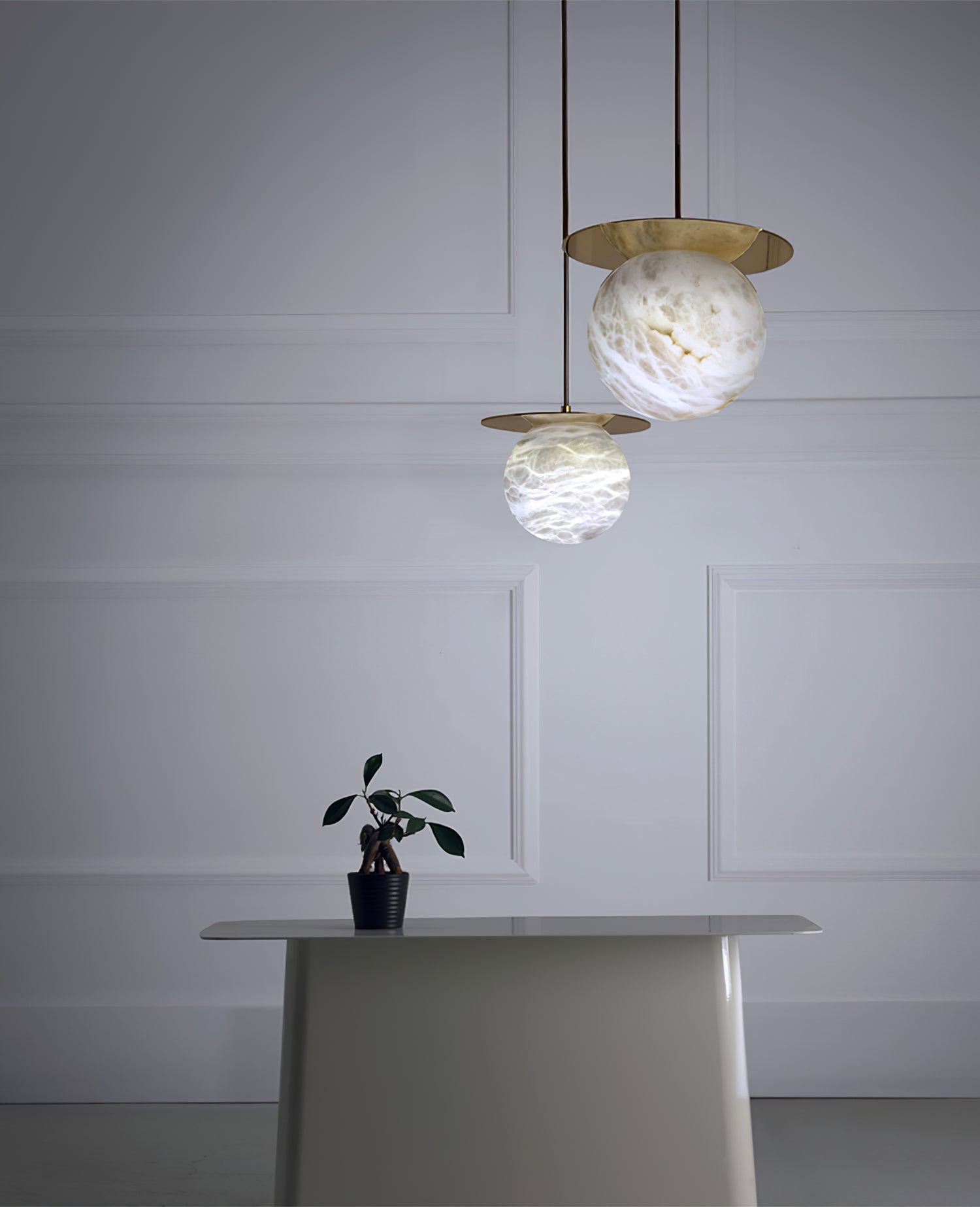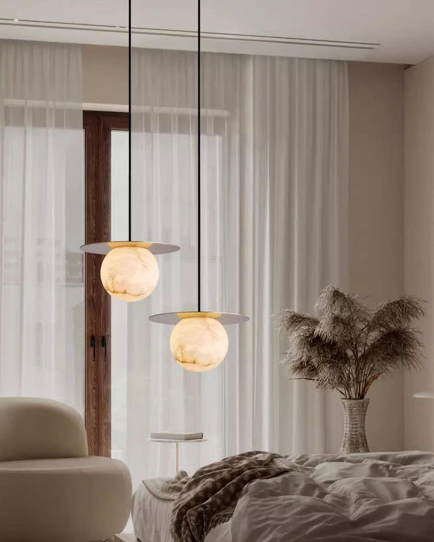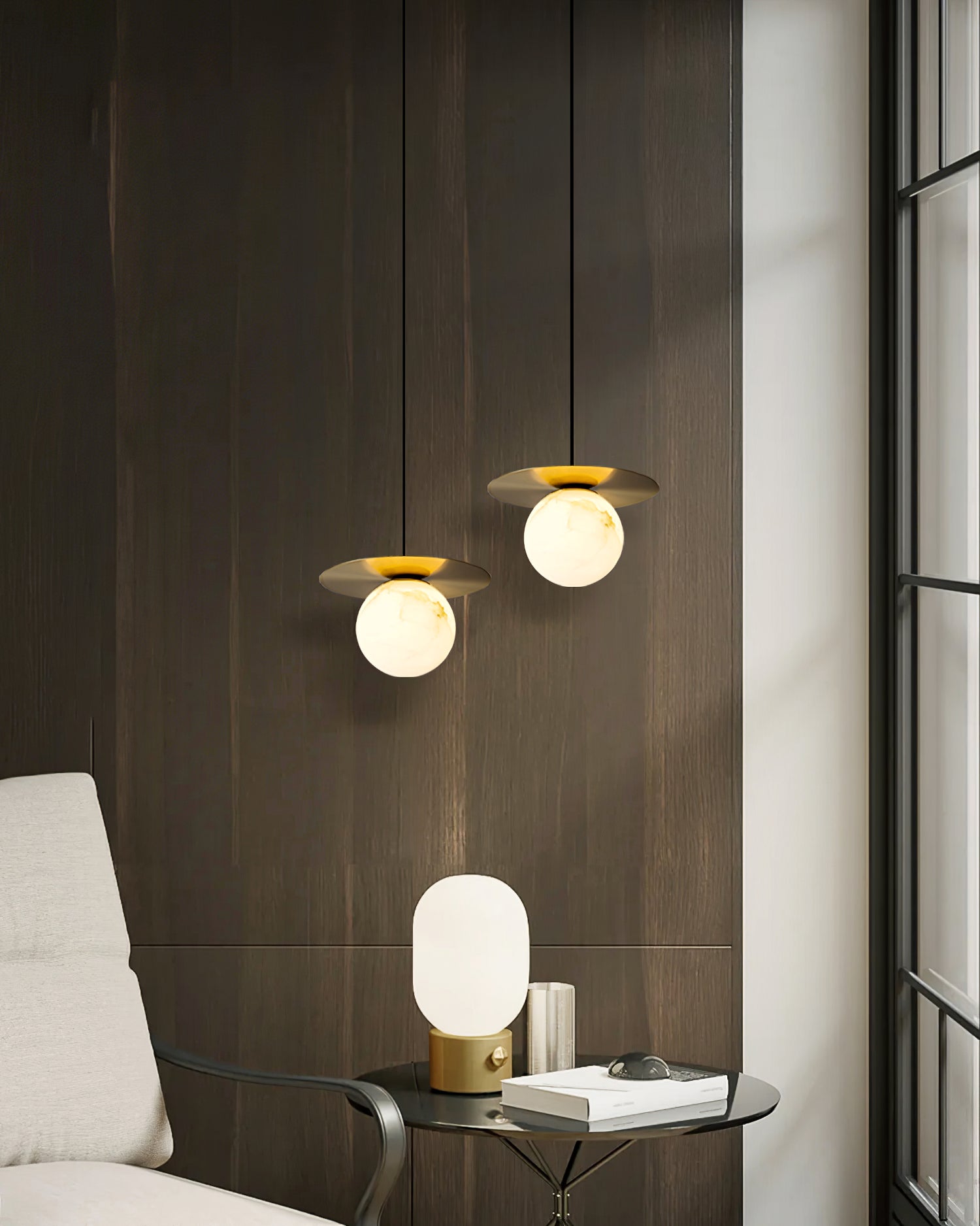 Elevate your decor with the Disc Alabaster Pendant Light from liootrlamp. This contemporary pendant light features a striking alabaster sphere suspended beneath a sleek, golden disc, creating a stunning visual contrast. Perfect for modern interiors, it adds a touch of elegance and sophistication to any room. Ideal for dining areas, kitchens, or living spaces, this pendant light combines artistic design with functional lighting to enhance your home beautifully.