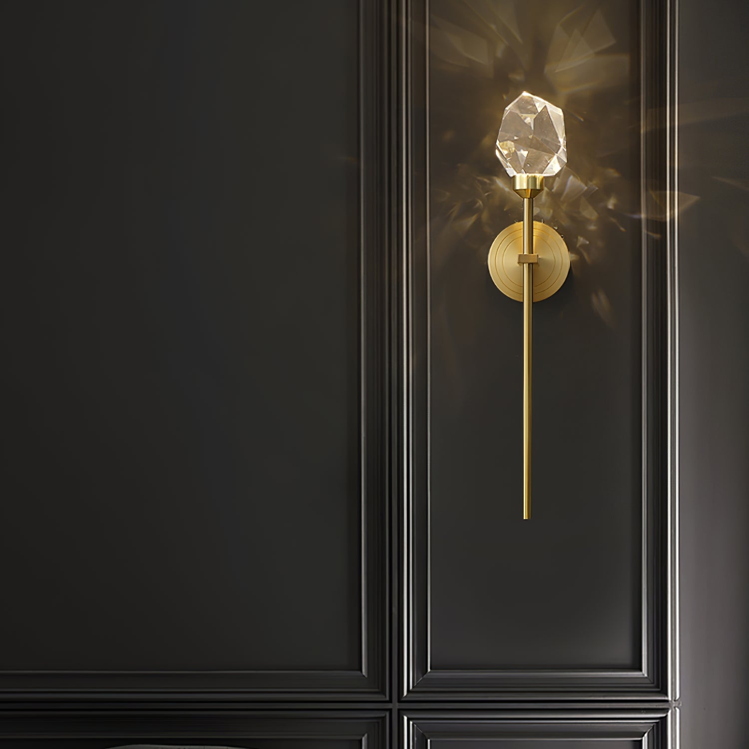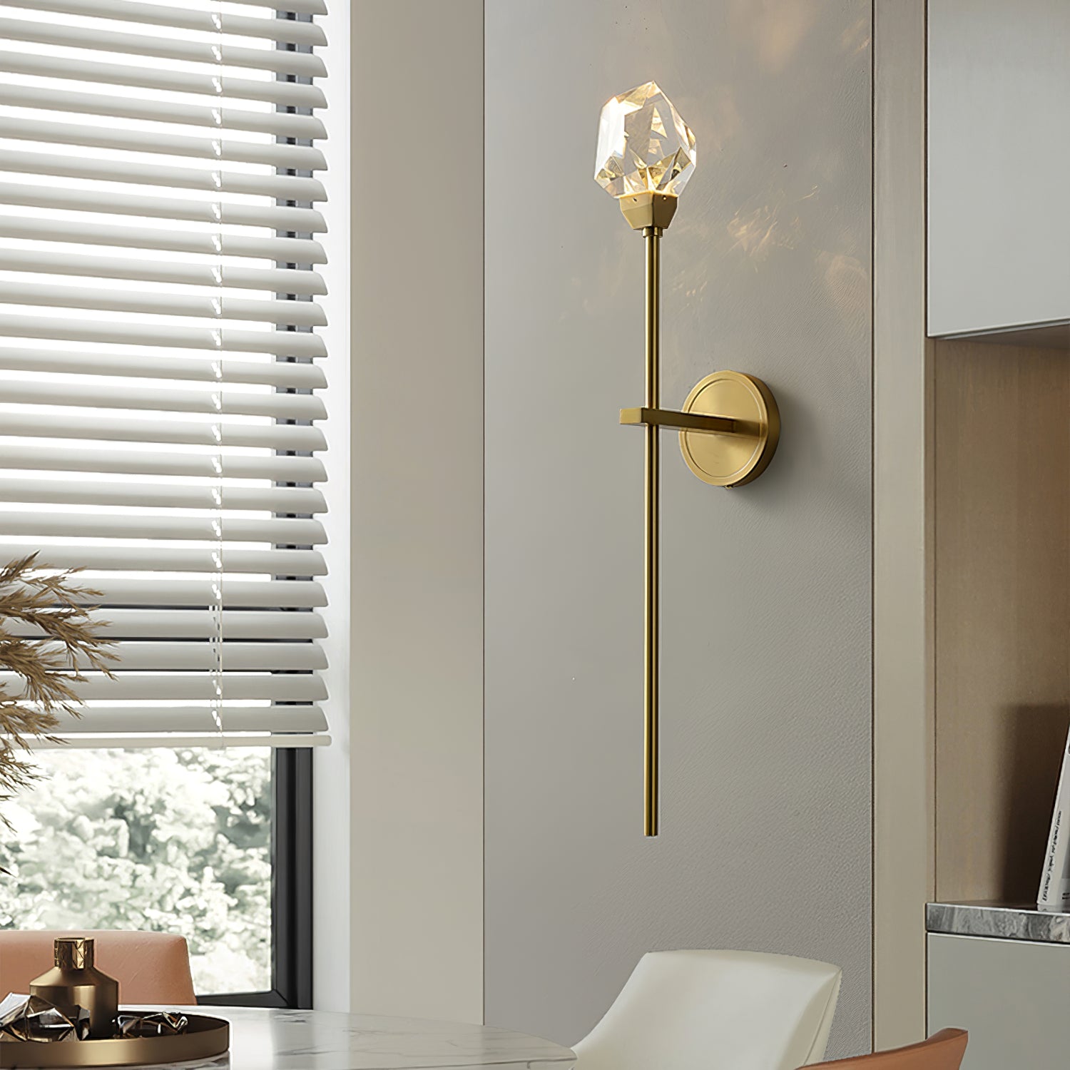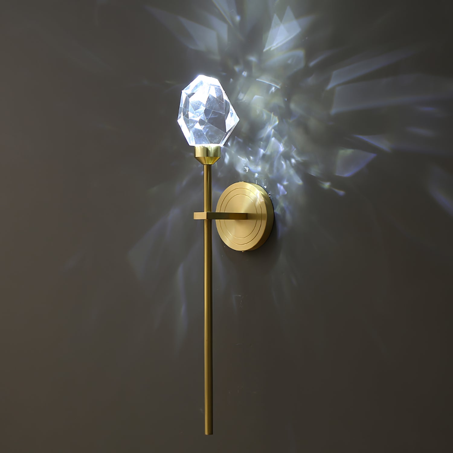 Charming elegance. An exquisite crystal torch made for a queen and king. This luxuriously faceted crystal honeycomb rests atop the elongated stem reminiscent of a stinger. Dims down beautifully for a variety of ambient moods in living spaces and hospitality settings.