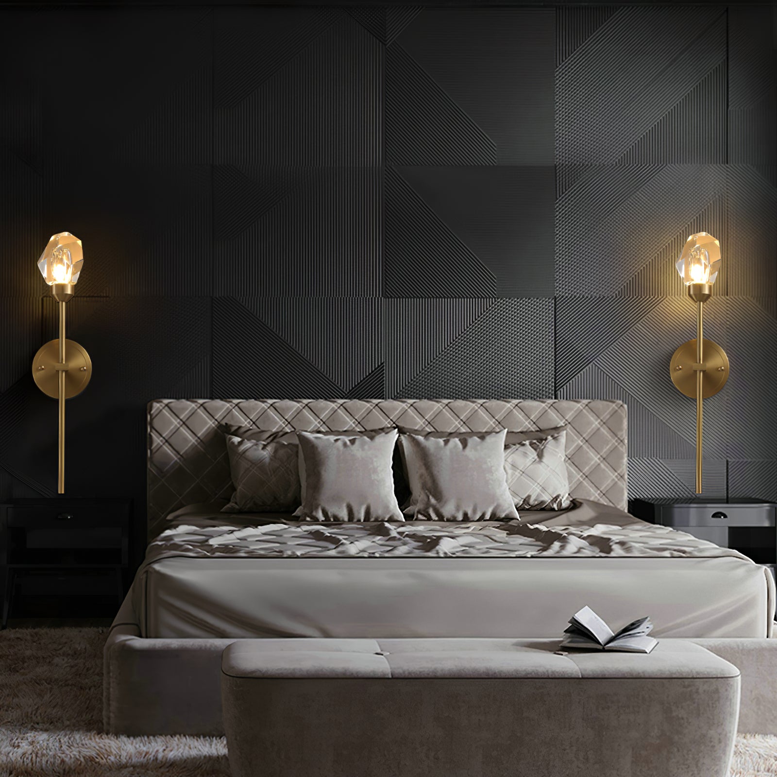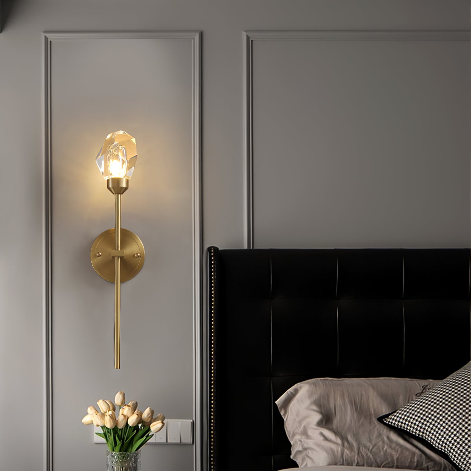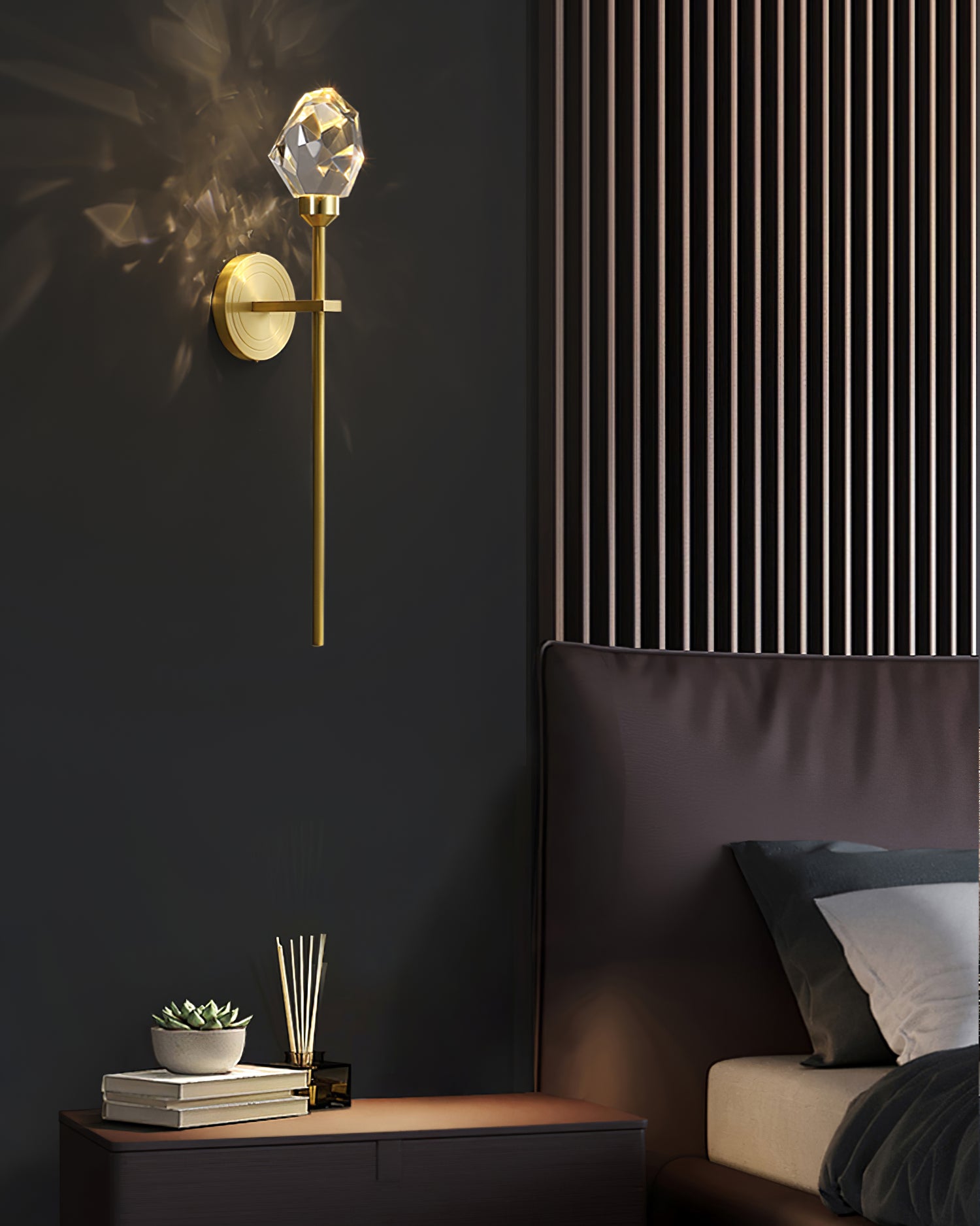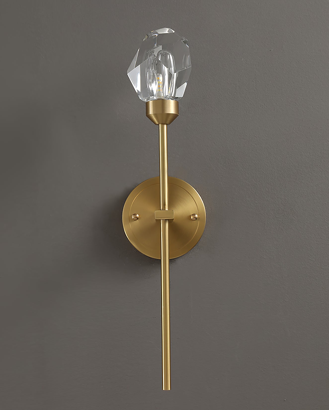 Charming elegance. An exquisite crystal torch made for a queen and king. This luxuriously faceted crystal honeycomb rests atop the elongated stem reminiscent of a stinger. Dims down beautifully for a variety of ambient moods in living spaces and hospitality settings.