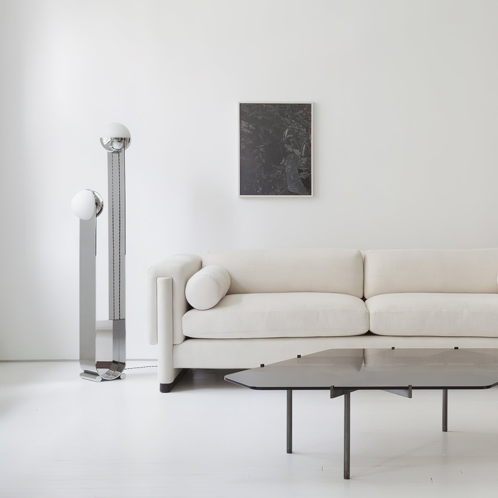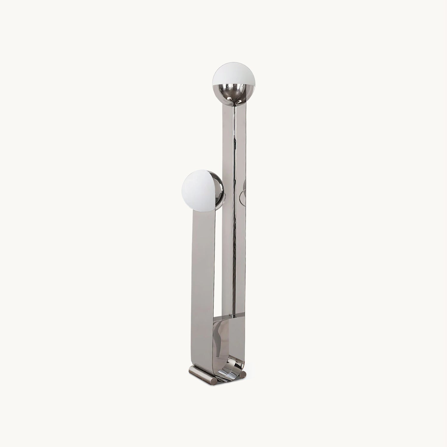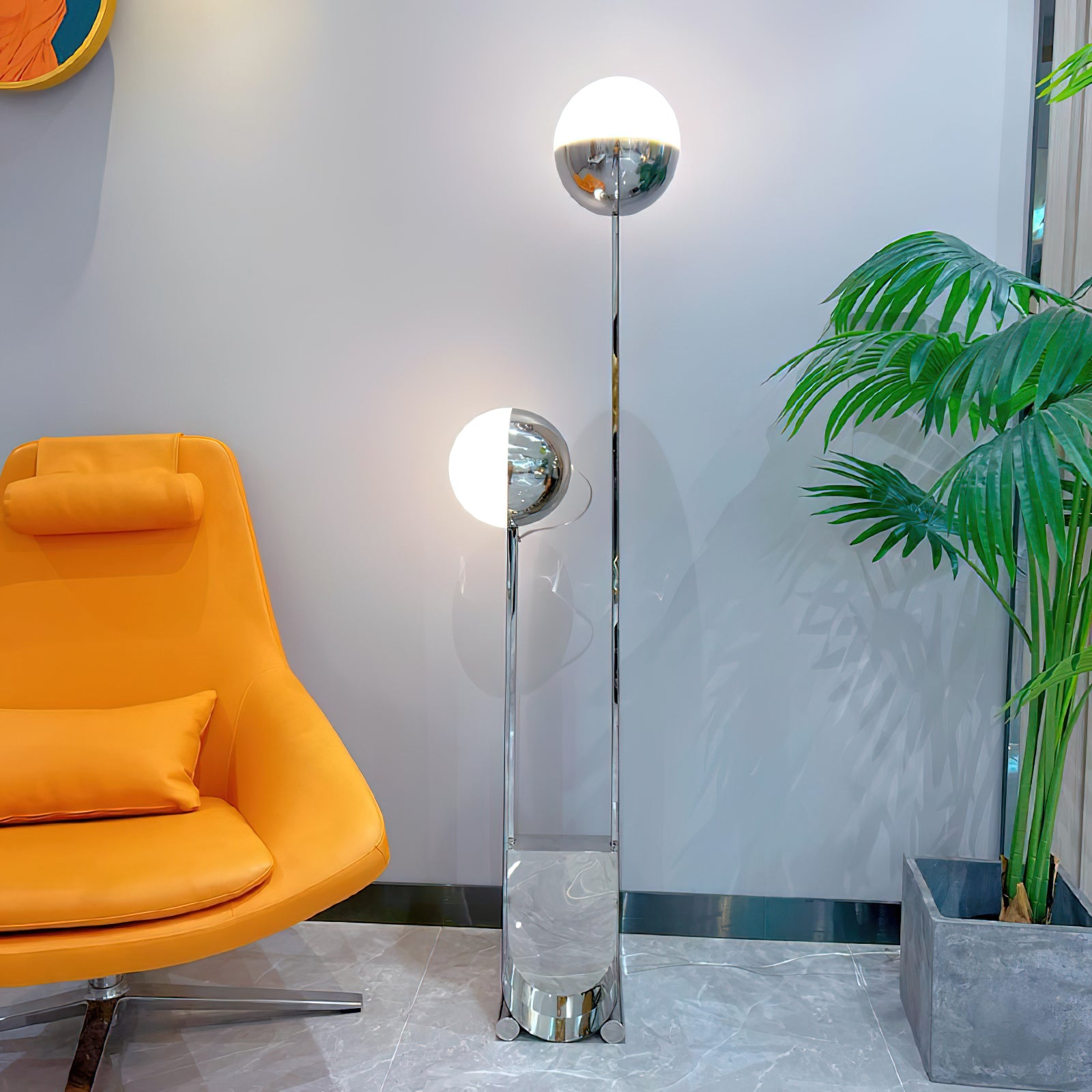 This double ball floor lamp is light, luxurious and chic. It gathers aesthetic and artistic colors, which highlights the personality and fashion without lacking in creativity. It will be the perfect embellishment for any room or exhibition hall. This lamp is made of stainless steel with a glass ball lampshade. The whole is very artistic and atmospheric, and it is warm, romantic and stylish. It is a luxurious and fashionable household item. Brighten up your room with this sleek and modern light fixture.