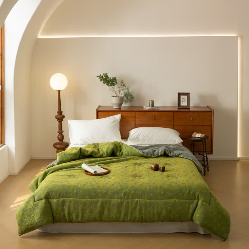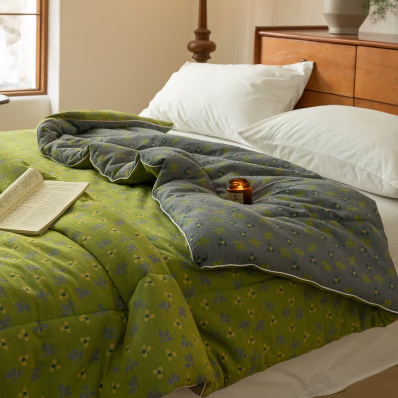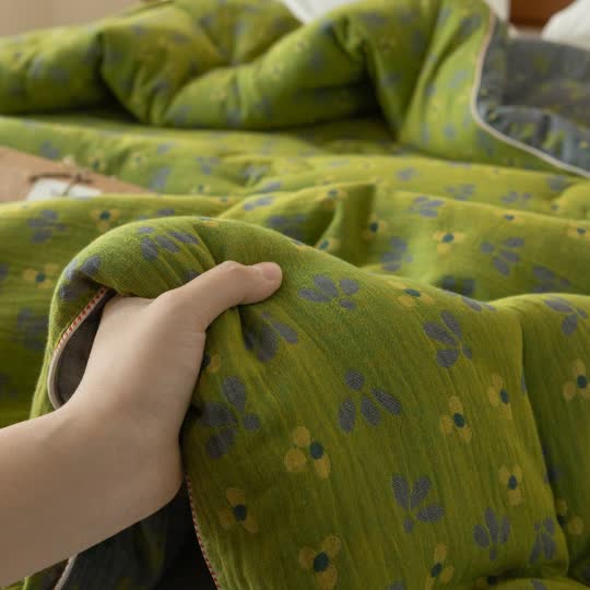 Crafted from premium double-layer gauze, this quilt provides exceptional softness and breathability for a comfortable night’s sleep. Its intricate floral jacquard pattern adds elegance and sophistication, creating a vibrant yet serene aesthetic in your bedroom.