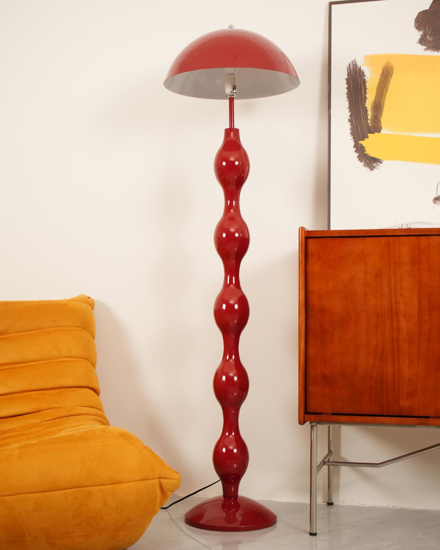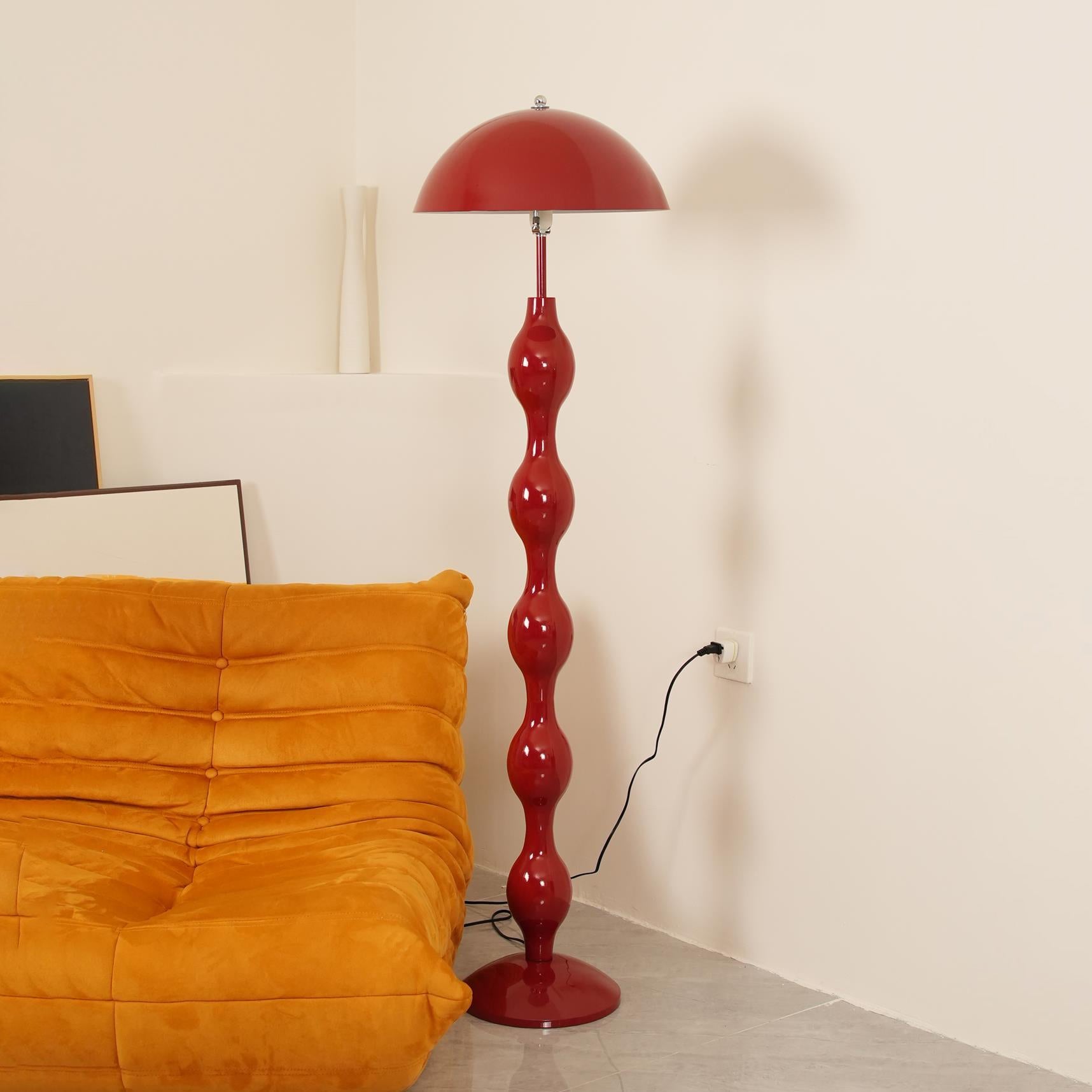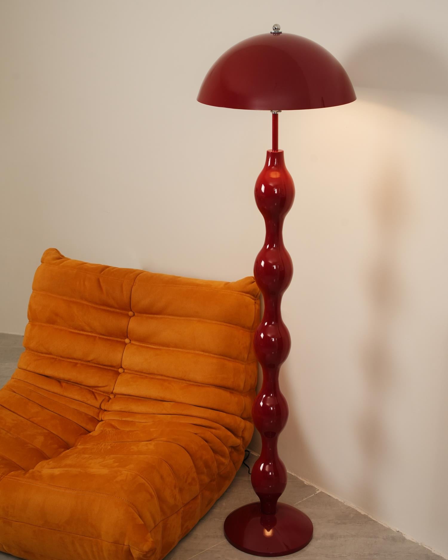 The Drop Floor Lamp collection captures a bold yet elegant aesthetic with its distinctive drop-like structure, providing both visual interest and functional illumination. Available in vibrant colors like deep blue, rich red, and lively green, each lamp features a series of glossy, rounded segments that cascade down into a sleek base, supporting a broad, color-matched shade. The design brings a playful yet sophisticated touch to any space, perfect for accentuating modern living rooms, stylish bedrooms, or chic office areas.