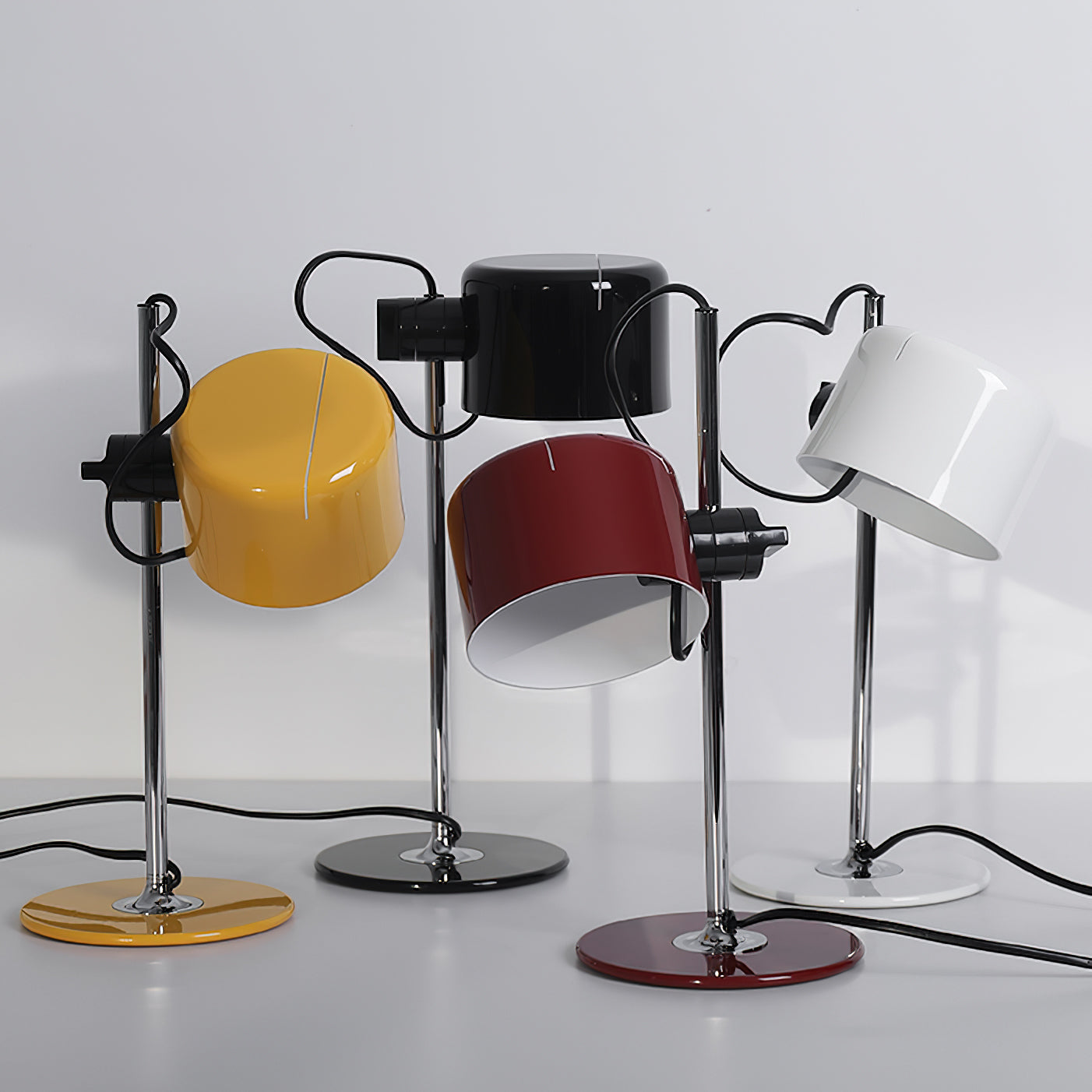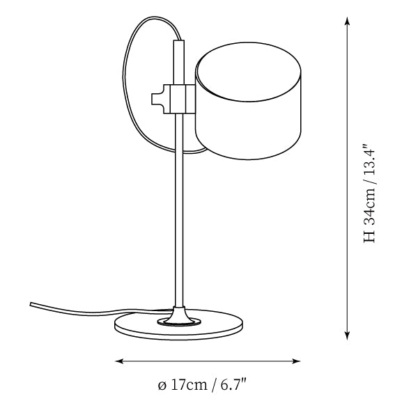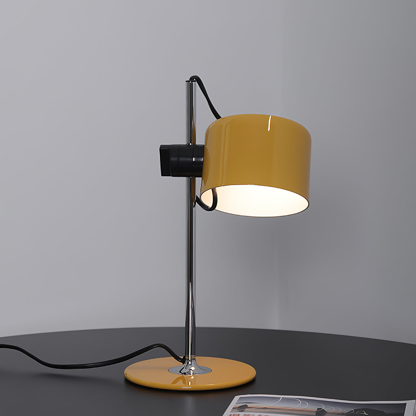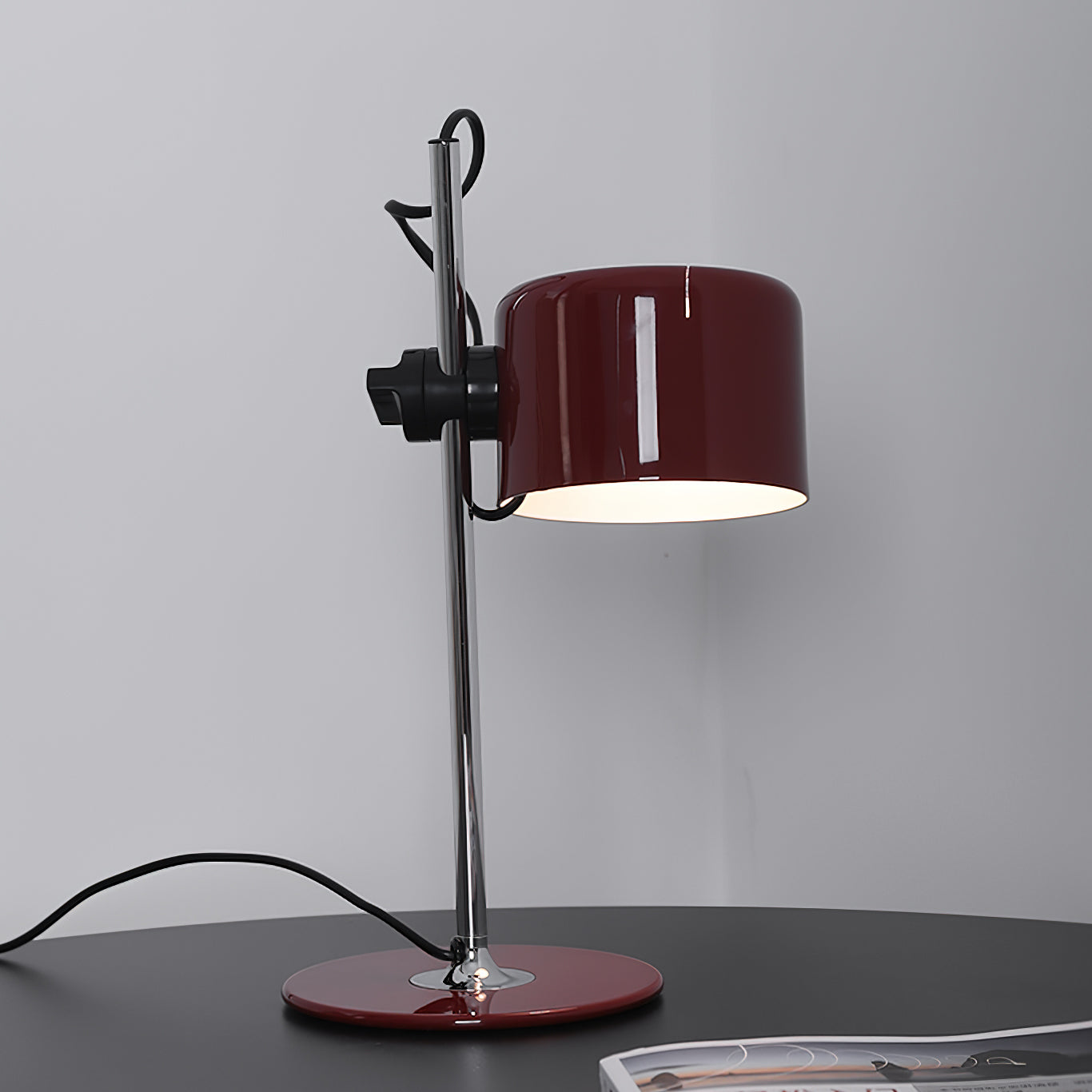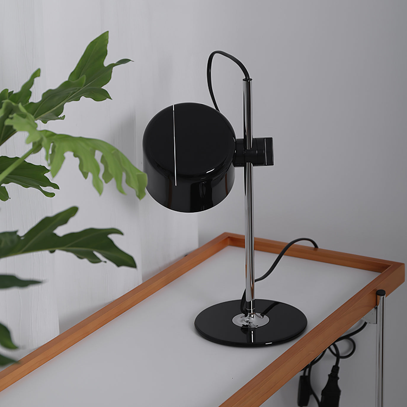 The Drova Table Lamp by Mooijane combines simple elegance with functionality. The slim disc base and adjustable cylindrical shade create a sophisticated look and directional lighting, ideal for reading or focused work. The unique cut-line design at the top of the shade gently diffuses the light upwards, adding a touch of glamour and ambience. This small, eye-catching table lamp is perfect for any modern space.