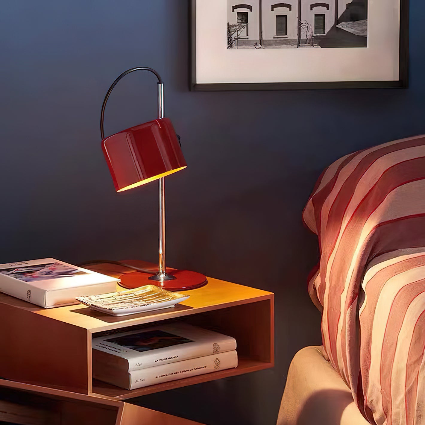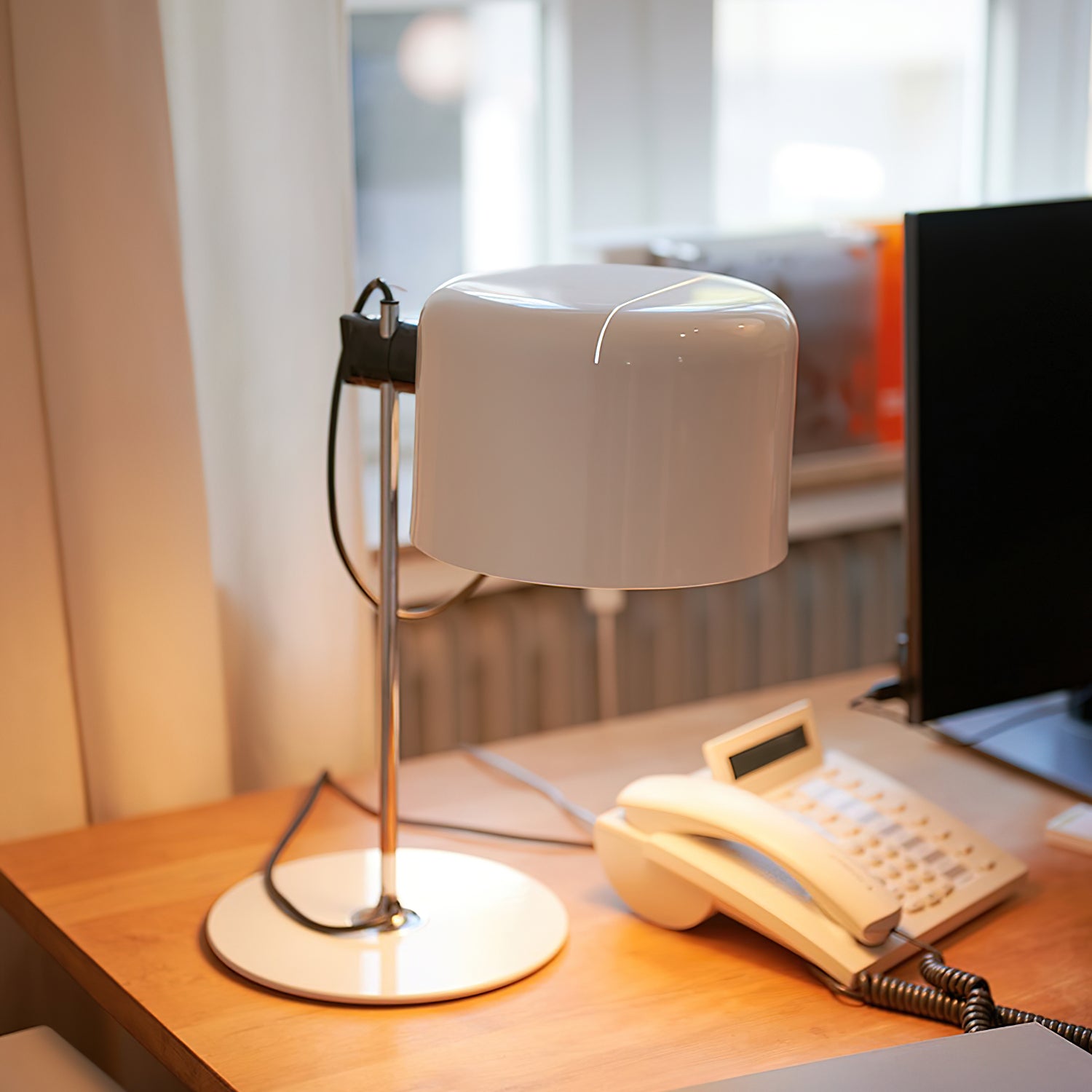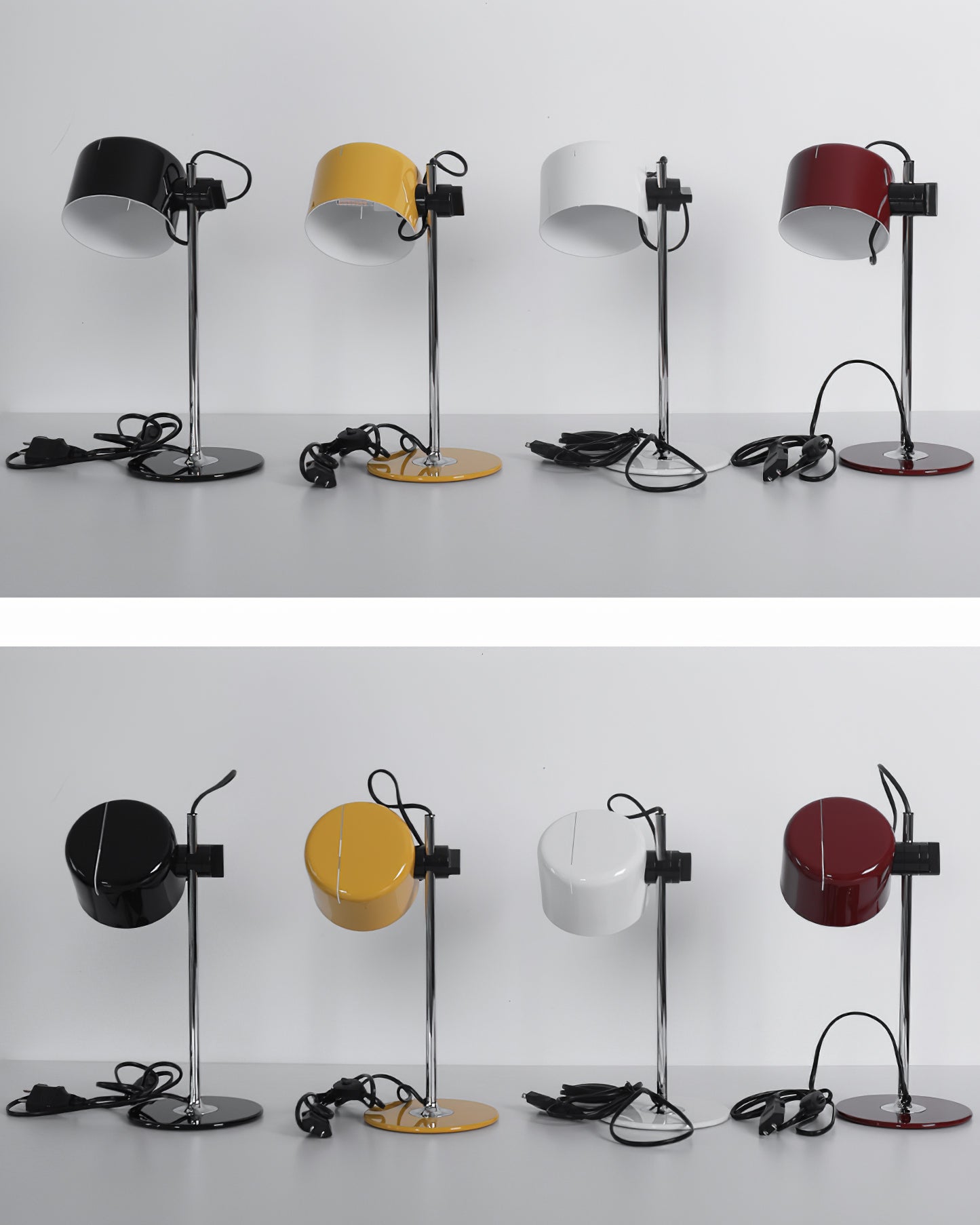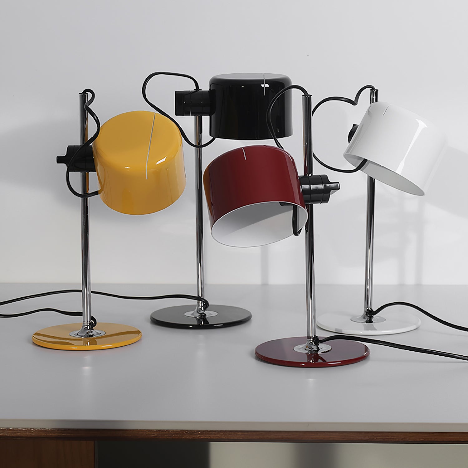 The Drova Table Lamp by Mooijane combines simple elegance with functionality. The slim disc base and adjustable cylindrical shade create a sophisticated look and directional lighting, ideal for reading or focused work. The unique cut-line design at the top of the shade gently diffuses the light upwards, adding a touch of glamour and ambience. This small, eye-catching table lamp is perfect for any modern space.
