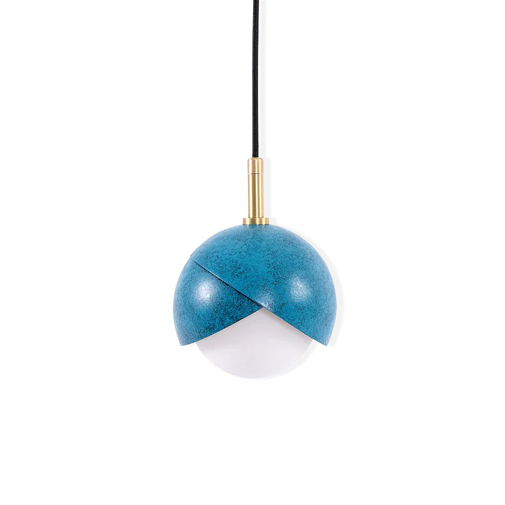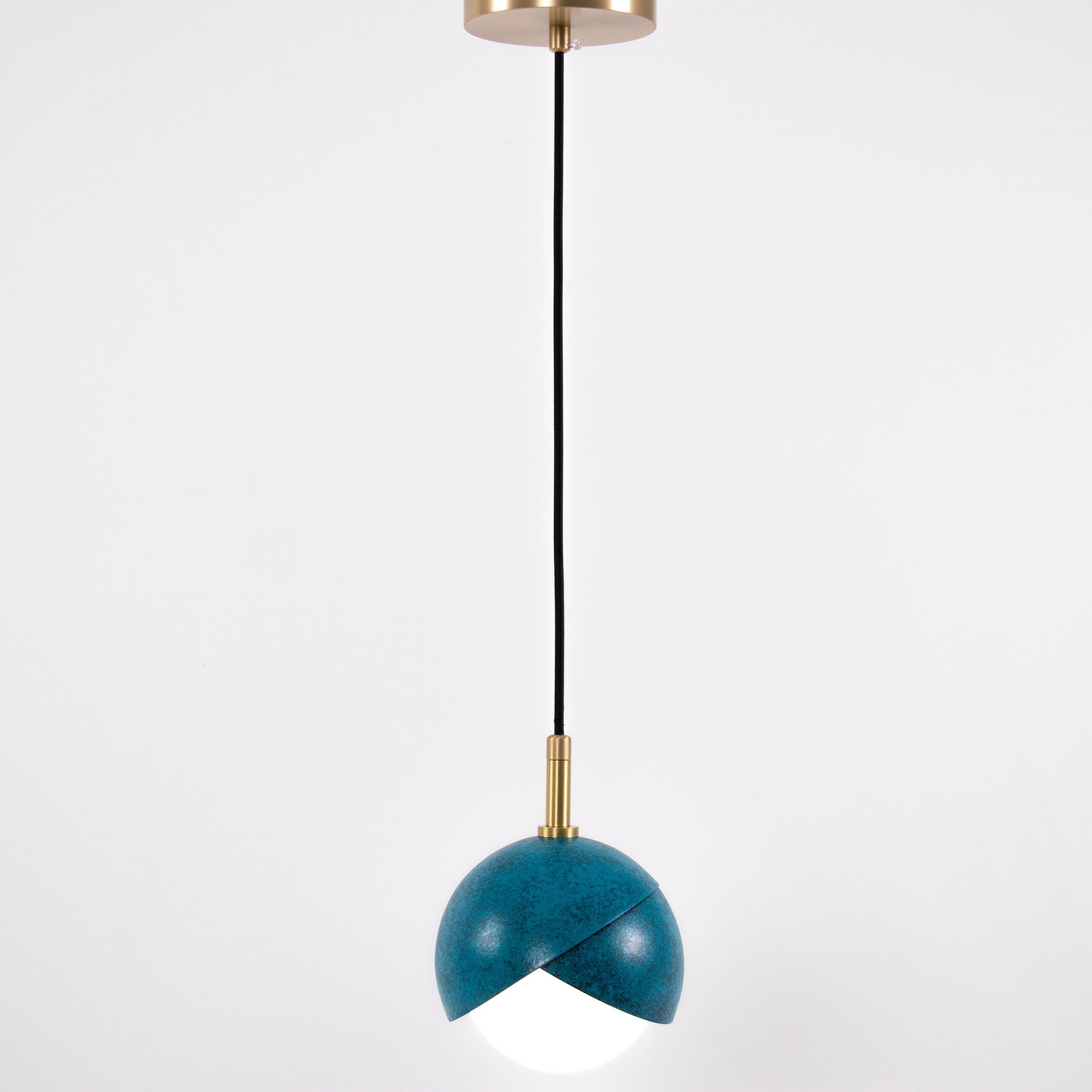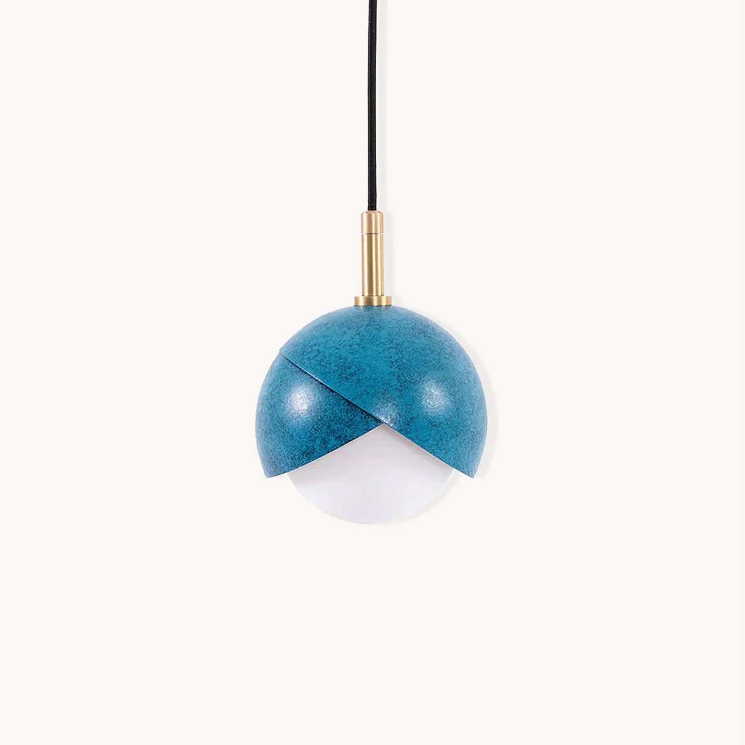 Two nested spun brass hemispheres cradle a hand-blown glass globe. This fixture lends itself to the creative configuration of our many finishes meaning it's sure to be a stunning accent in any space.