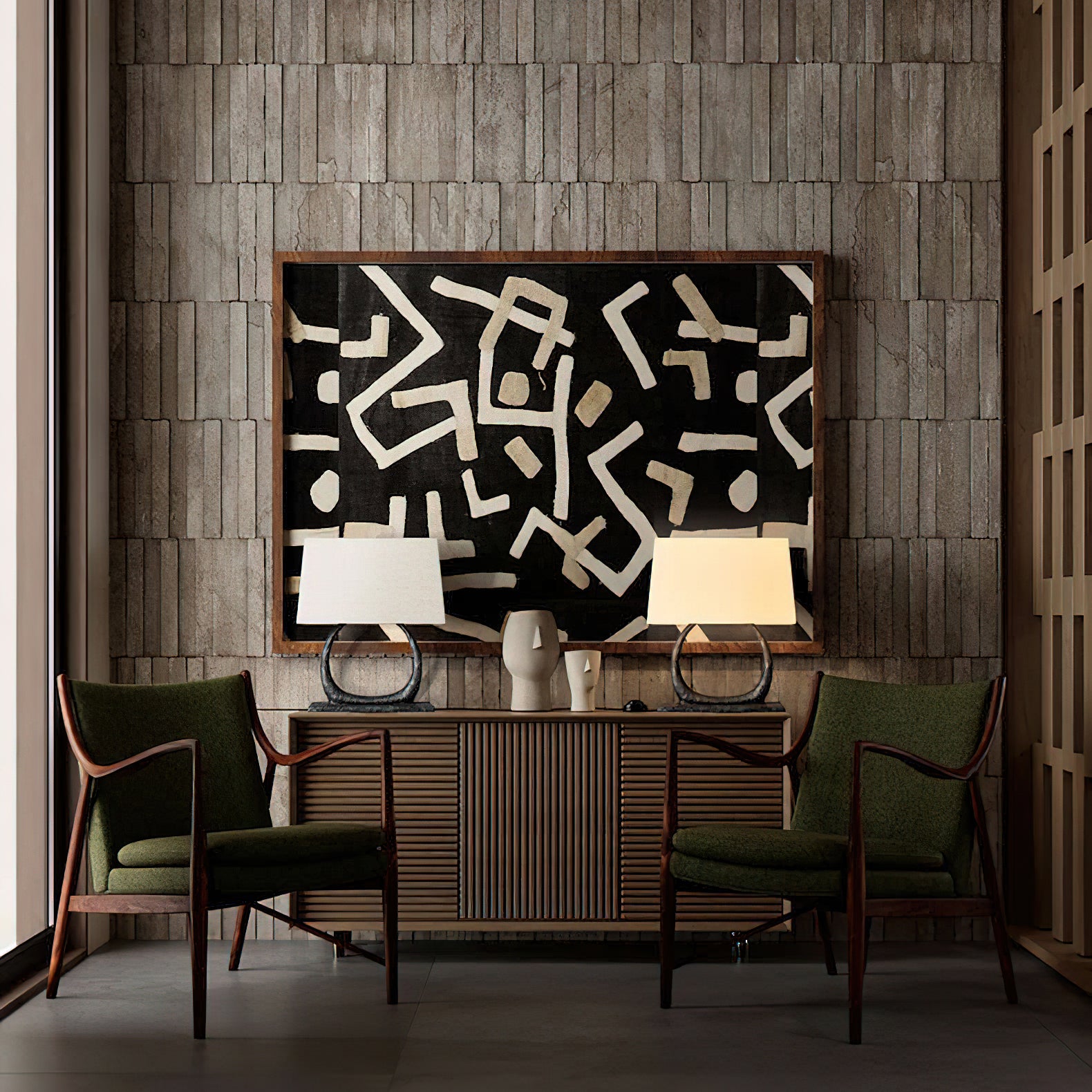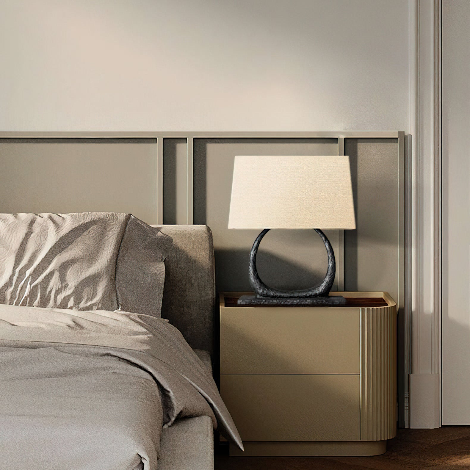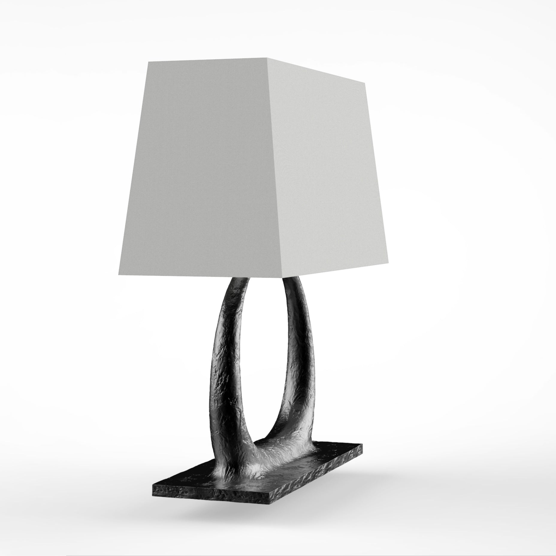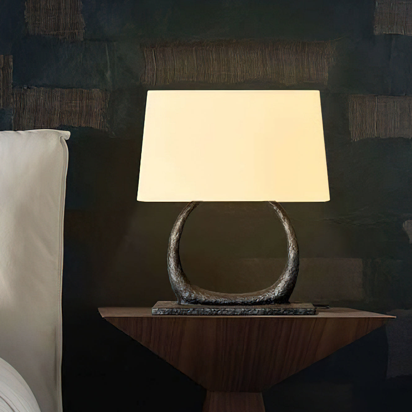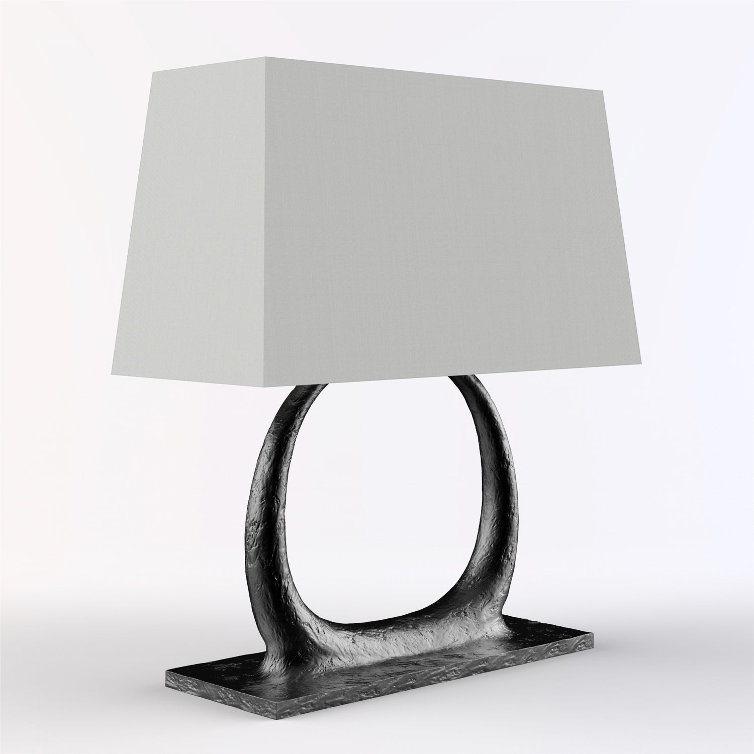The Easton Table Lamp from Mooijane features a minimalist, sculptural design that blends bold form with refined materials. Its matte black copper body, cast in a striking arc-like ring, offers a sense of strength and artisanal texture. A crisp, square fabric shade contrasts beautifully with the metal base, balancing softness and structure. Ideal for modern, industrial, or minimalist interiors, this lamp serves as both a functional light source and a statement piece.