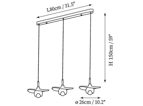- Model C Size: L 80cm x H 150cm / ∅ 31.5″ x H 59″