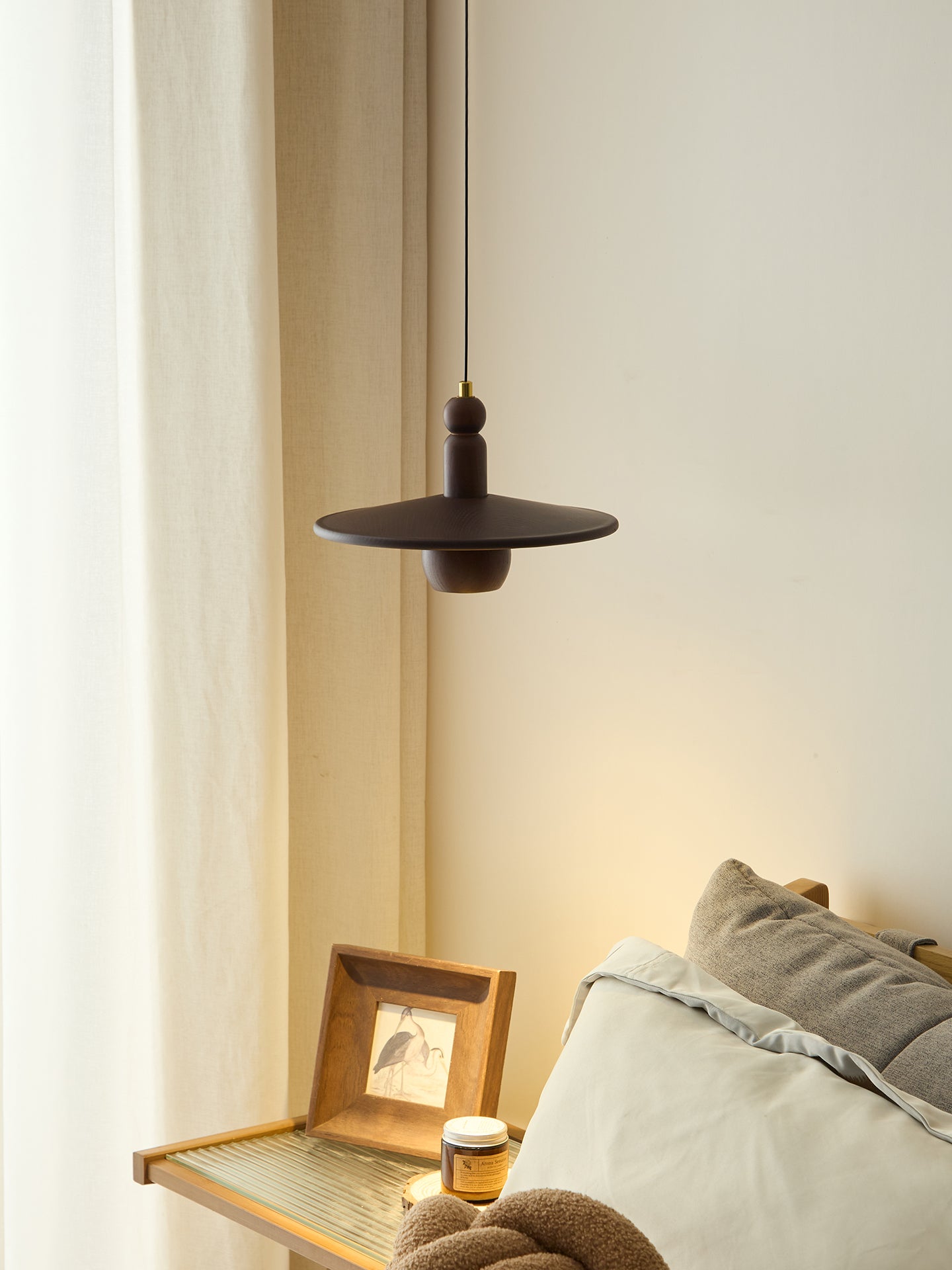 The Ebern Wood Pendant Lamp by Mooijane blends sculptural form with natural materials. Featuring a rounded solid wood sphere and gently curved wooden shade, its silhouette resembles a floating hat—lightweight yet refined. Suspended from a sleek metal fixture, it casts a soft, ambient glow that enhances both function and aesthetics. Perfect for entryways, dining areas, or cozy corners, Ebern adds warmth and modern elegance to any interior.