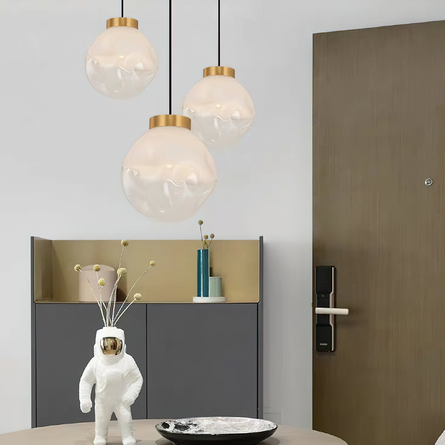 The Ecar Pendant Lamp from Mooijane features a striking golden finish paired with a semi-white spherical shade, offering a bold yet balanced design. Its unique form provides excellent light distribution, making it an ideal statement piece for kitchens, dining rooms, or modern living spaces. A standout fixture that brings warmth and style to any interior.