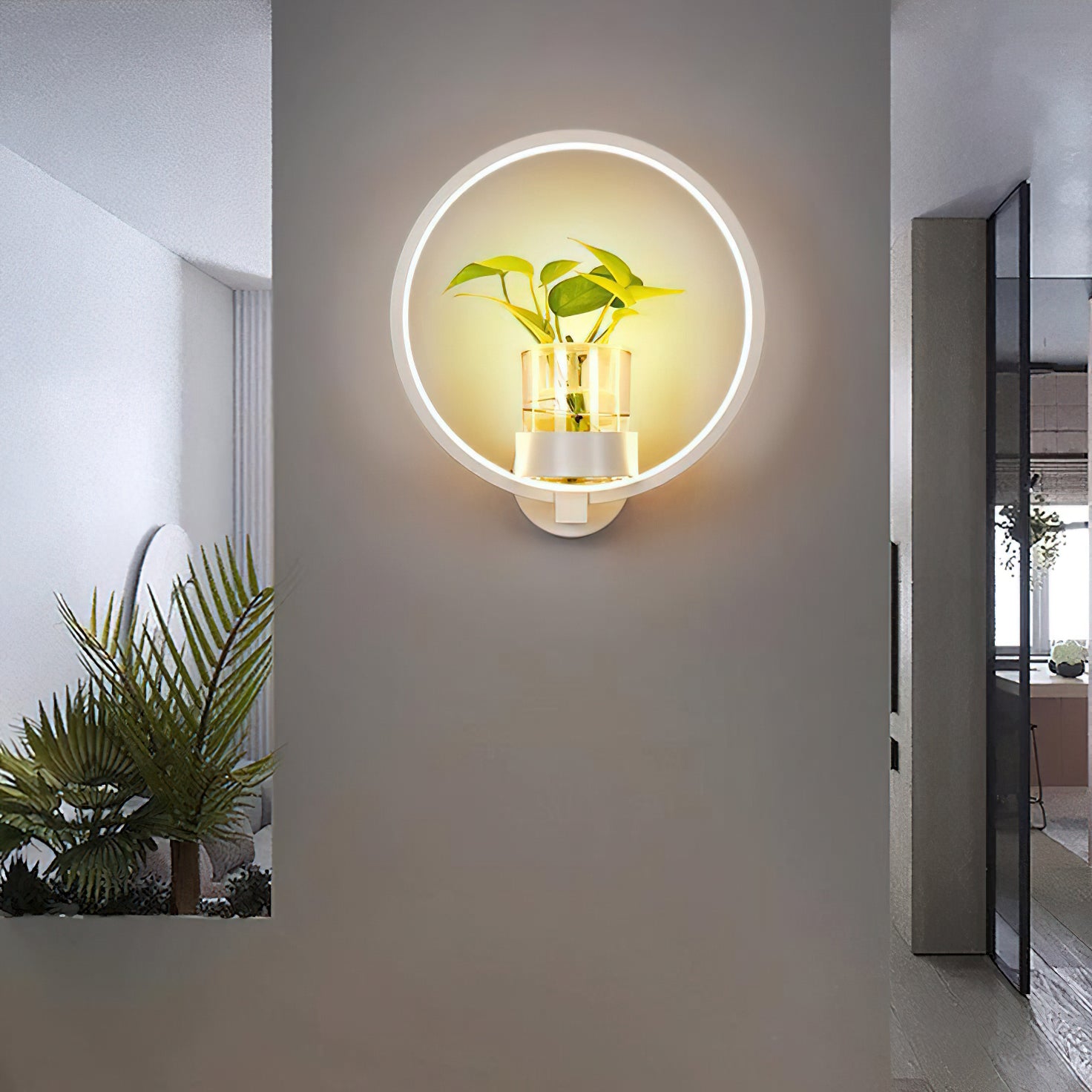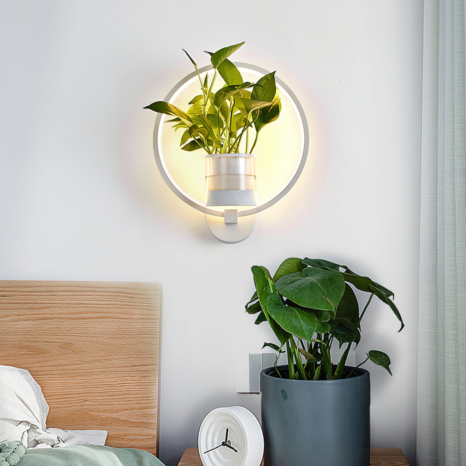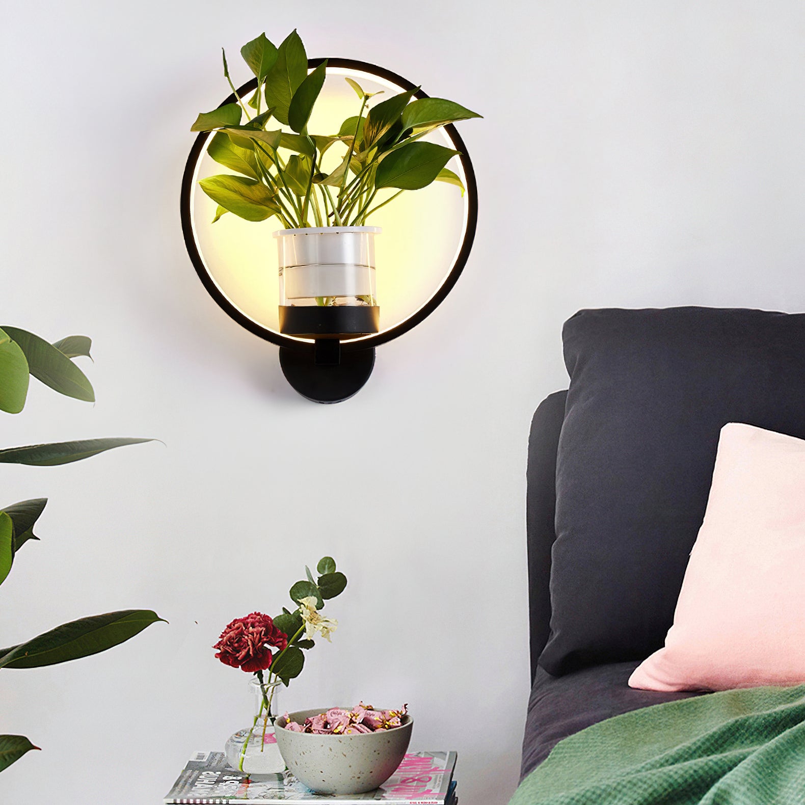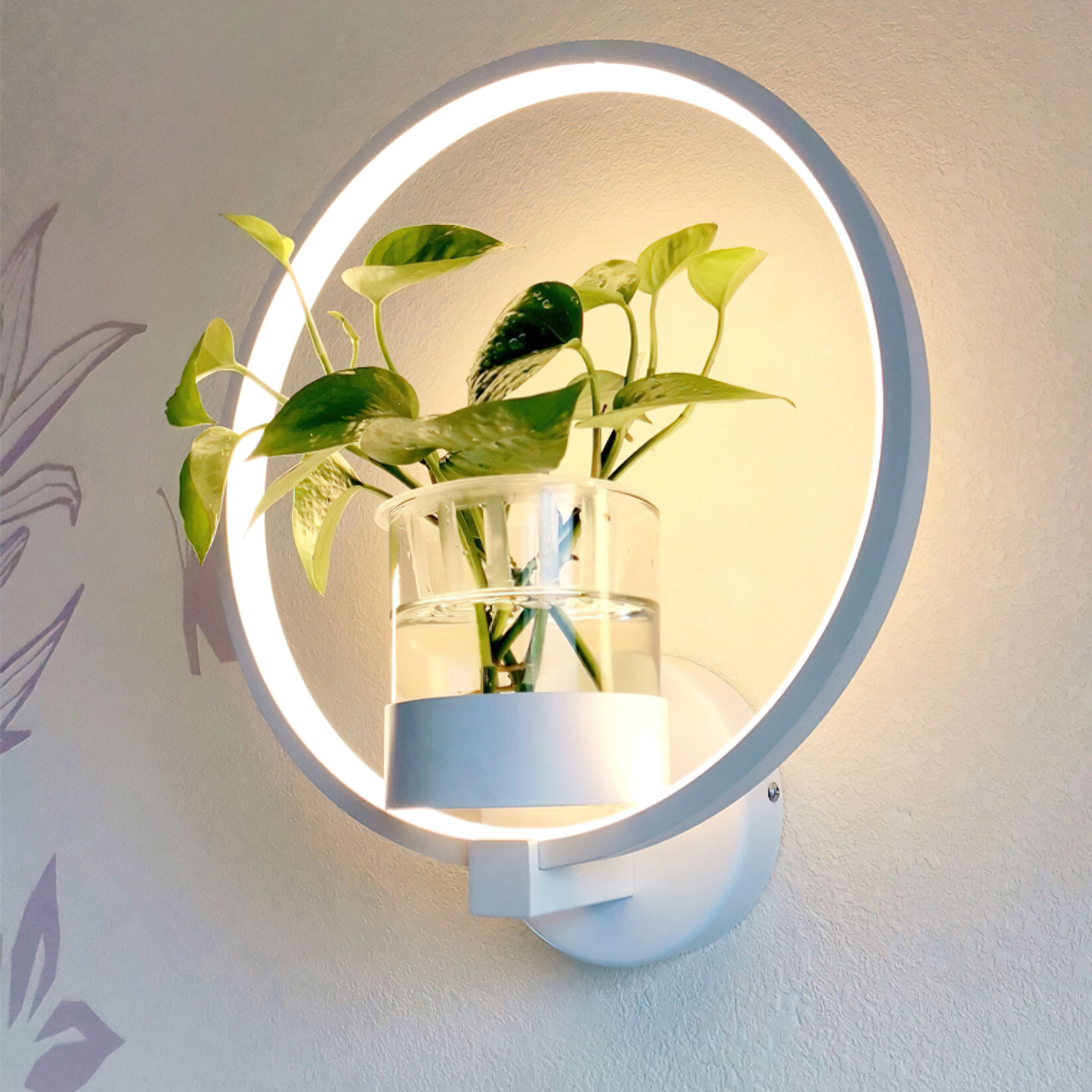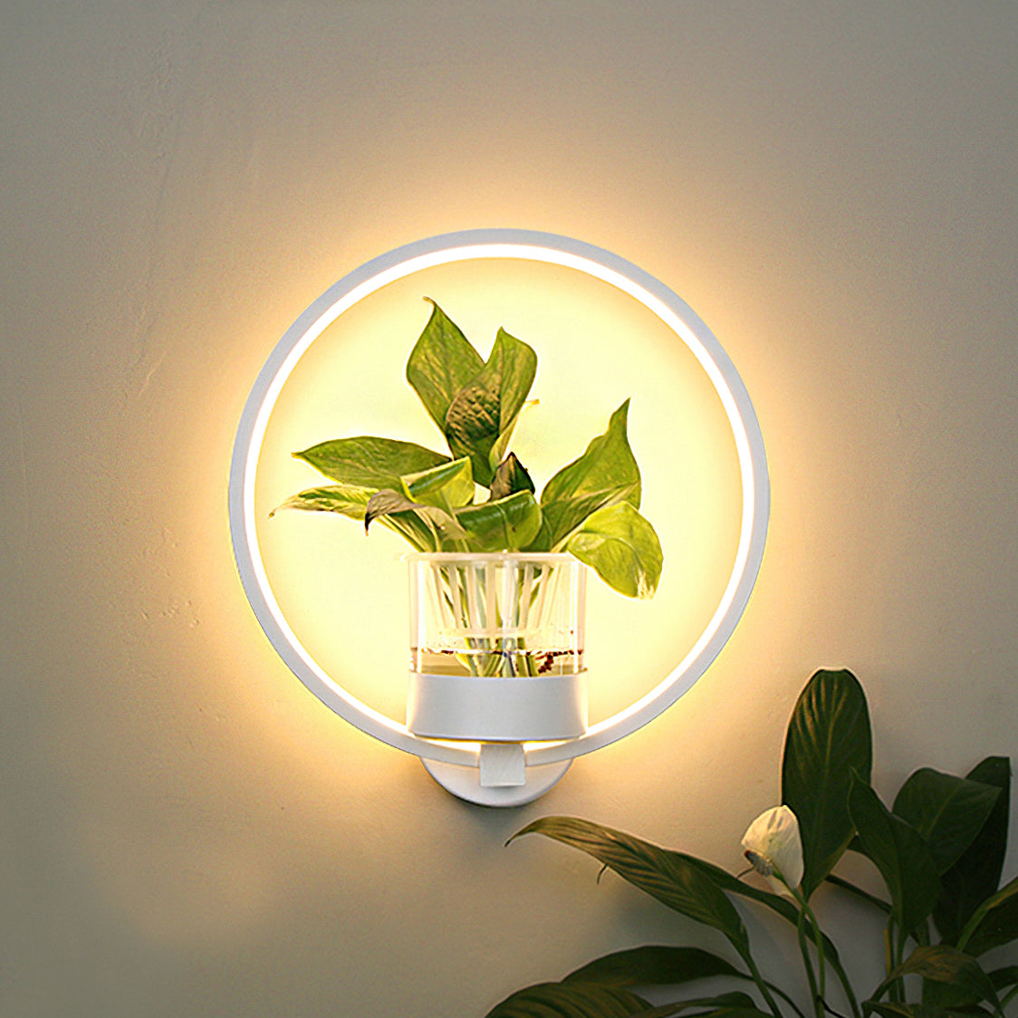 This Nordic minimalist wall lamp is paired with a transparent glass vase, and the soft light shines on the emerald green leaves, giving the home a healthy light. Unconventional creativity, the perfect combination of green plants and wall lamps, plant your favorite plants, satisfy your little gardener's dream, add a natural atmosphere to your home, and freshen the air.