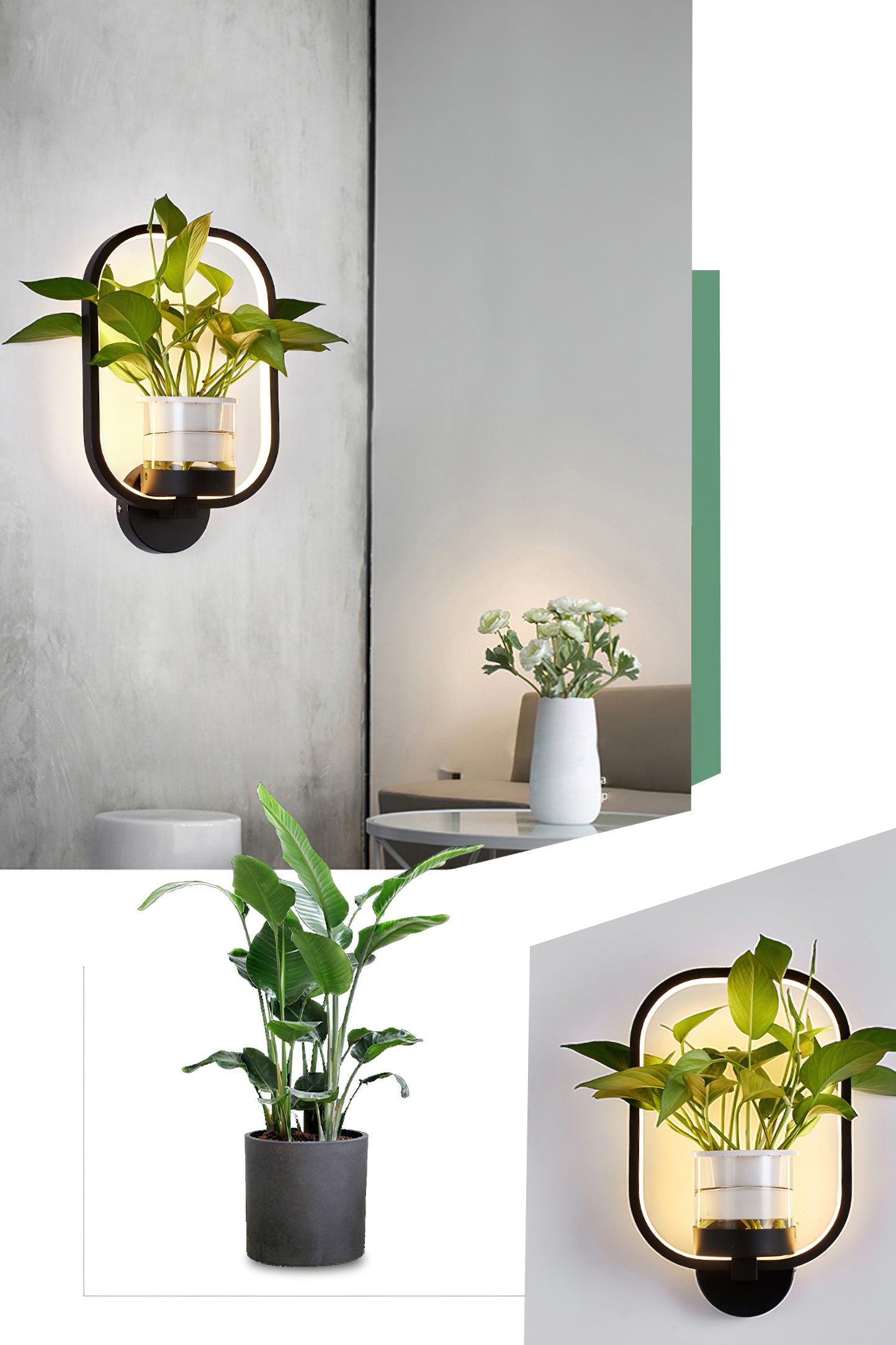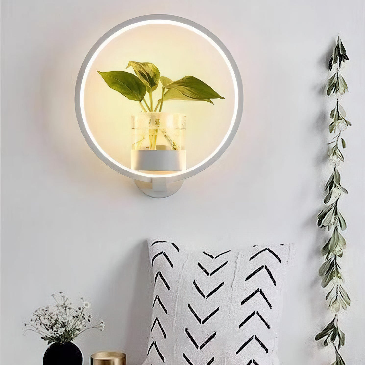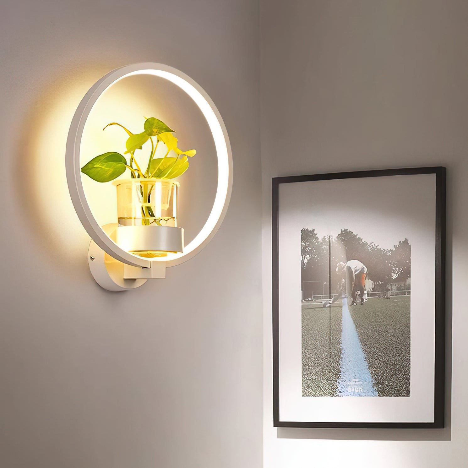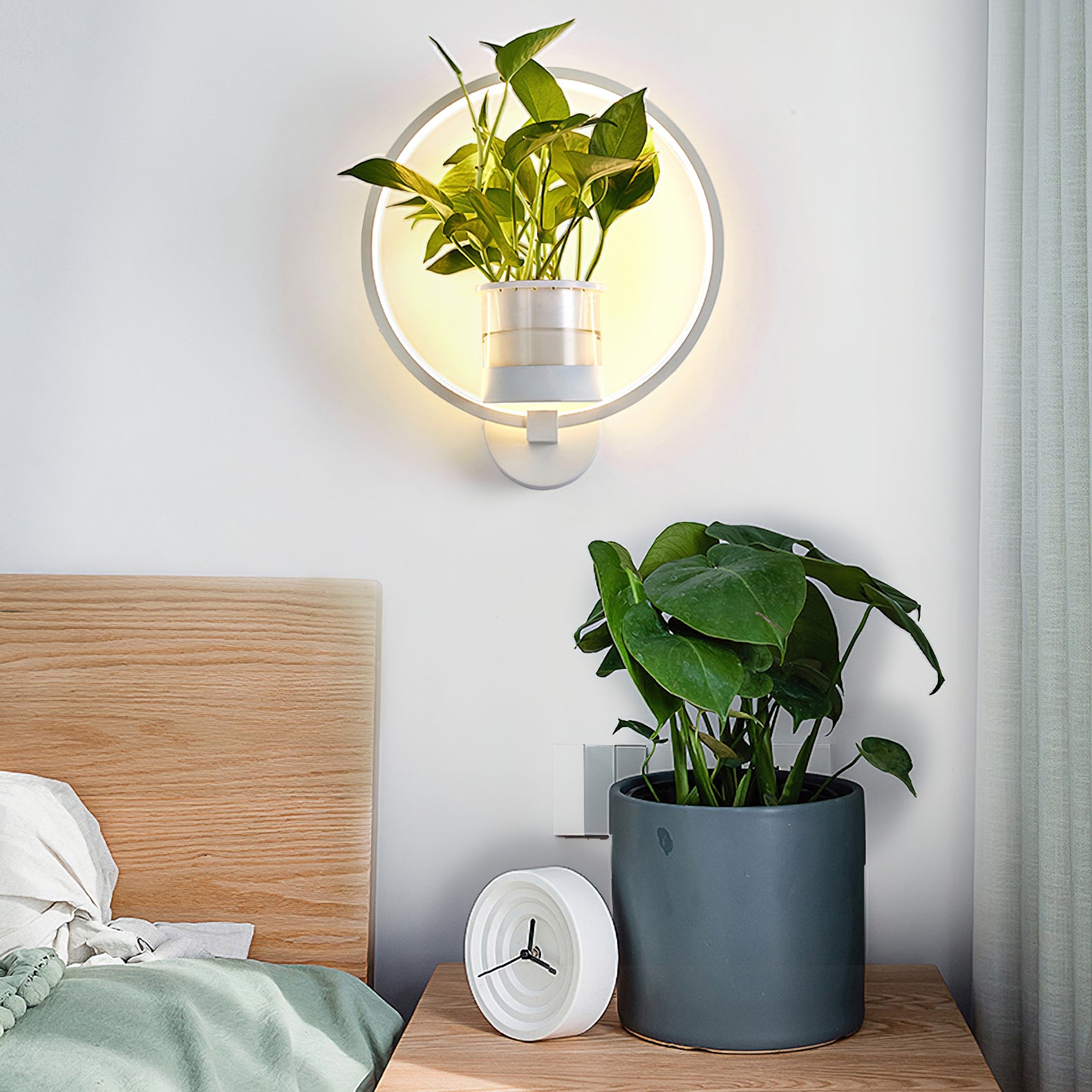 This Nordic minimalist wall lamp is paired with a transparent glass vase, and the soft light shines on the emerald green leaves, giving the home a healthy light. Unconventional creativity, the perfect combination of green plants and wall lamps, plant your favorite plants, satisfy your little gardener's dream, add a natural atmosphere to your home, and freshen the air.
