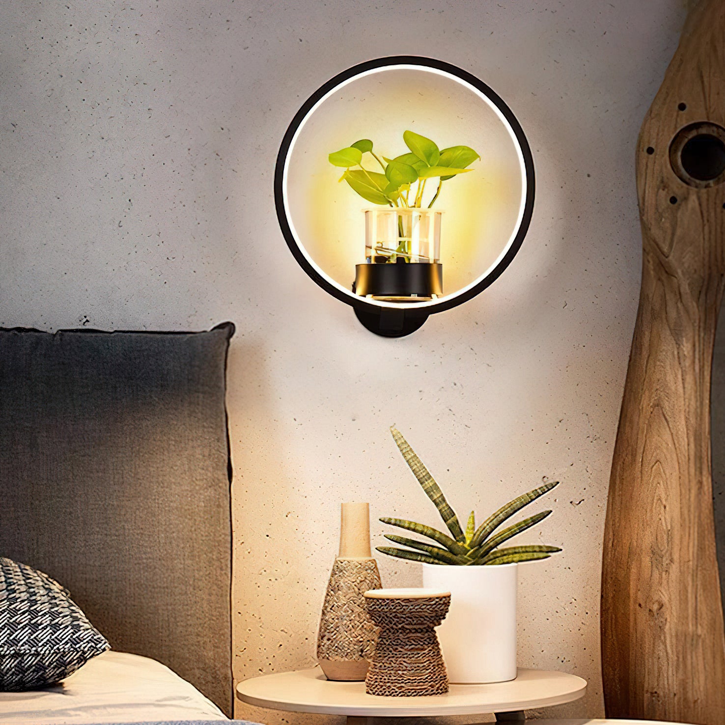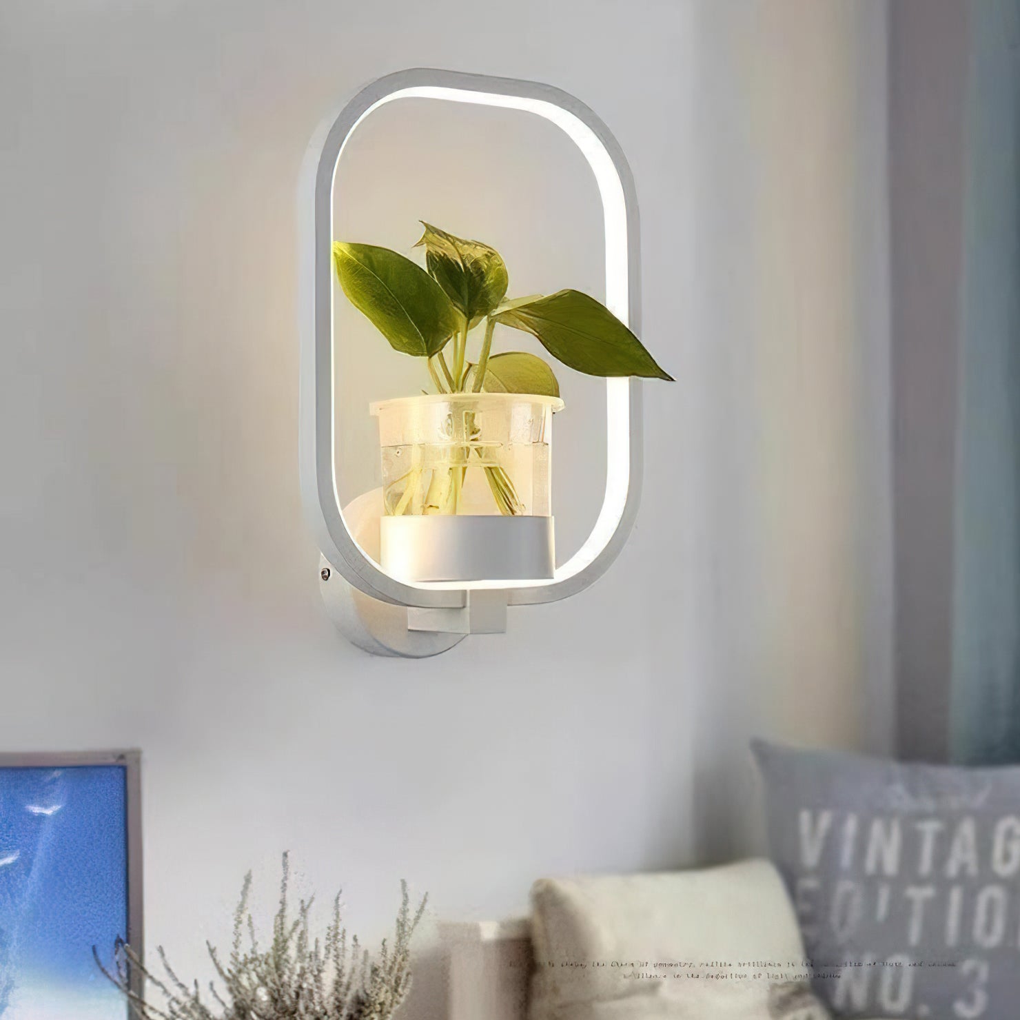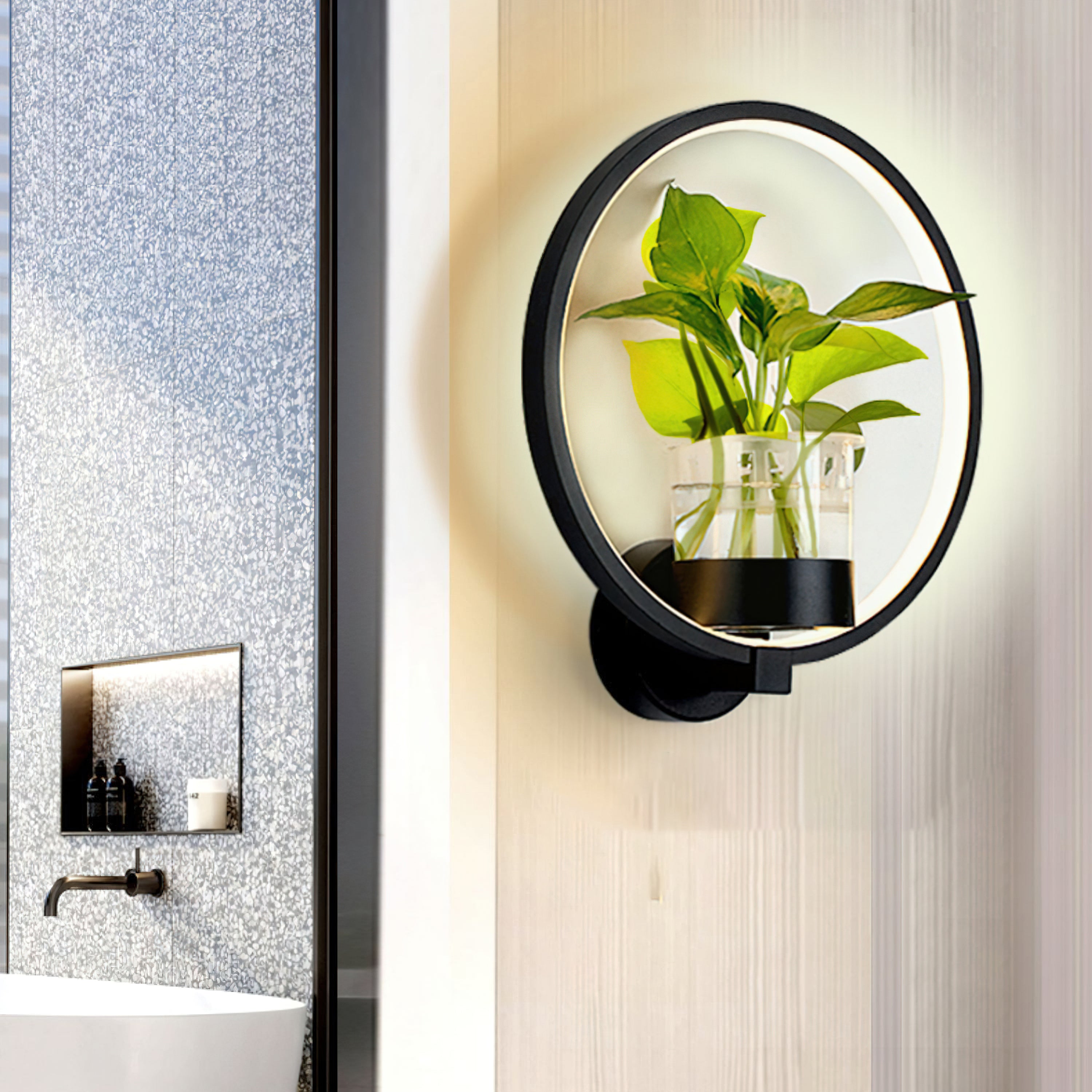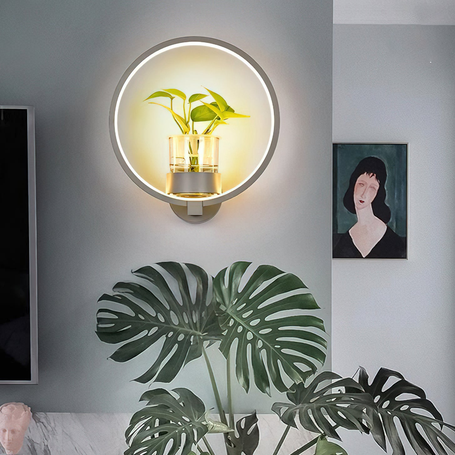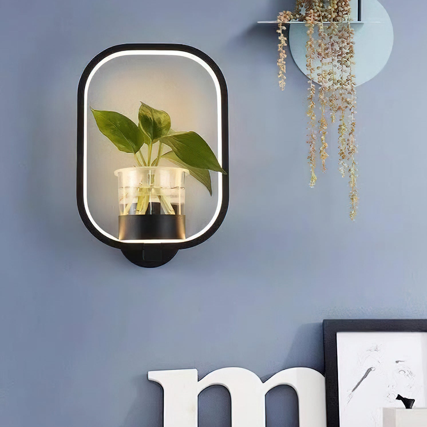 This Nordic minimalist wall lamp is paired with a transparent glass vase, and the soft light shines on the emerald green leaves, giving the home a healthy light. Unconventional creativity, the perfect combination of green plants and wall lamps, plant your favorite plants, satisfy your little gardener's dream, add a natural atmosphere to your home, and freshen the air.
