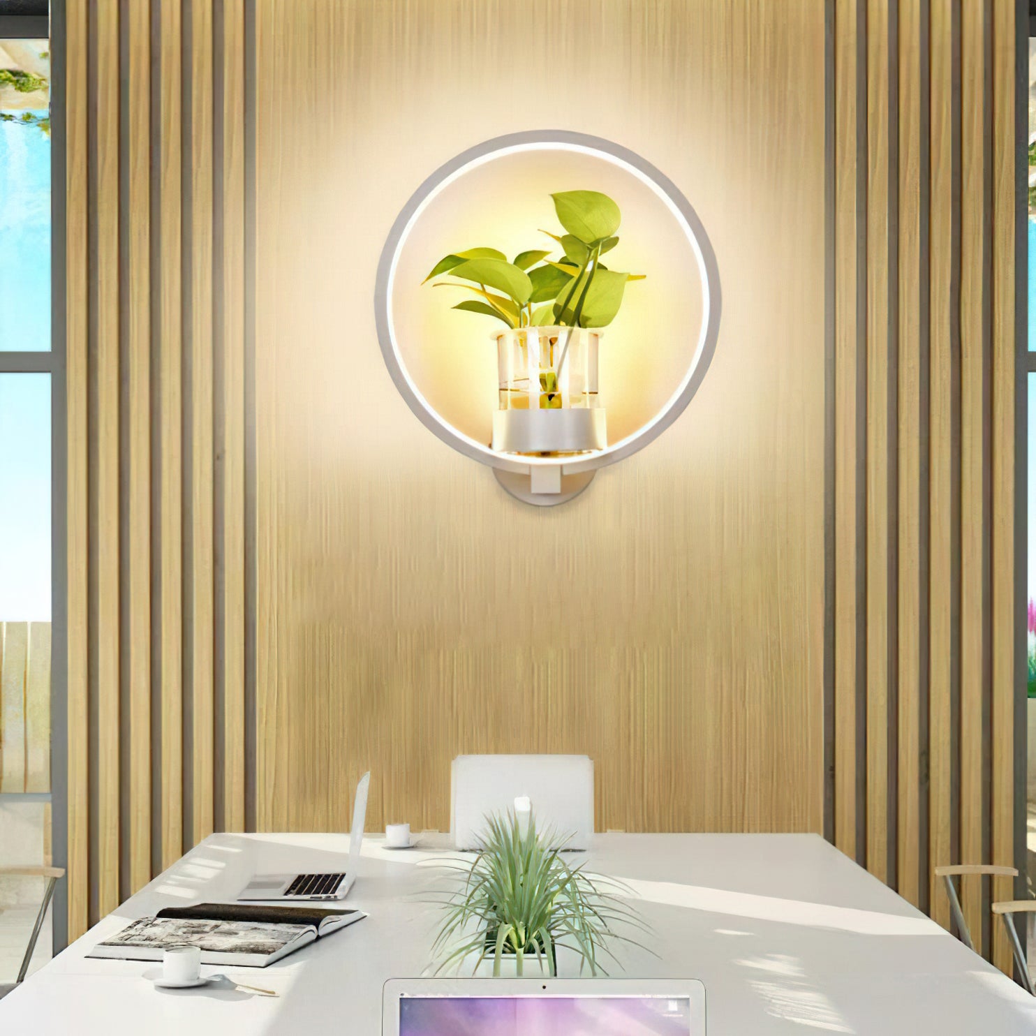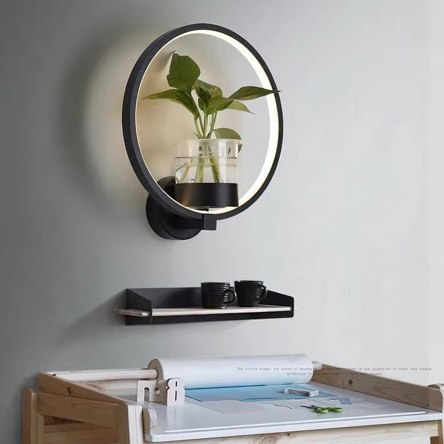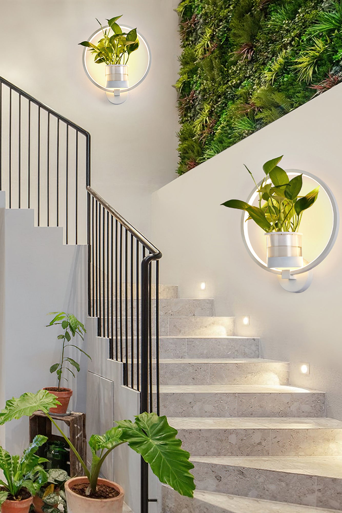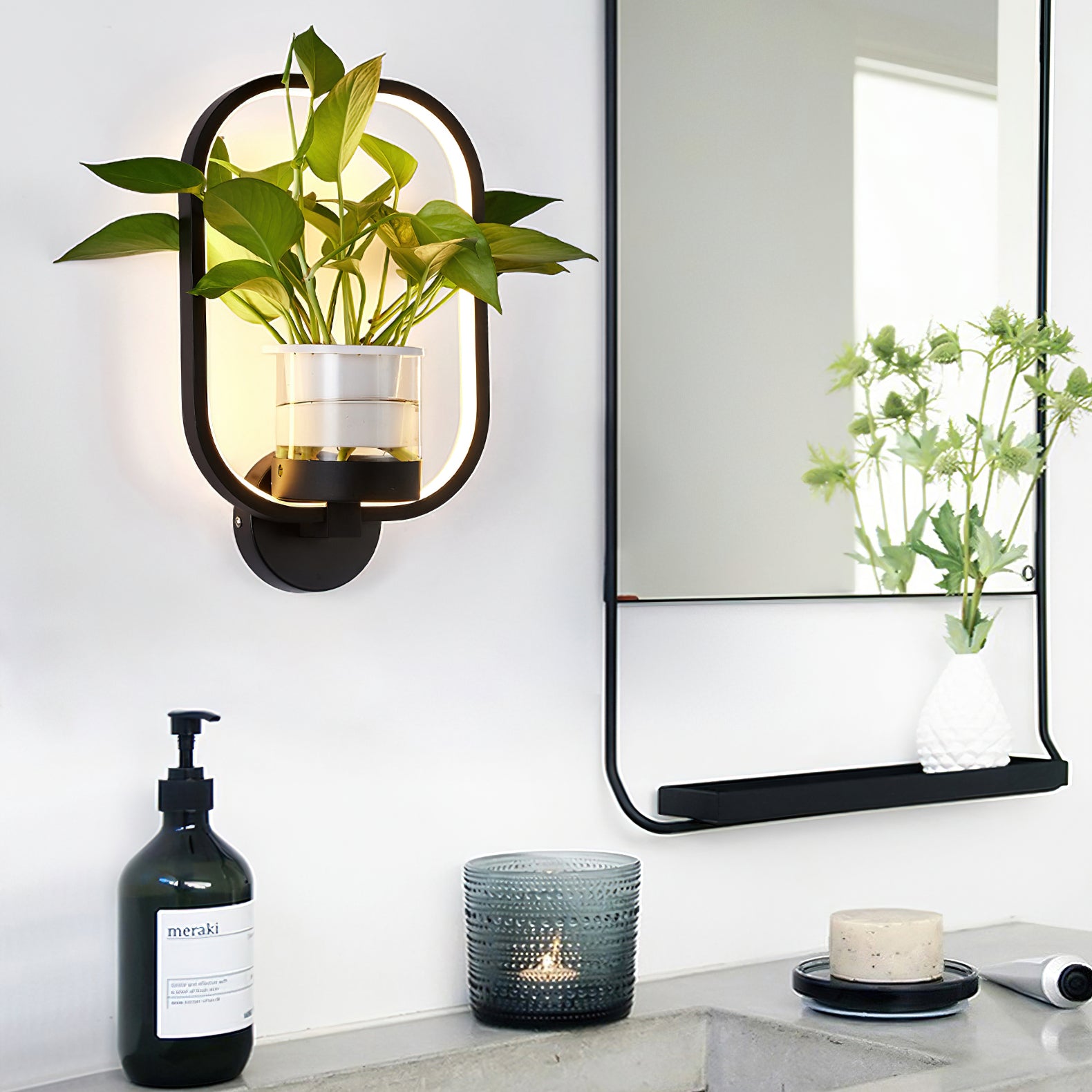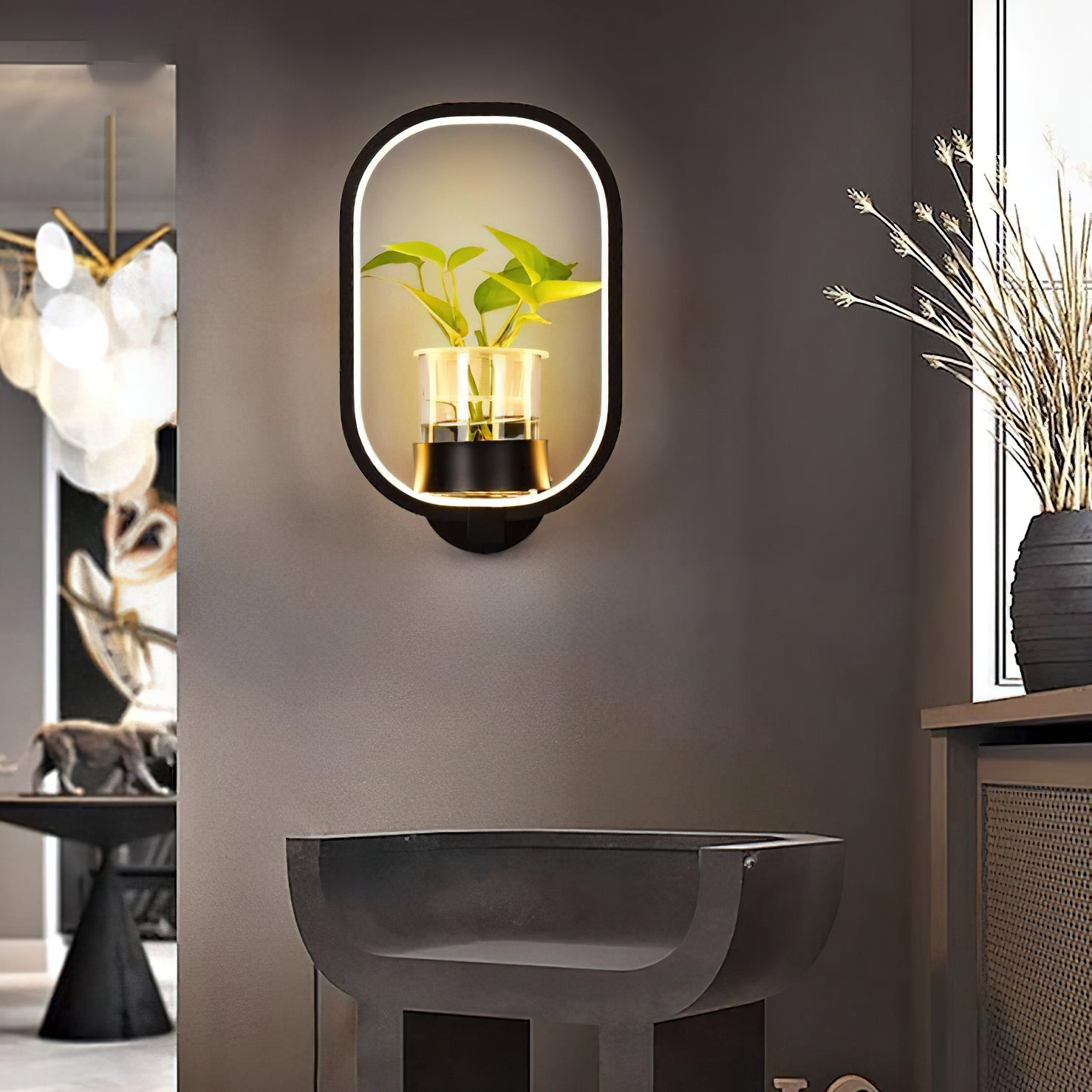 This Nordic minimalist wall lamp is paired with a transparent glass vase, and the soft light shines on the emerald green leaves, giving the home a healthy light. Unconventional creativity, the perfect combination of green plants and wall lamps, plant your favorite plants, satisfy your little gardener's dream, add a natural atmosphere to your home, and freshen the air.