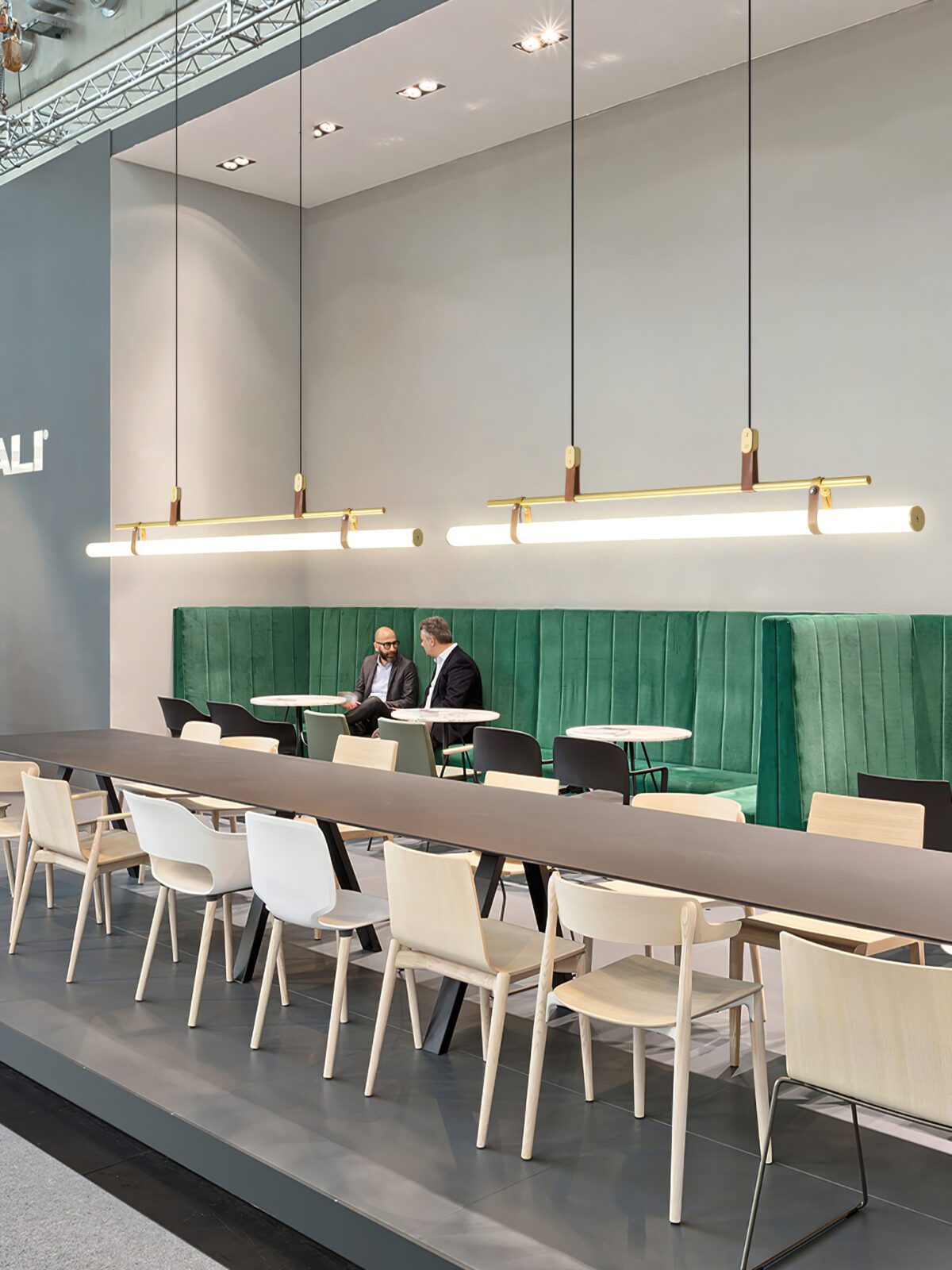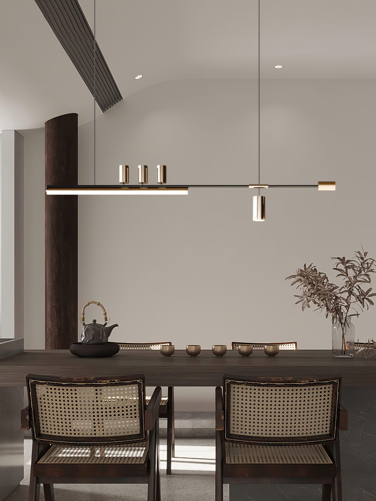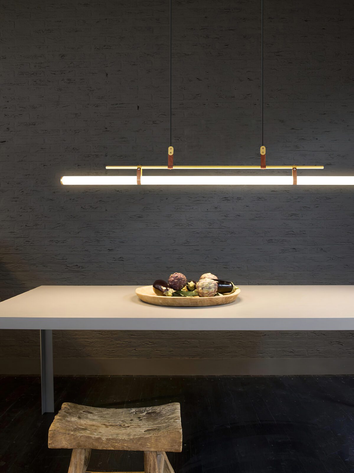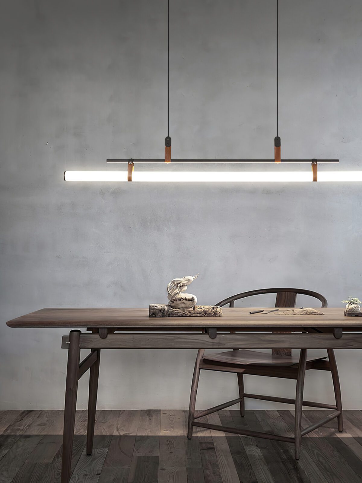 Enhance your space with the Eden Linear Pendant Light. This modern lamp features a sleek design and luxurious materials such as leather and metal to add a touch of elegance. Integrated LEDs provide energy-efficient lighting and generate almost no heat, showing a better quality of life. Elevate your style with this modern pendant light.