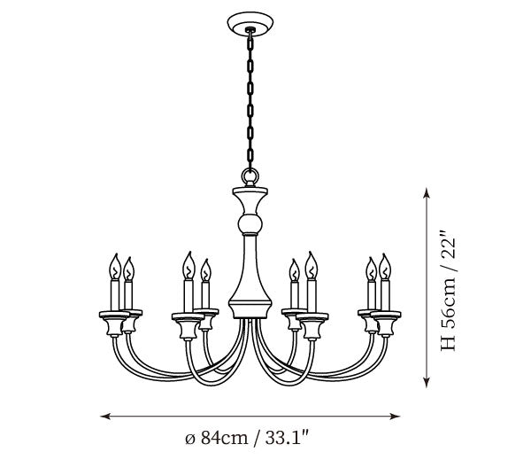 - 8-Lights Size: Dia 84cm x H 56cm / ∅ 33.1″ x H 22"