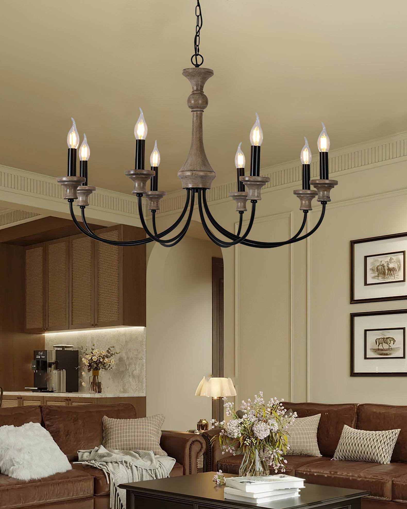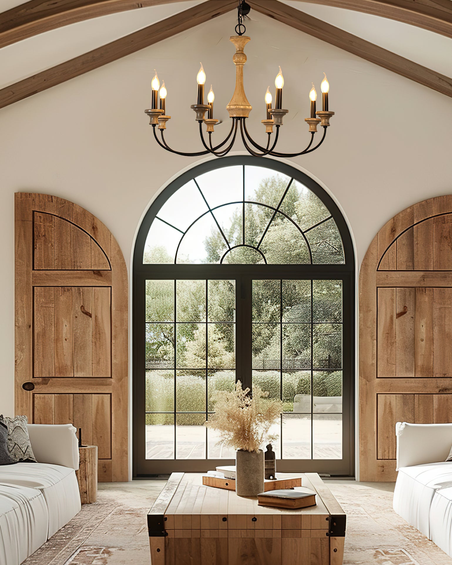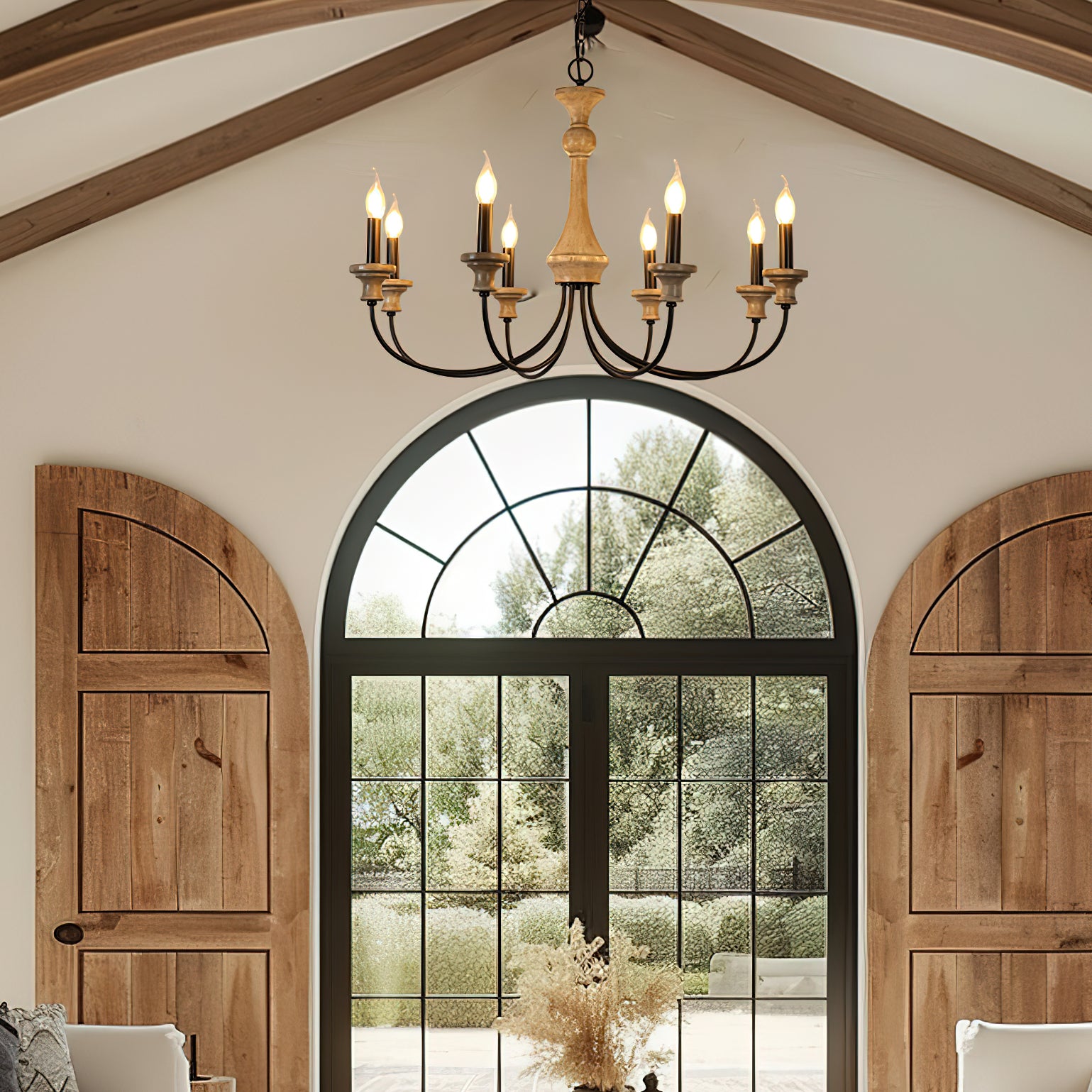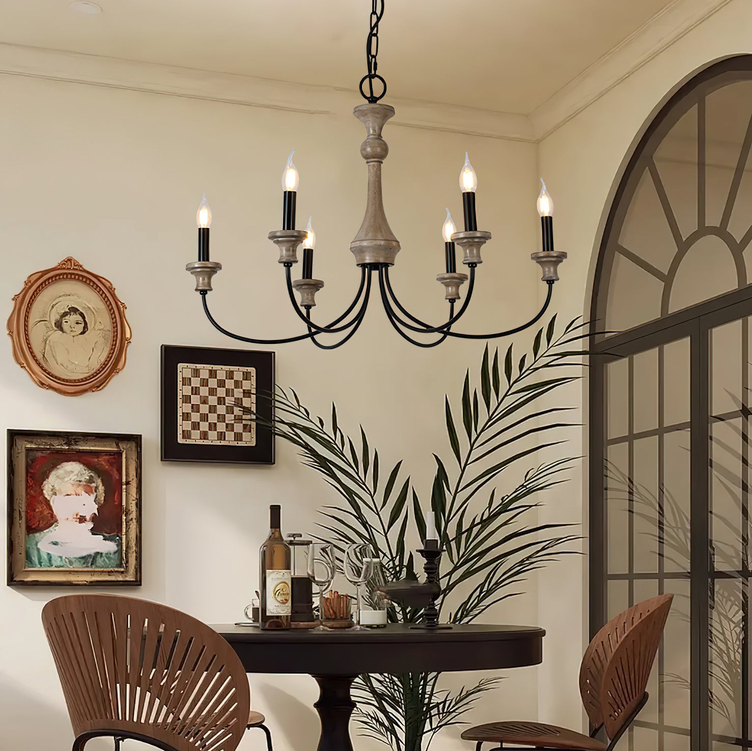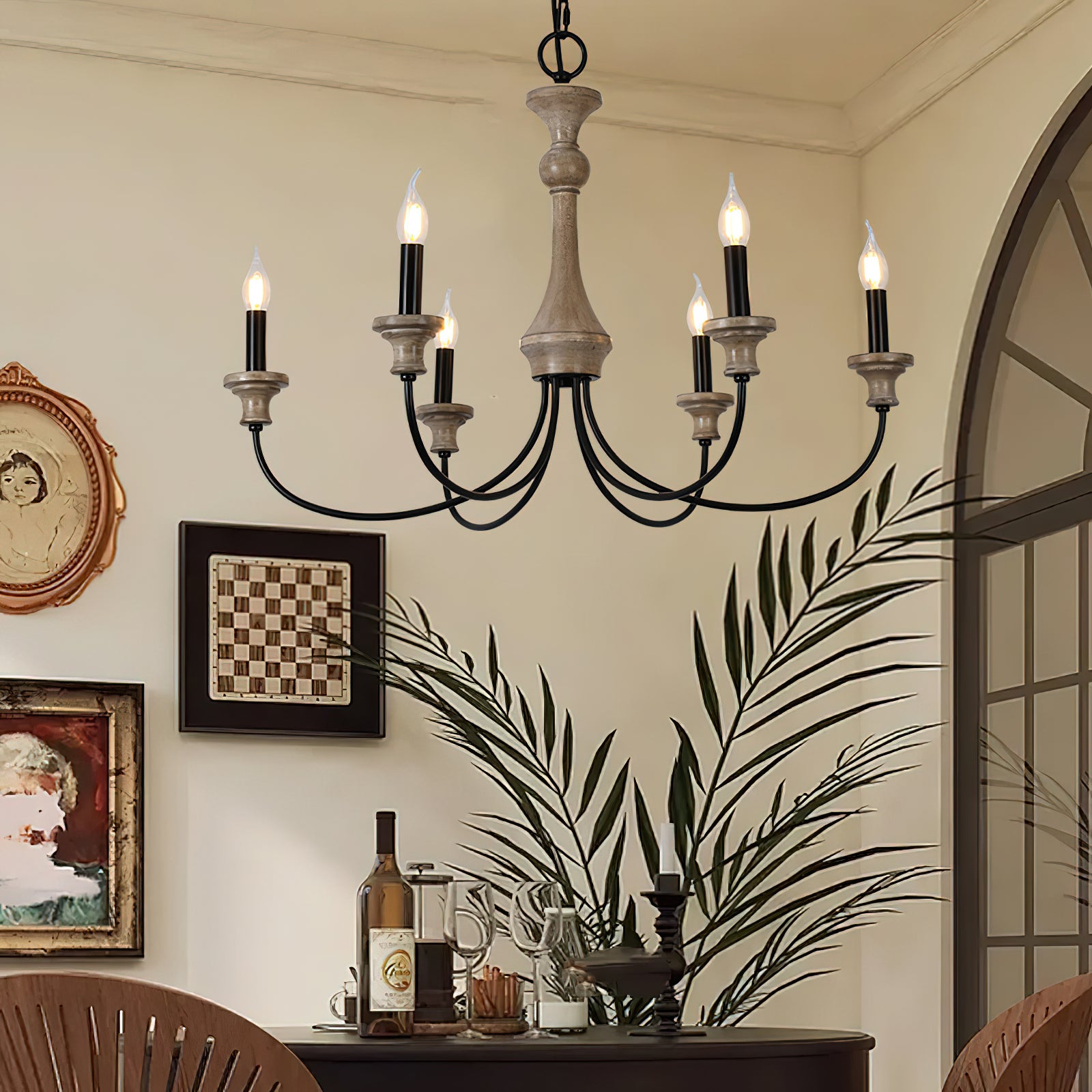 Add a touch of sophisticated luxury to your home with this exquisite Edvivi Chandelier by Mooijane. Crafted from rustic rusted iron and distressed wood, this French country inspired piece adds a timeless elegance to any space. Perfect for any room. This unique chandelier will elevate your life.