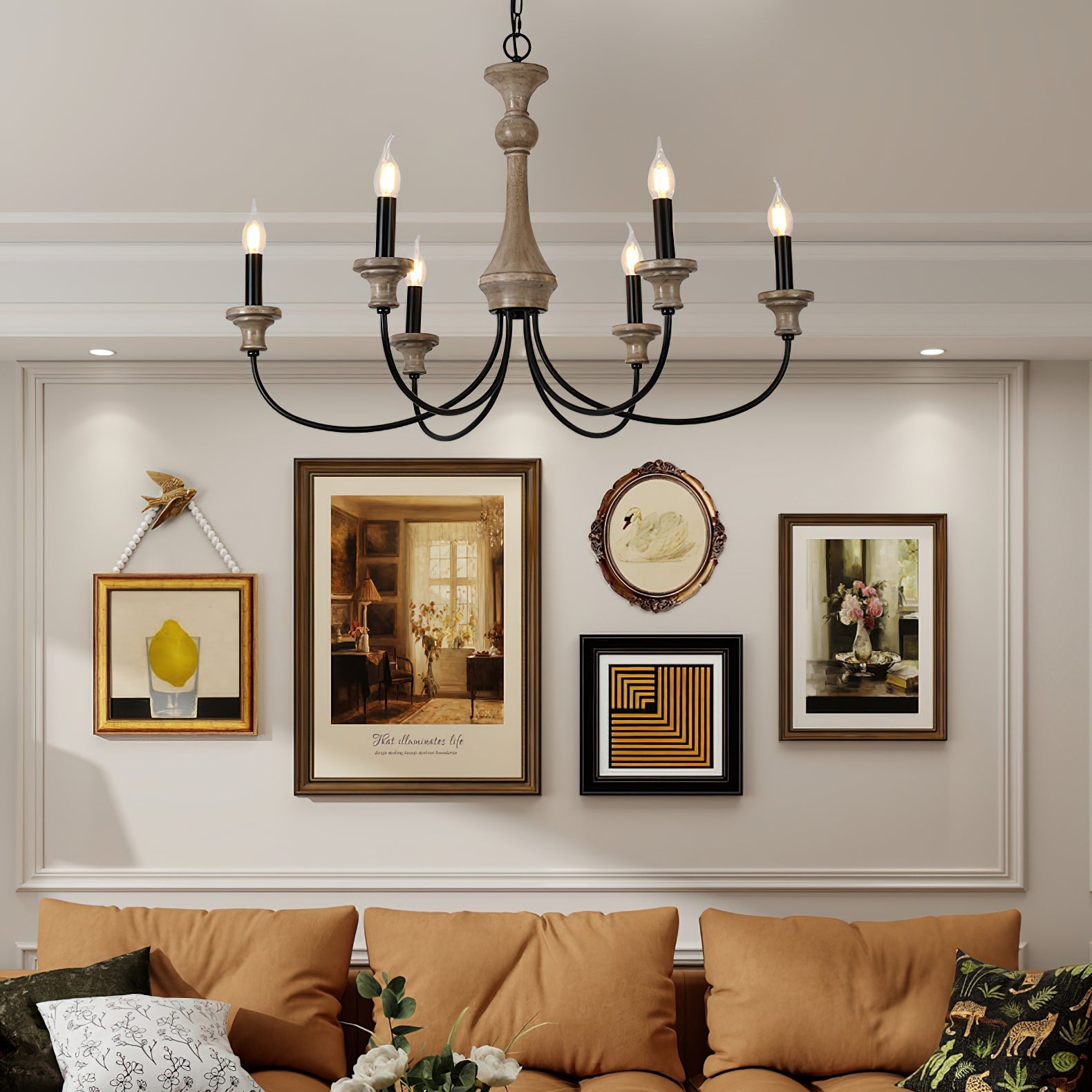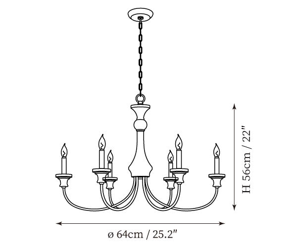 - 6-Lights Size: Dia 64cm x H 56cm / ∅ 25.2″ x H 22"