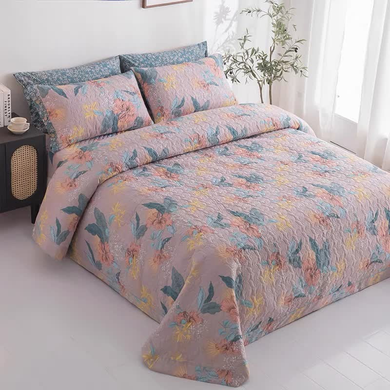 Enhance your sleeping space with our Elegant Flower Pure Cotton Quilted Bedding. Using advanced quilting techniques, this bedding offers a luxurious and unique look. Decorated with delicate floral motifs, it captures the nostalgic hues of spring, creating a warm and welcoming ambiance.