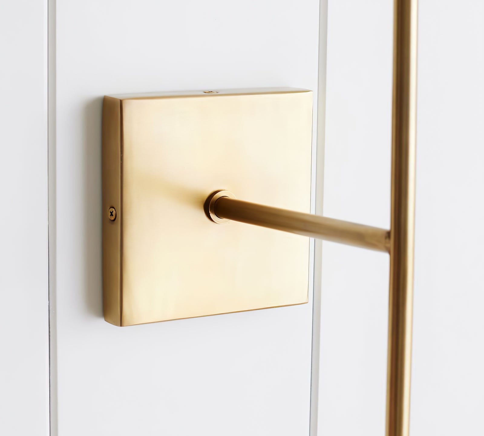 This modern Ellis Brass Wall Light exudes minimalist elegance with its slender brass frame and crisp, conical white shade. The long, vertical line of the brass arm, paired with the sharp angles of the shade, creates a refined, contemporary profile that enhances any room with subtle sophistication. Mounted on a square brass backplate, this fixture adds a warm, ambient glow, perfect for hallways, bedside lighting, or accenting living spaces. Its sleek design effortlessly complements modern, minimalist, and transitional decor, adding both style and function to your interior.