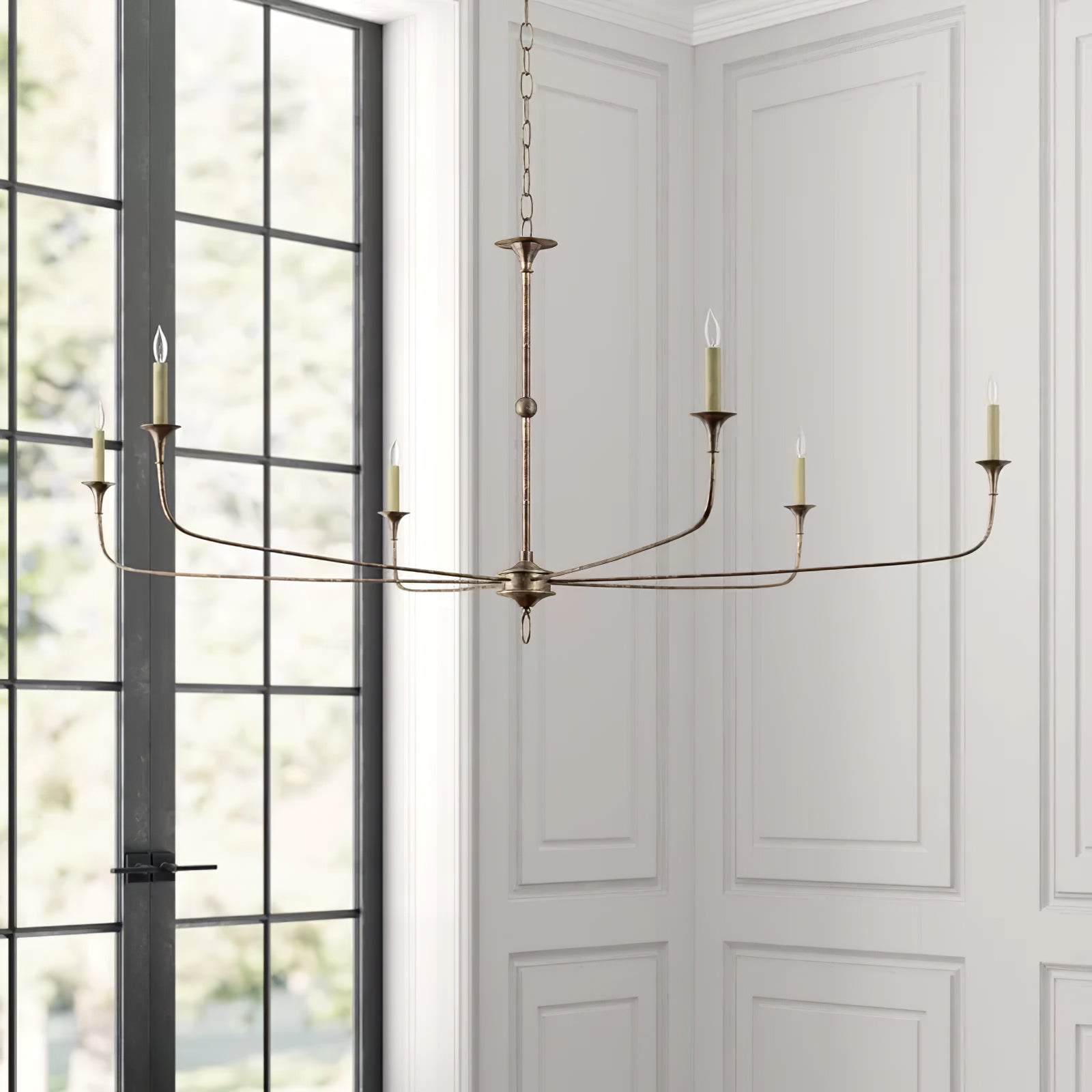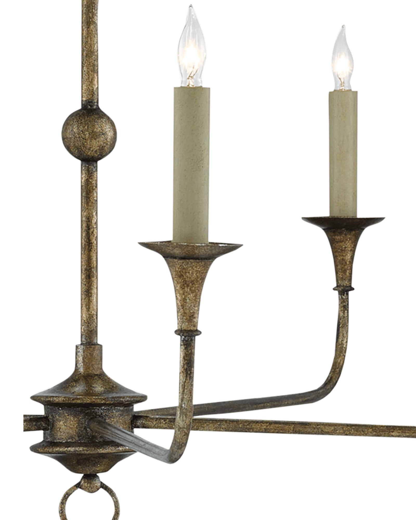 Elevate any space with our Elongated Antique Chandelier. With its revamped antique design, this chandelier brings sophistication and charm to any room. Its elongated shape provides even more lighting, making it perfect for larger spaces. Discover the perfect blend of old-world elegance and modern functionality with our chandelier.