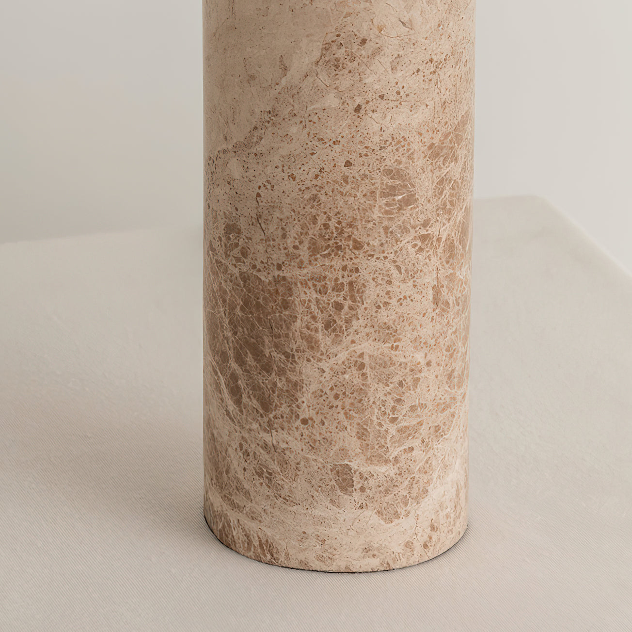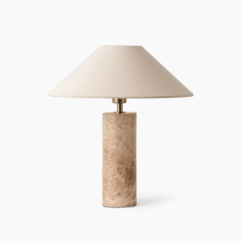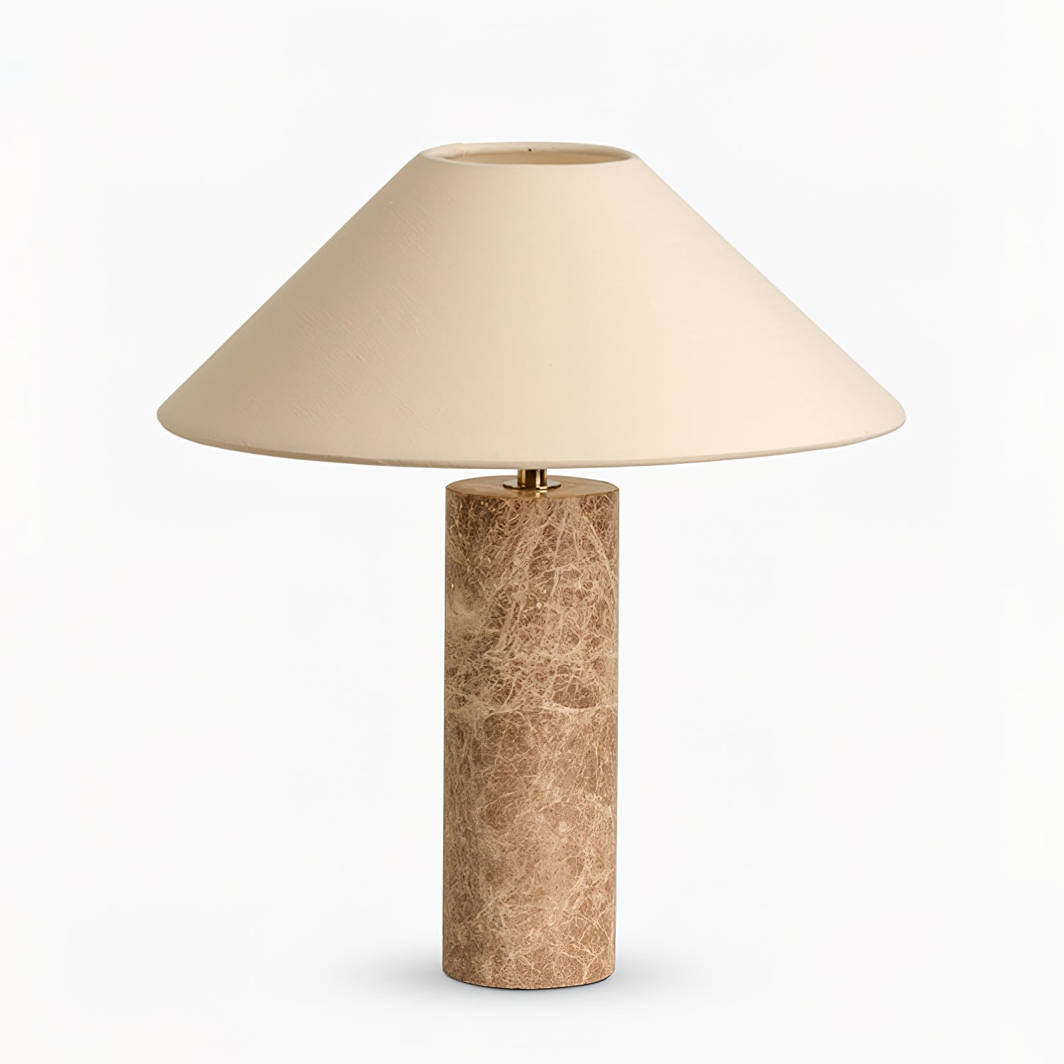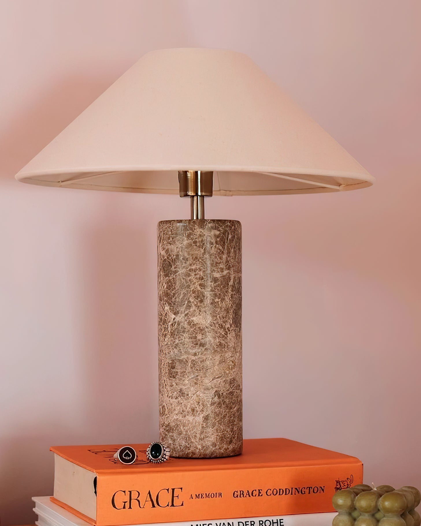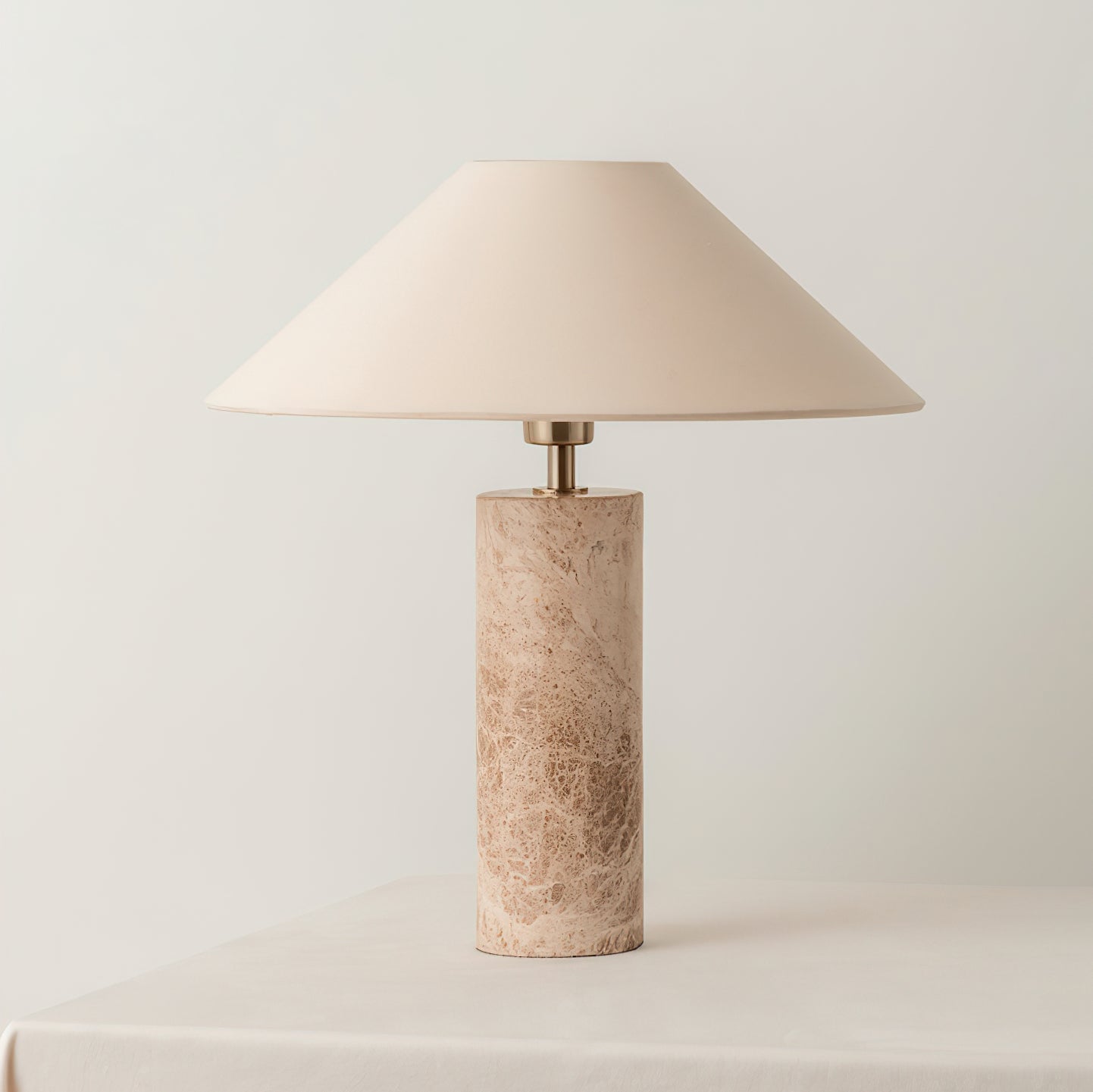 The Elsie Marble Table Lamp by Mooijane features a natural unique marble base and a warm white linen shade for a sleek, sophisticated look. Each lamp is unique, showcasing the unique texture of the marble. Perfect for a small table or bedside.