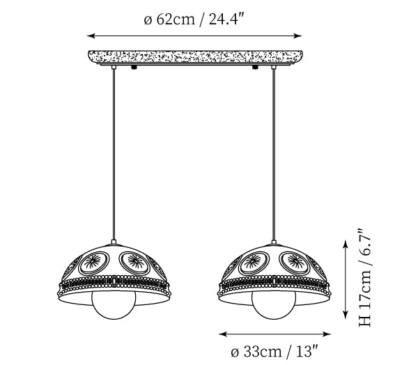 - Single Head Size: Dia 33cm x H 17cm / ∅ 13″ x H 6.7″