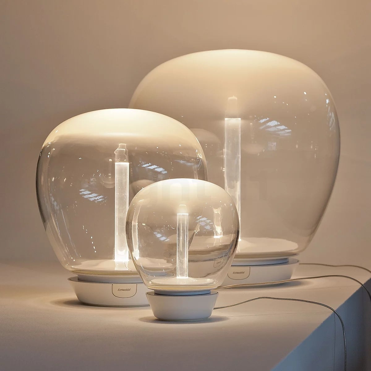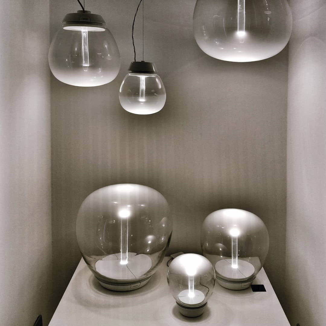 Empatia is inspired by the association between the great glass-blowing and the tradition of LED technology. High interest in the expression potentials of this material resulted in cooperation with master glass blowers to gain full control of the special suppleness of Venetian glass and to work on the balance between surface and light, between subtle densities and transparencies.