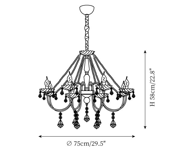 - 8-Lights Size: Dia 75cm x H 58cm / ∅ 29.5″ x H 22.8"