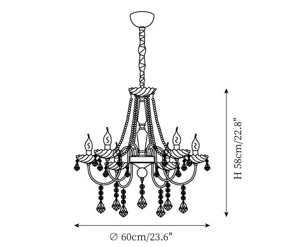 - 6-Lights Size: Dia 60cm x H 58cm / ∅ 23.6″ x H 22.8"