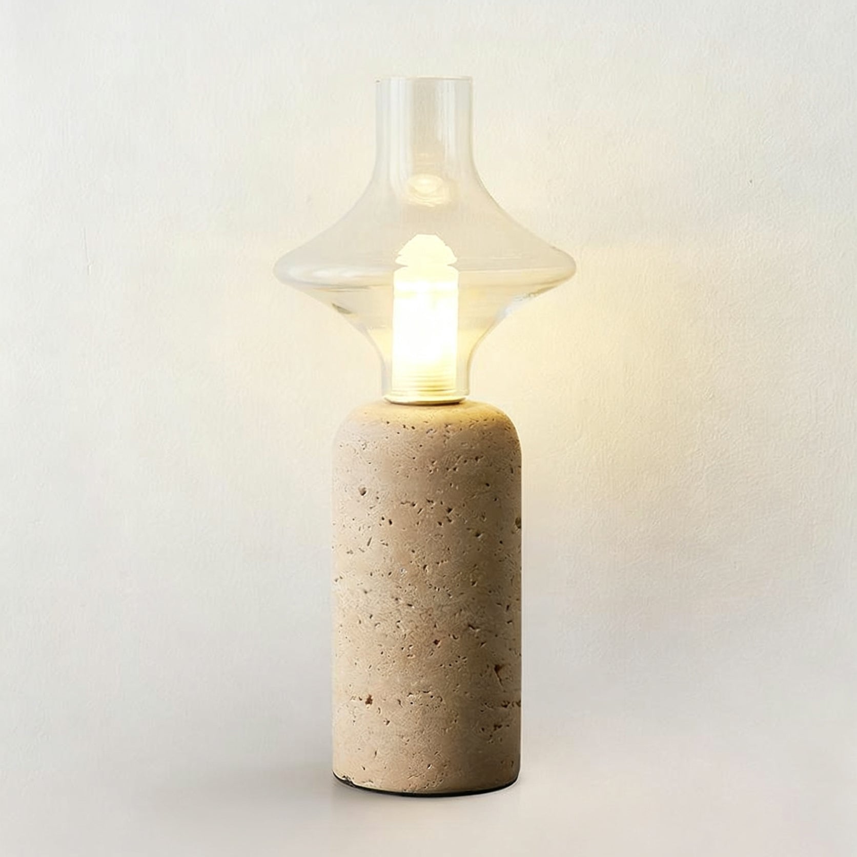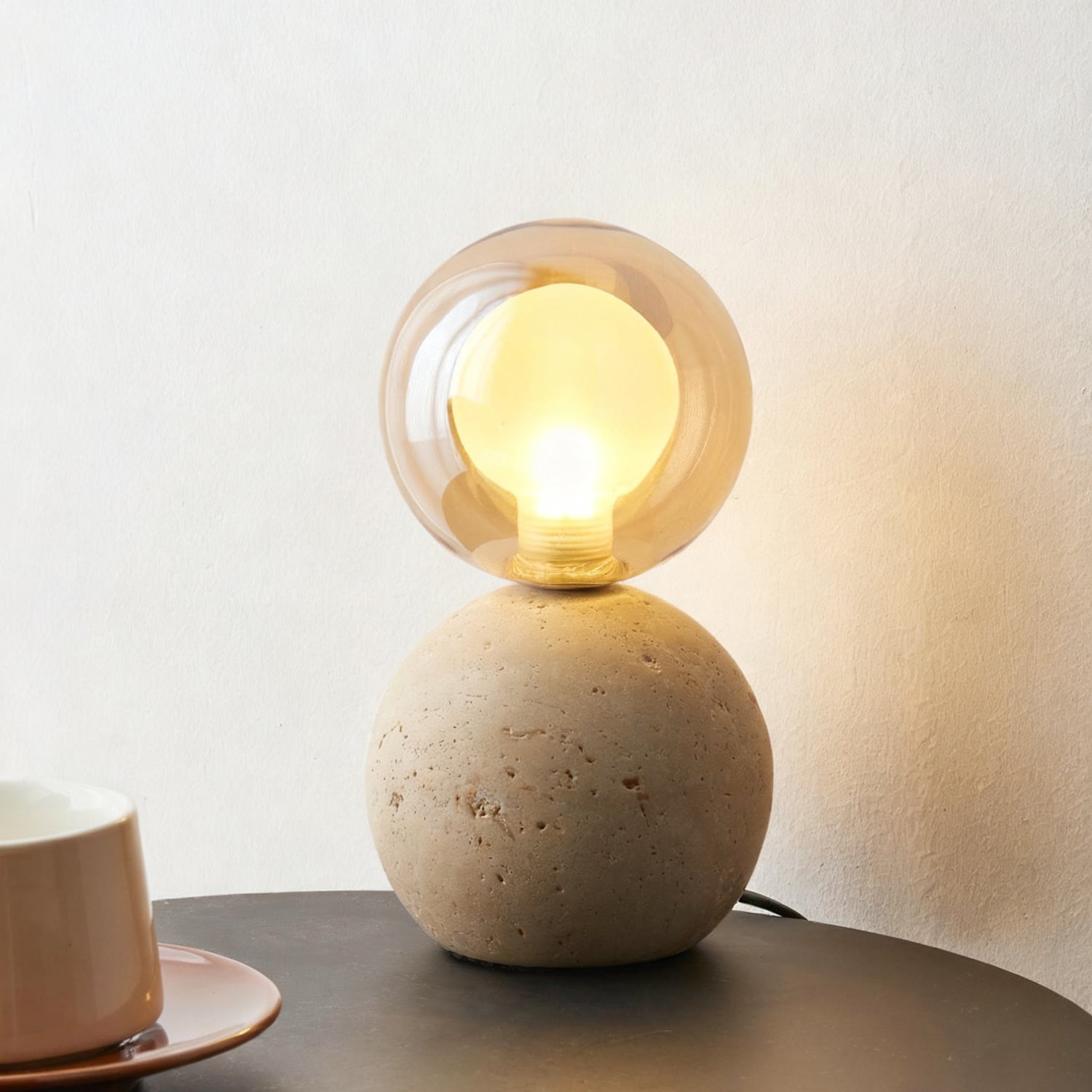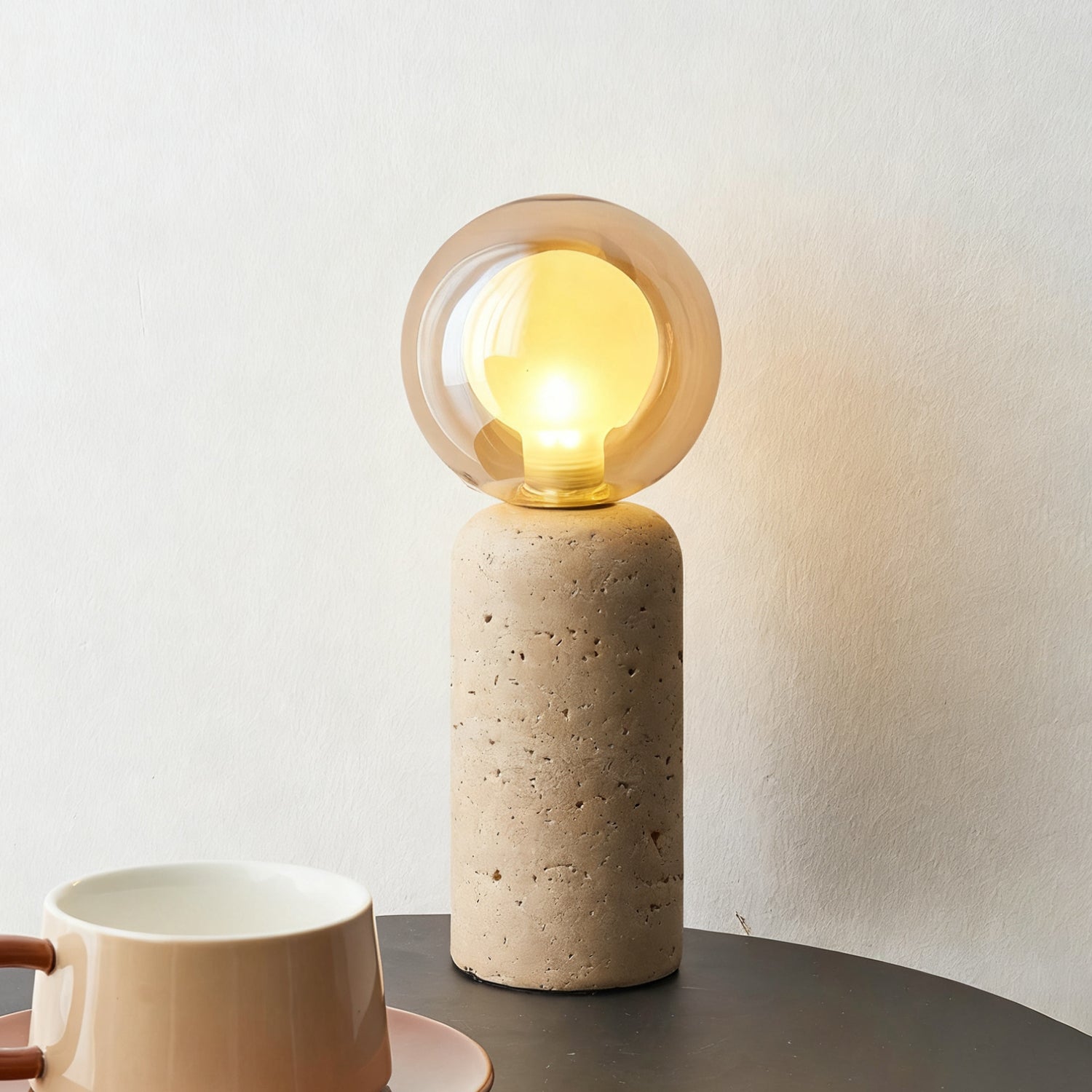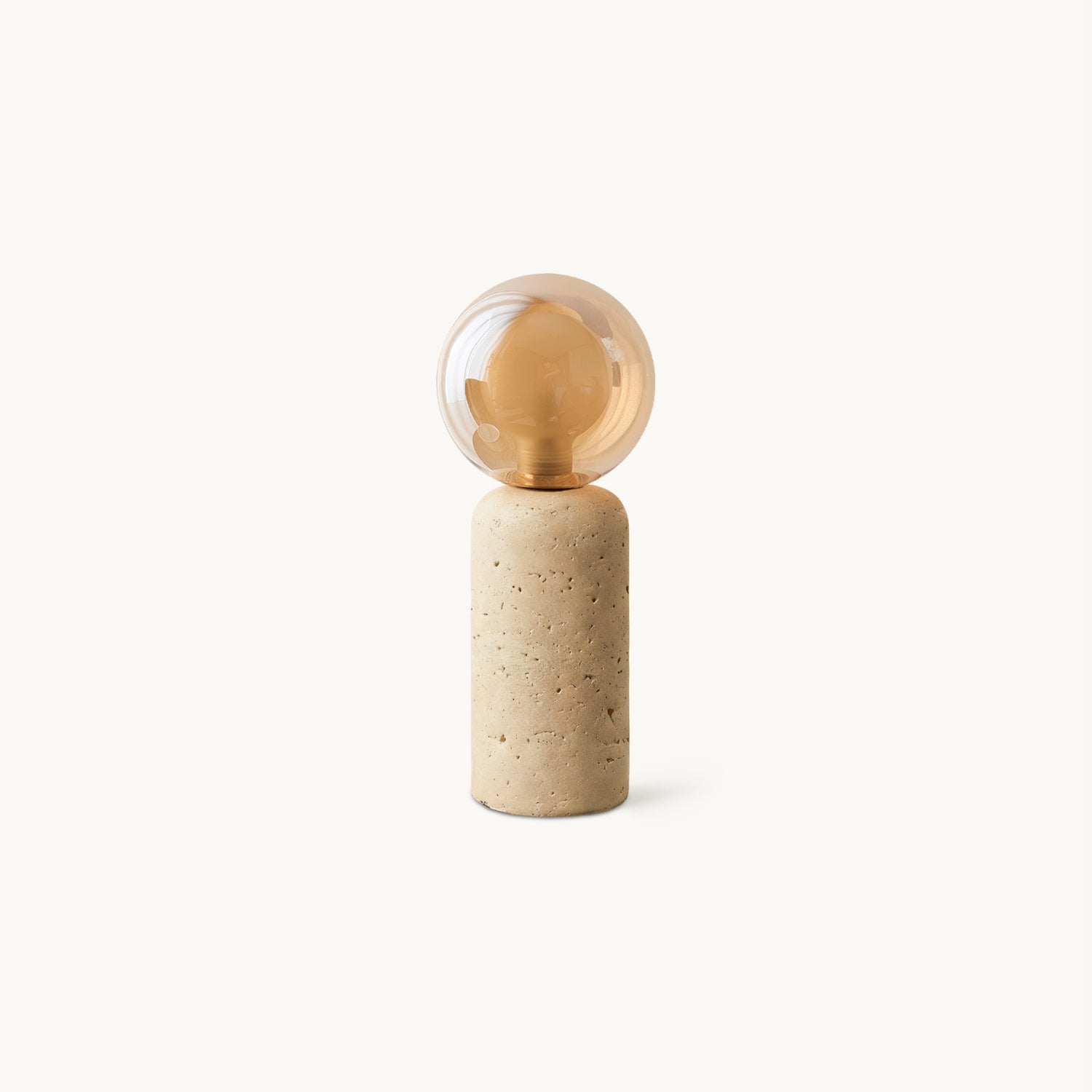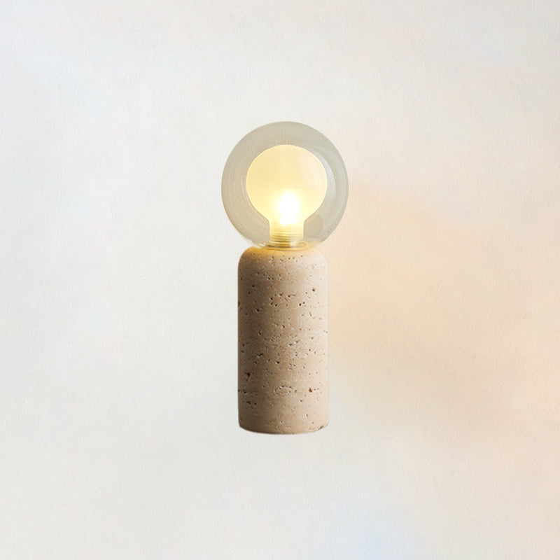 The Este Travertine Table Lamp from Mooijane captures the essence of minimalism through natural materials and modern design. Its smooth cylindrical base highlights the organic textures and pores of travertine, offering raw elegance and solidity. Topped with a glass globe, it casts a warm, gentle glow that balances the weight of stone with the lightness of glass.