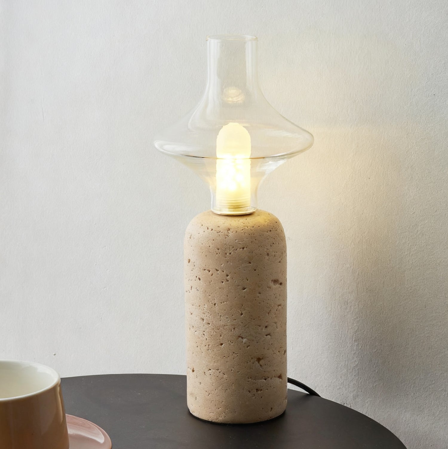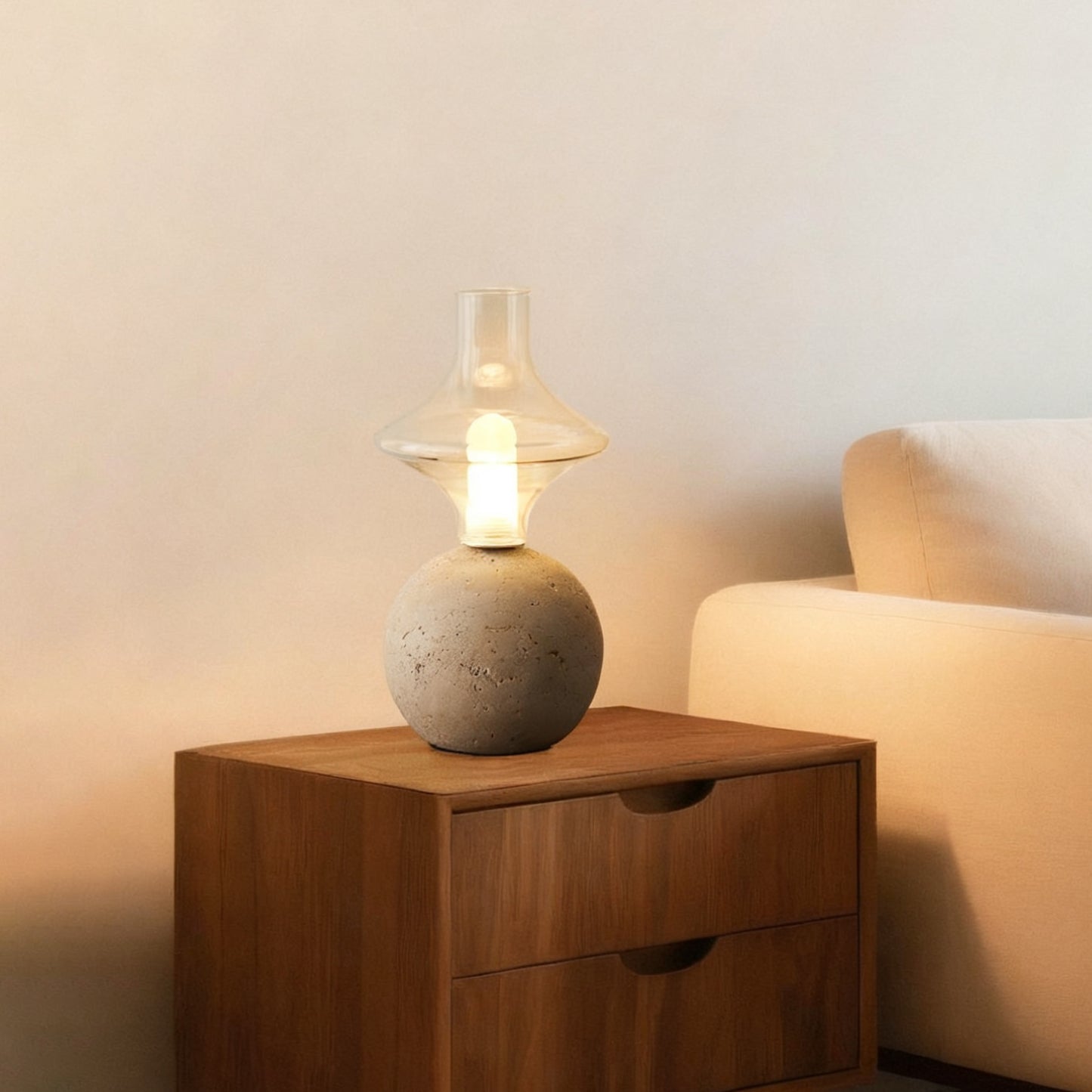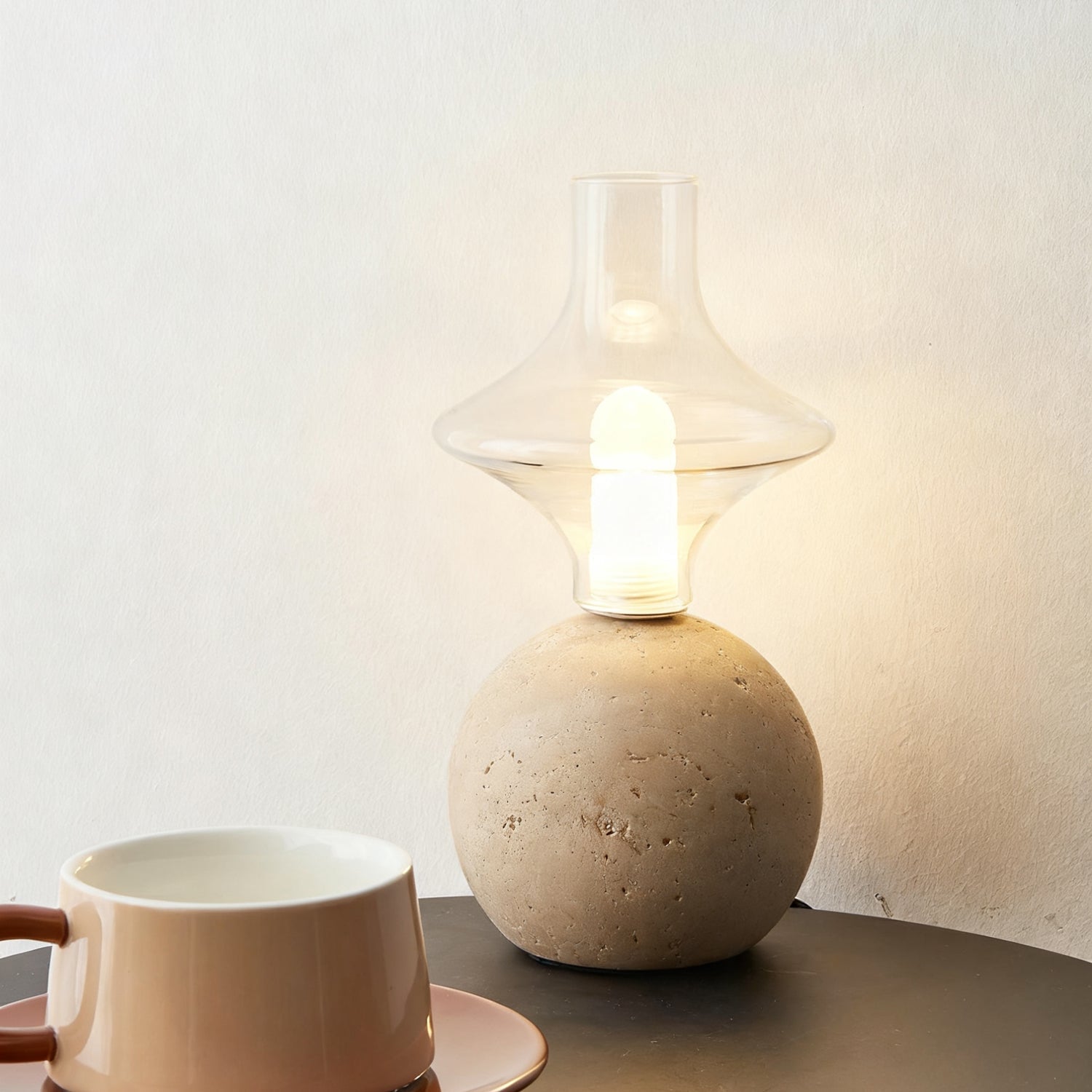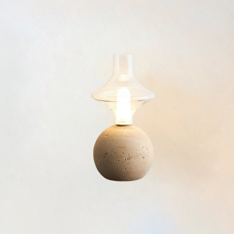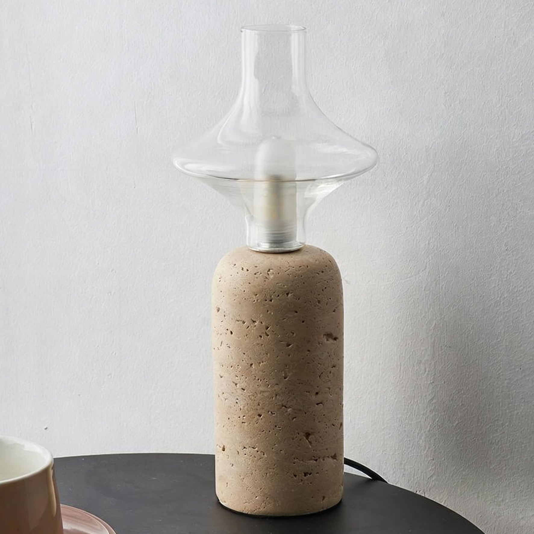 The Este Travertine Table Lamp from Mooijane captures the essence of minimalism through natural materials and modern design. Its smooth cylindrical base highlights the organic textures and pores of travertine, offering raw elegance and solidity. Topped with a glass globe, it casts a warm, gentle glow that balances the weight of stone with the lightness of glass.