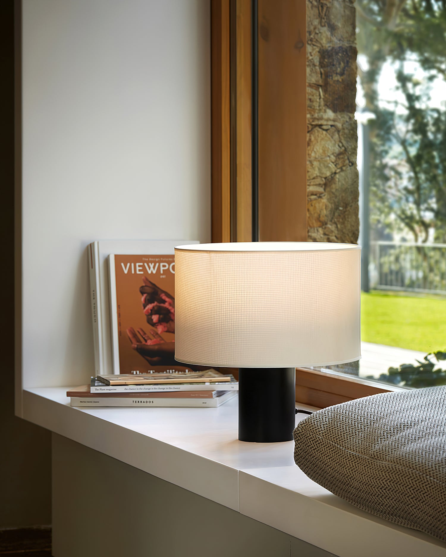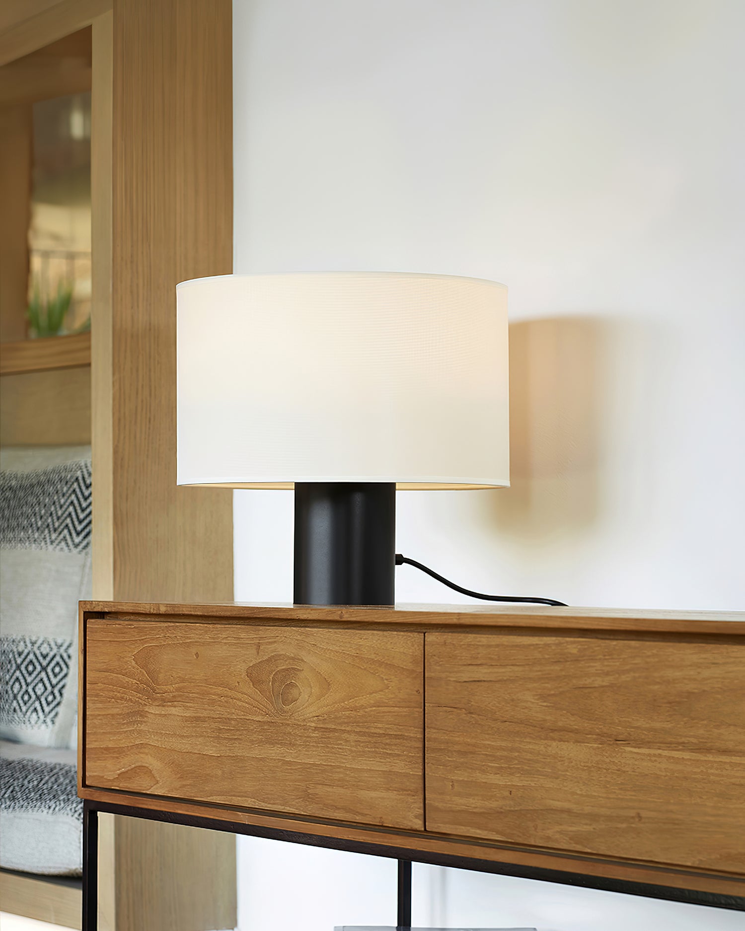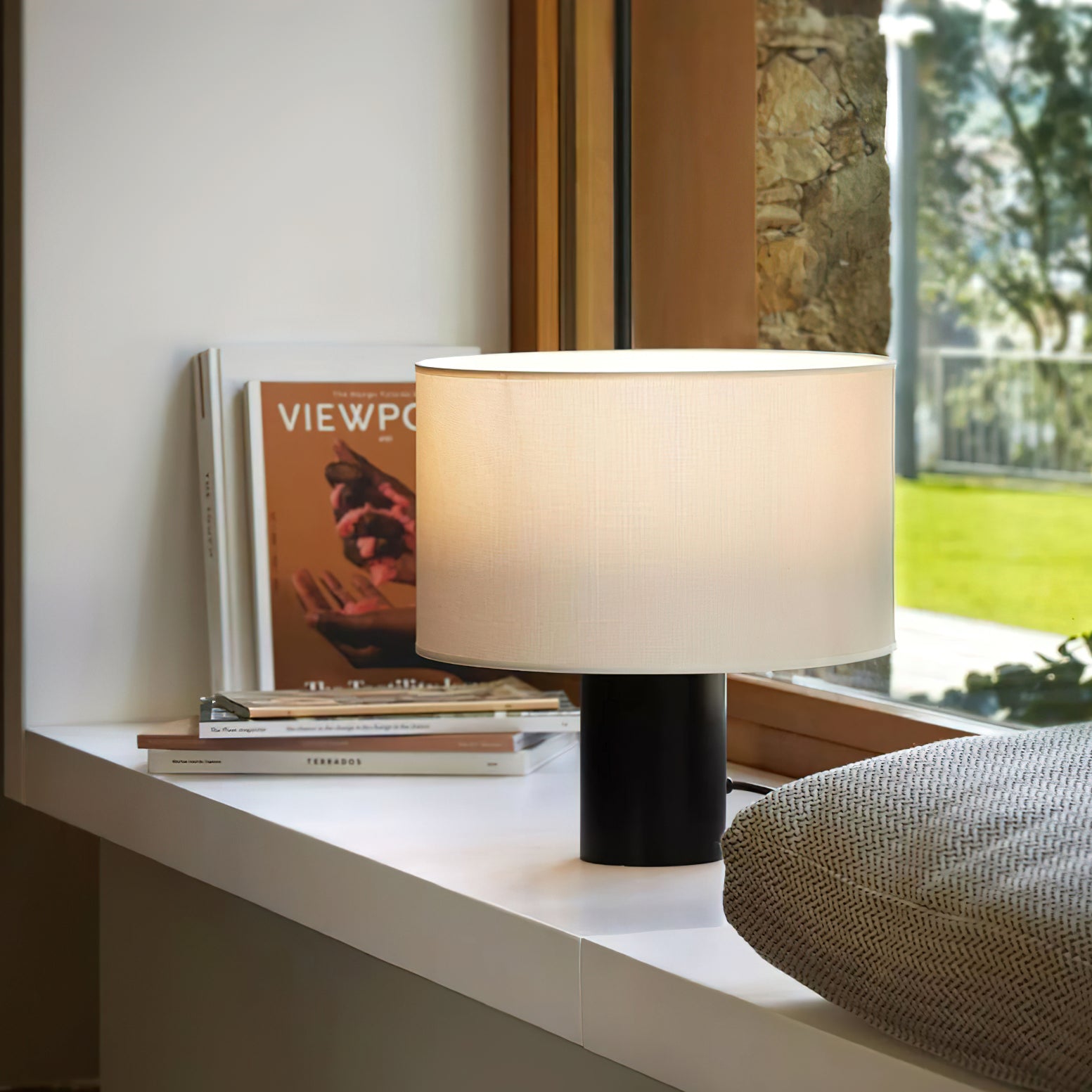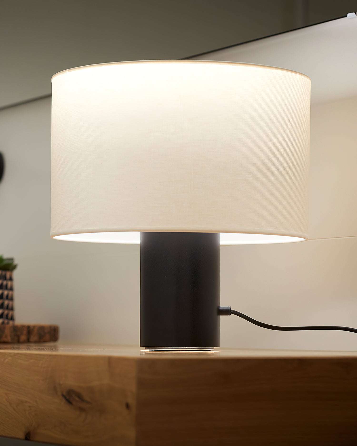 Add sparkle to your space with the Estiluz Cyls Table Lamp from Mooijane. Crafted in black metal, this pendant lamp exudes sophistication and elevates the mood of your room. Pair it with a fabric shade for added warmth and comfort. Light up your space with elegant, trendy style.