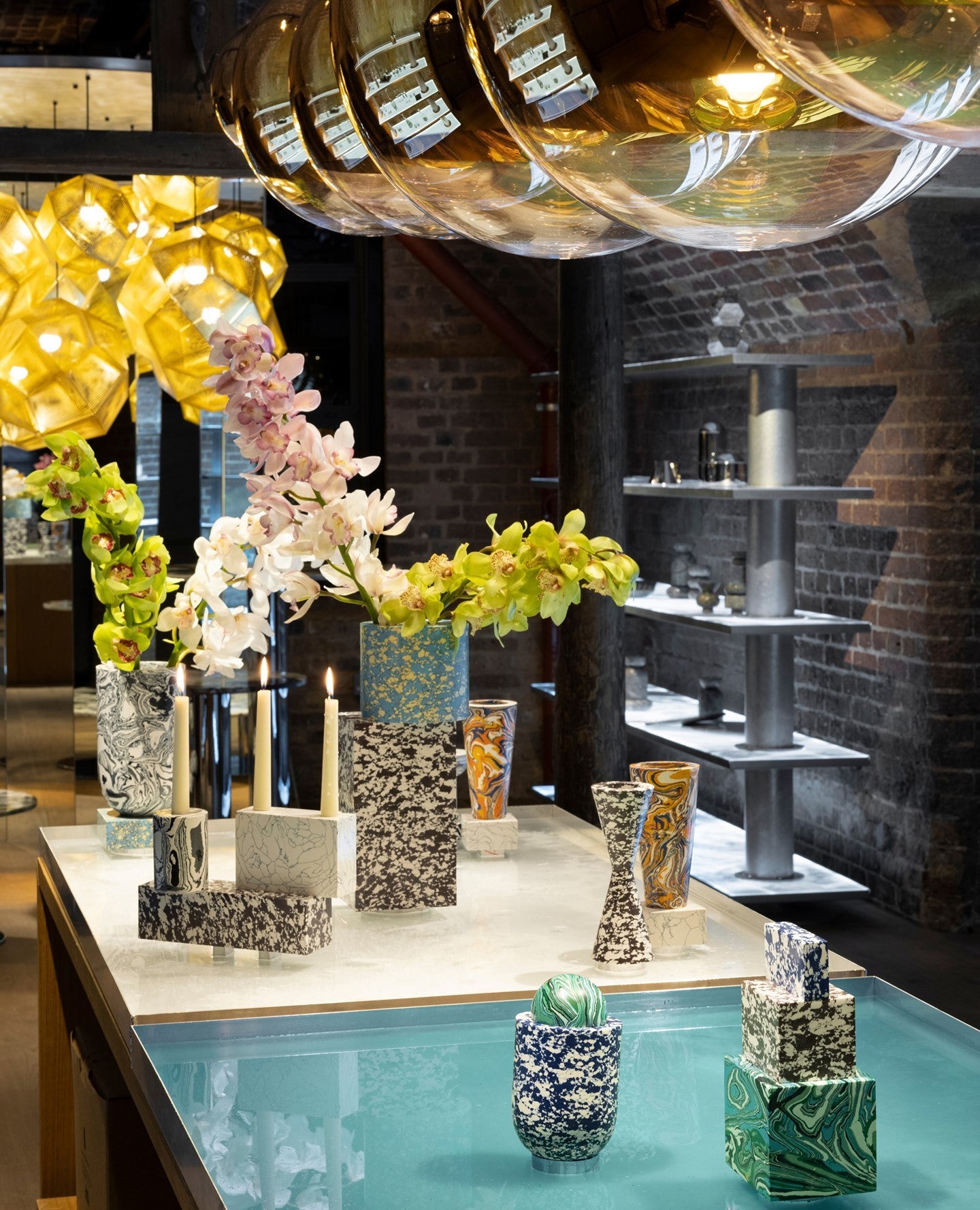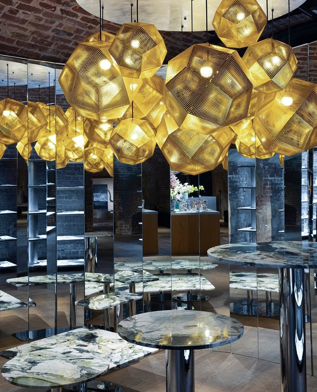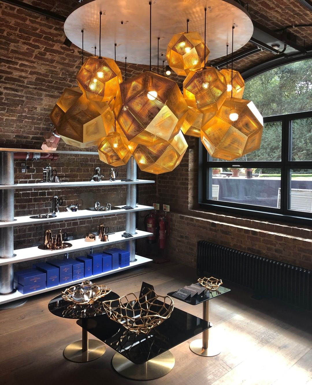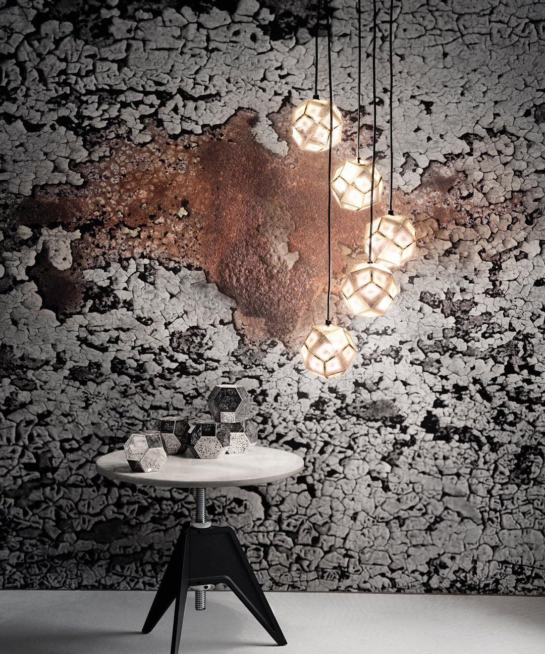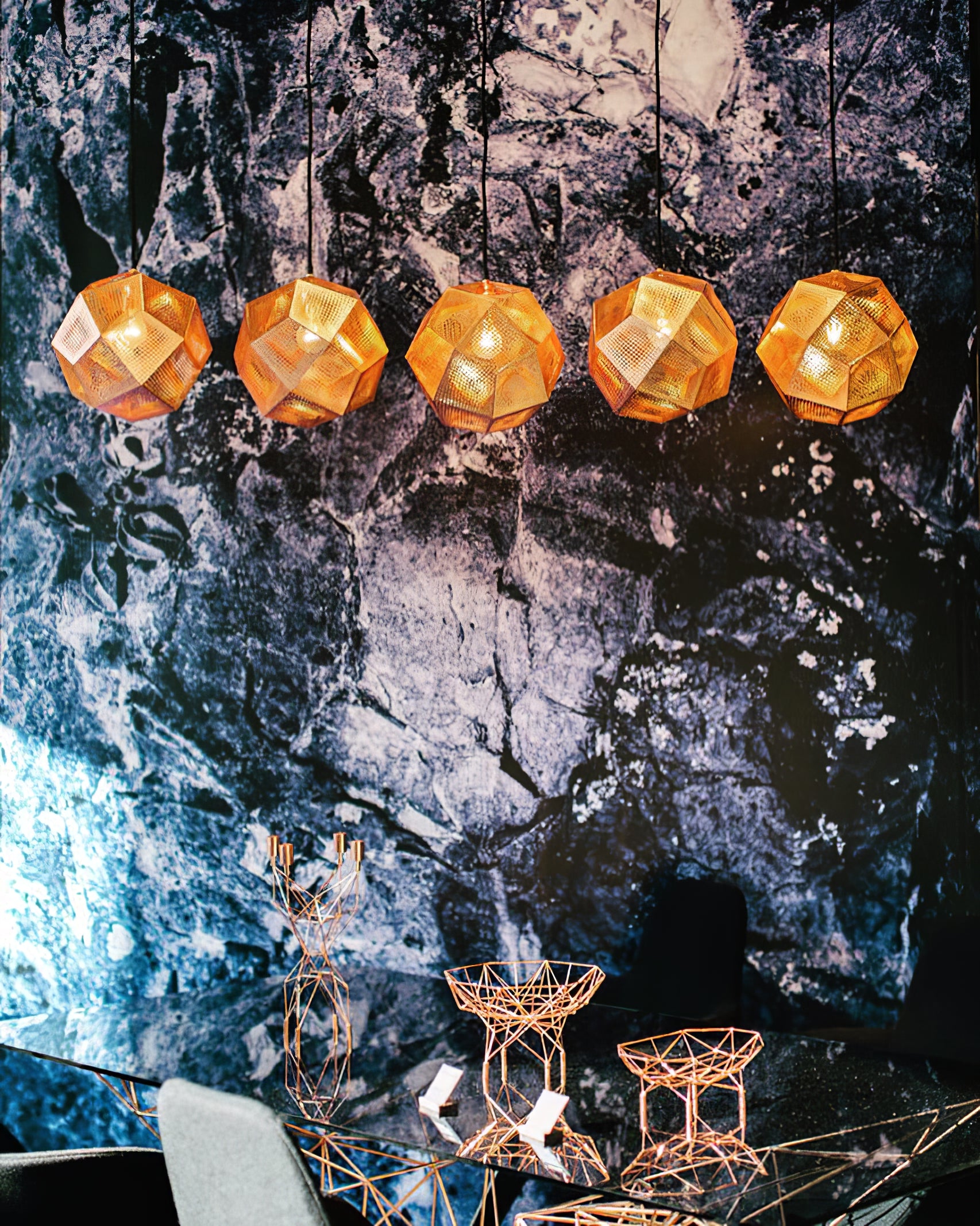 These geodesic pendants and tea light holders are formed of finely pierced flat metal sheets tabbed together like Victorian tin toys. Using digital acid etching methods, Etch has pattered for the effective filtering of light designed to cast an intricate set of shadows. The collection also features tea infusers.