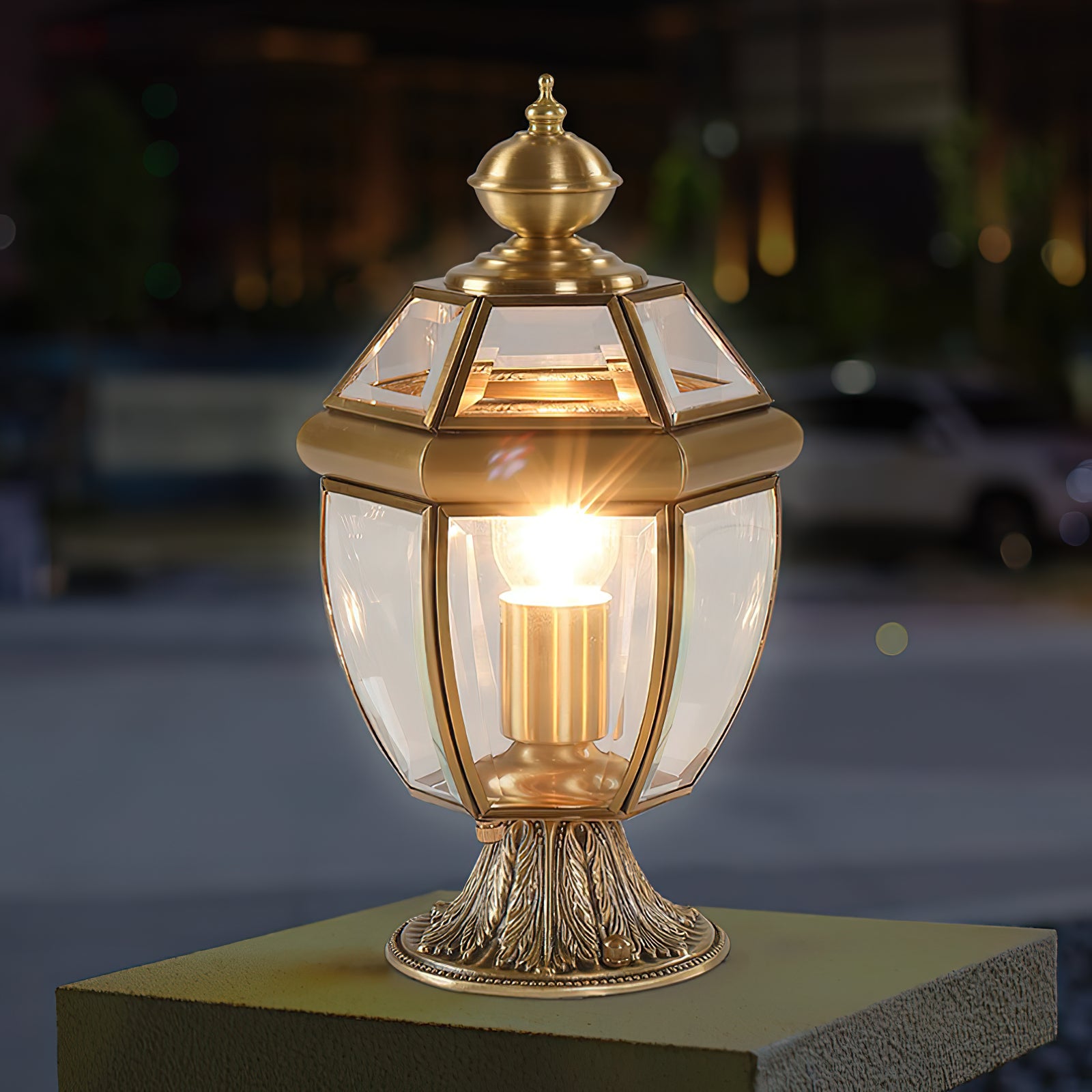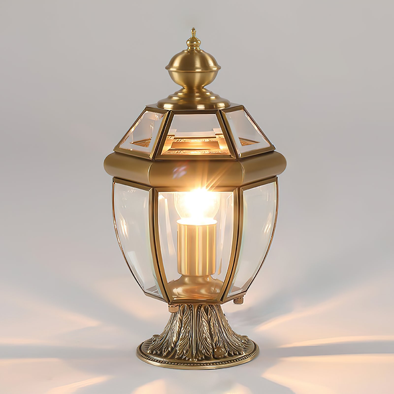 - Material: Brass, Clear Glass
