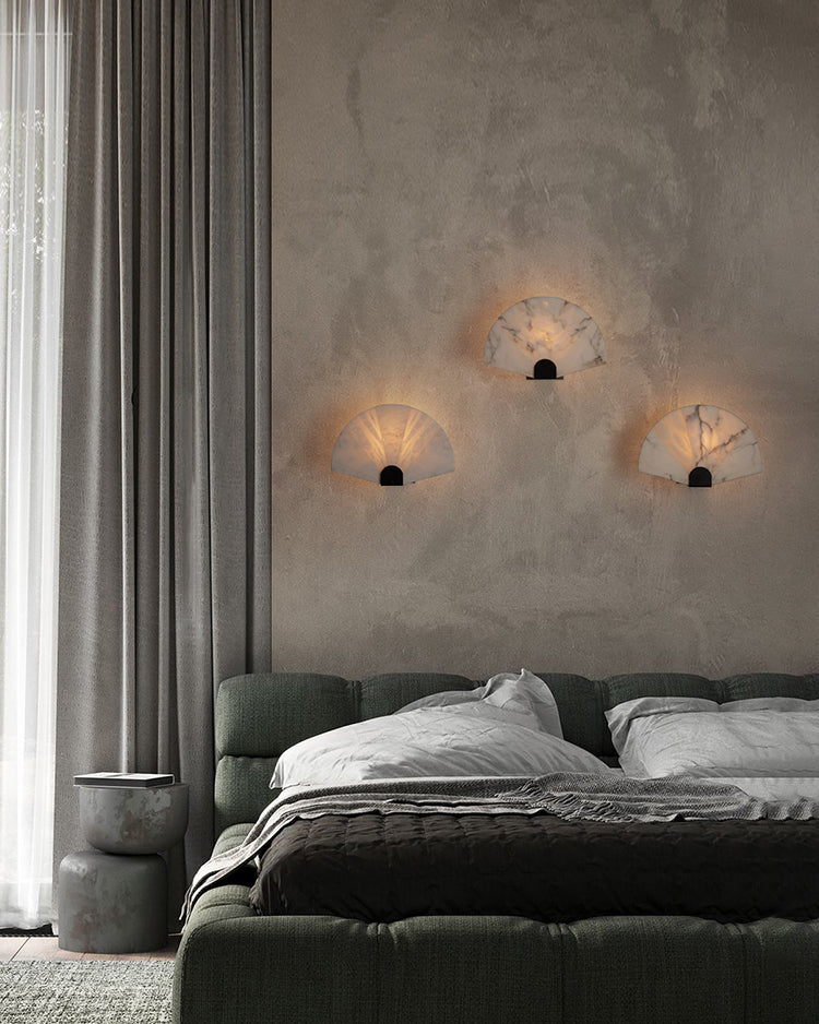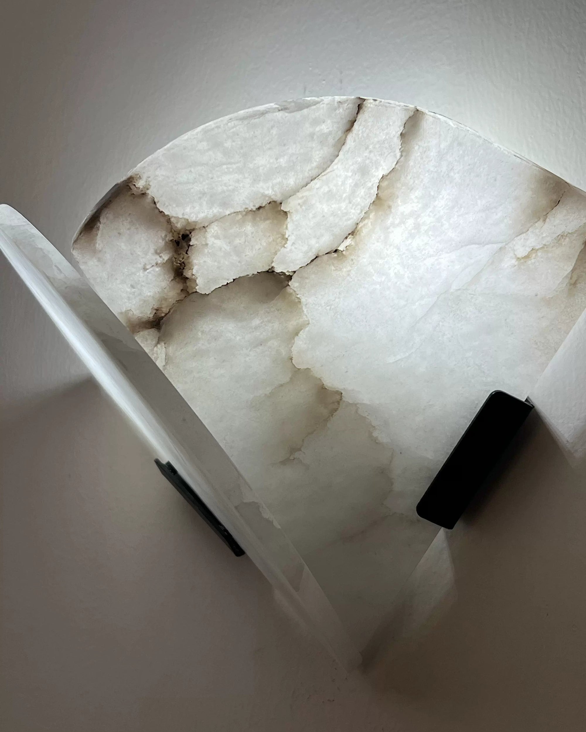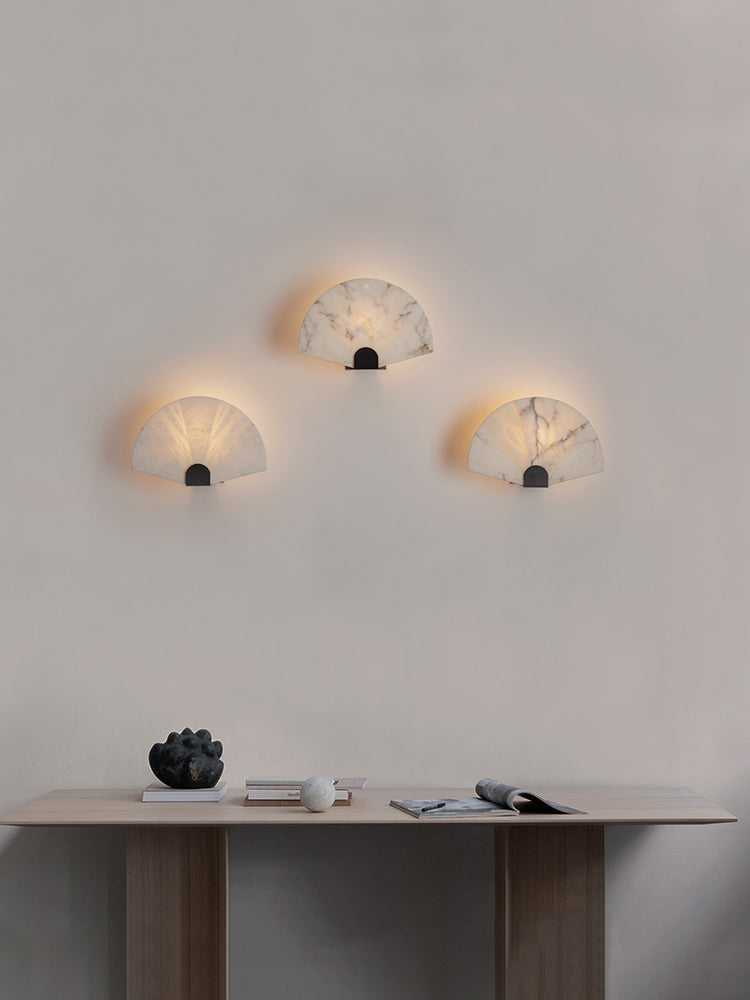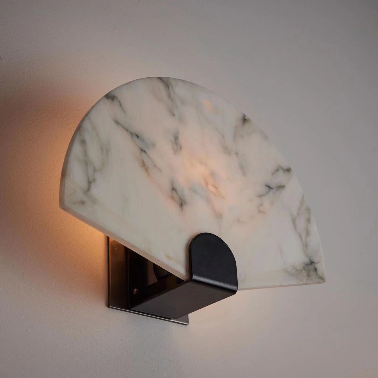 Elevate your home decor with the Fan-Shaped Alabaster Wall Light. This stunning wall lamp features a unique fan-shaped alabaster shade that diffuses light beautifully, creating a warm and inviting atmosphere. Perfect for hallways, living rooms, or bedrooms, it adds a touch of elegance and sophistication to any space. The combination of alabaster and sleek design makes it a versatile piece that complements both modern and traditional interiors. Illuminate your space with style and grace.