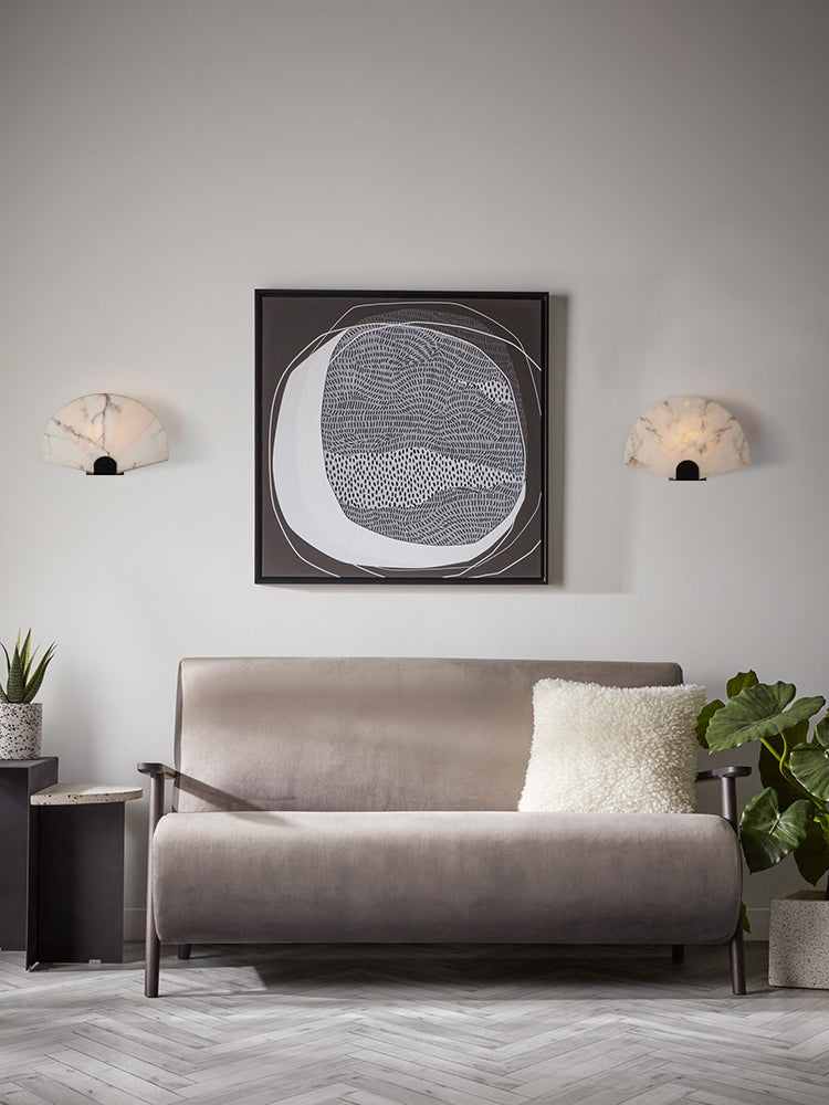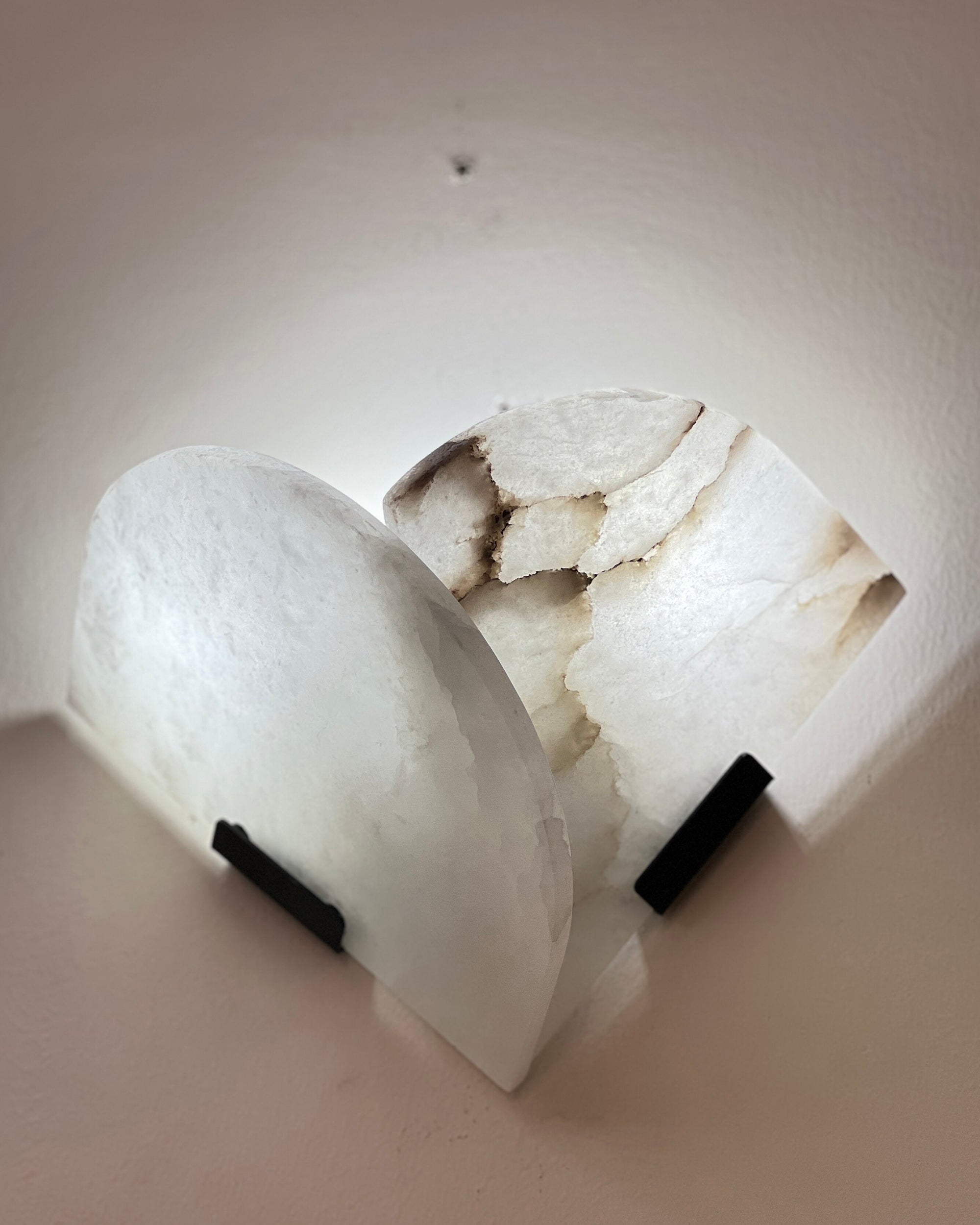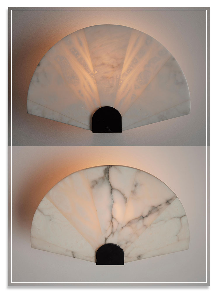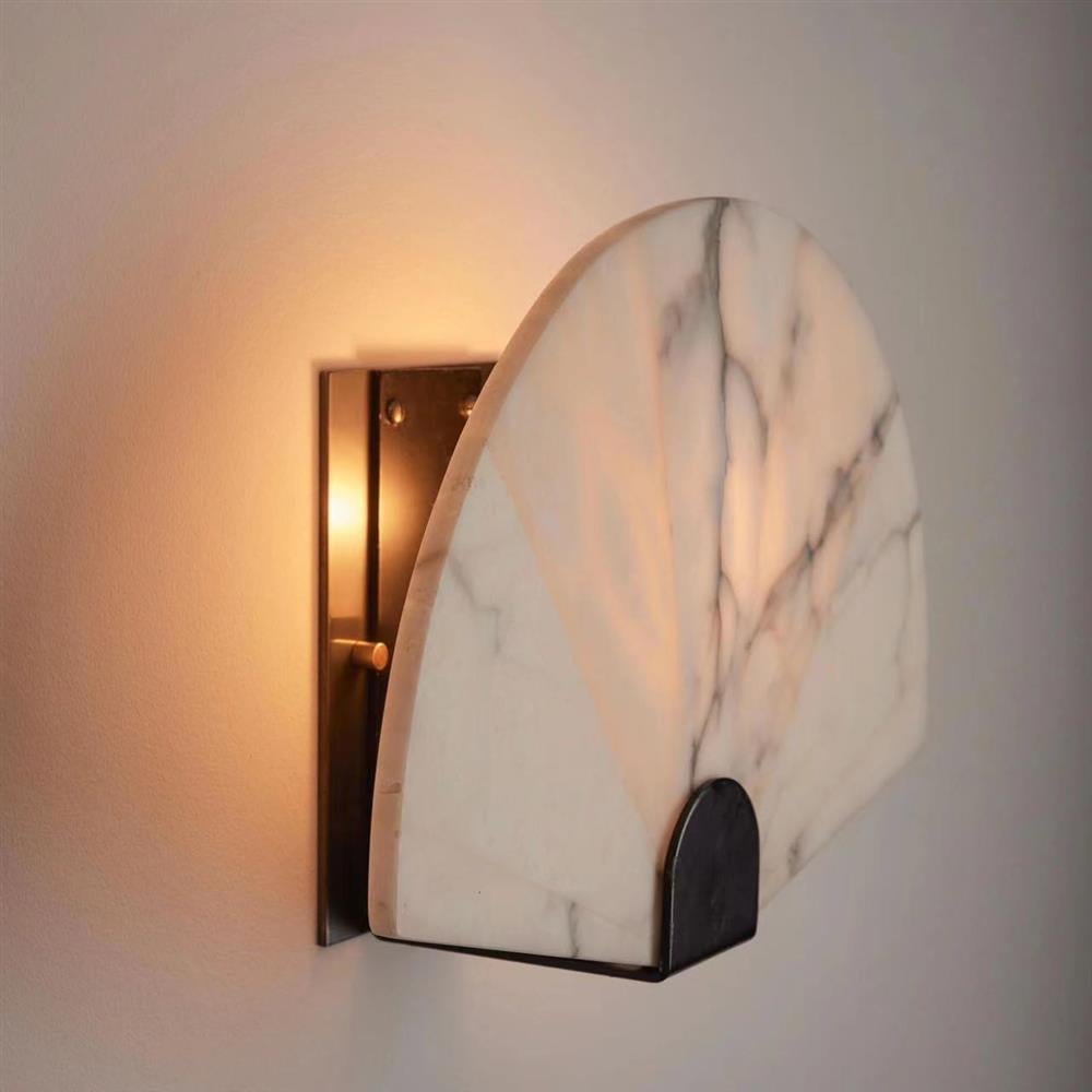 Elevate your home decor with the Fan-Shaped Alabaster Wall Light. This stunning wall lamp features a unique fan-shaped alabaster shade that diffuses light beautifully, creating a warm and inviting atmosphere. Perfect for hallways, living rooms, or bedrooms, it adds a touch of elegance and sophistication to any space. The combination of alabaster and sleek design makes it a versatile piece that complements both modern and traditional interiors. Illuminate your space with style and grace.