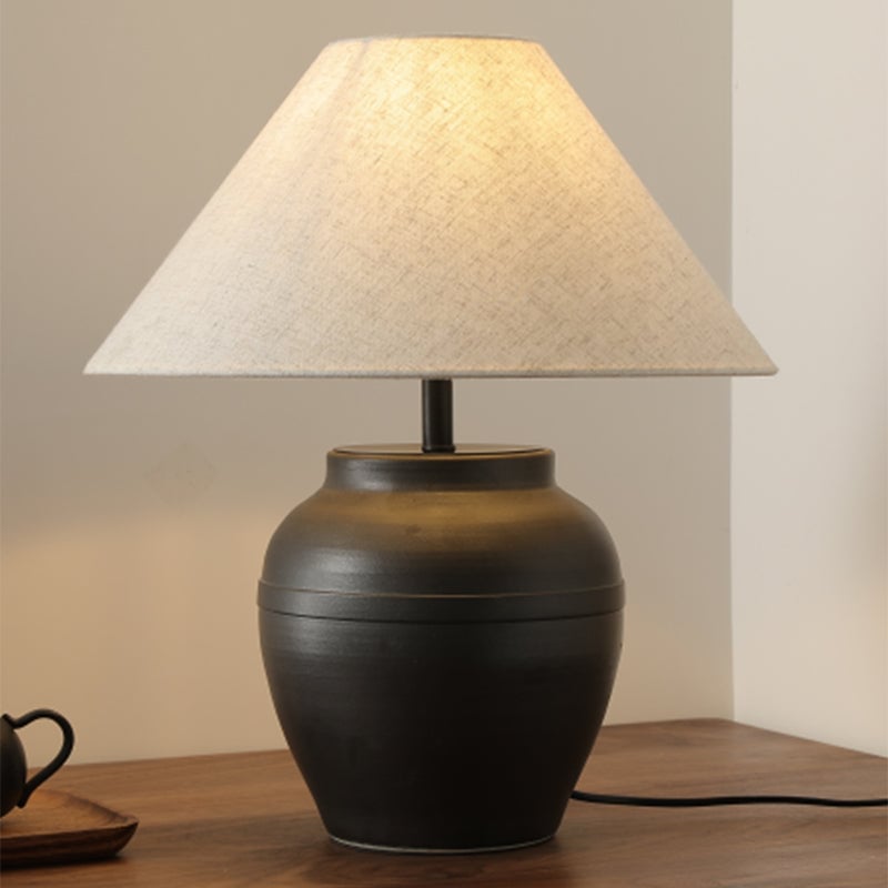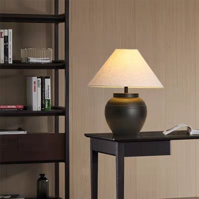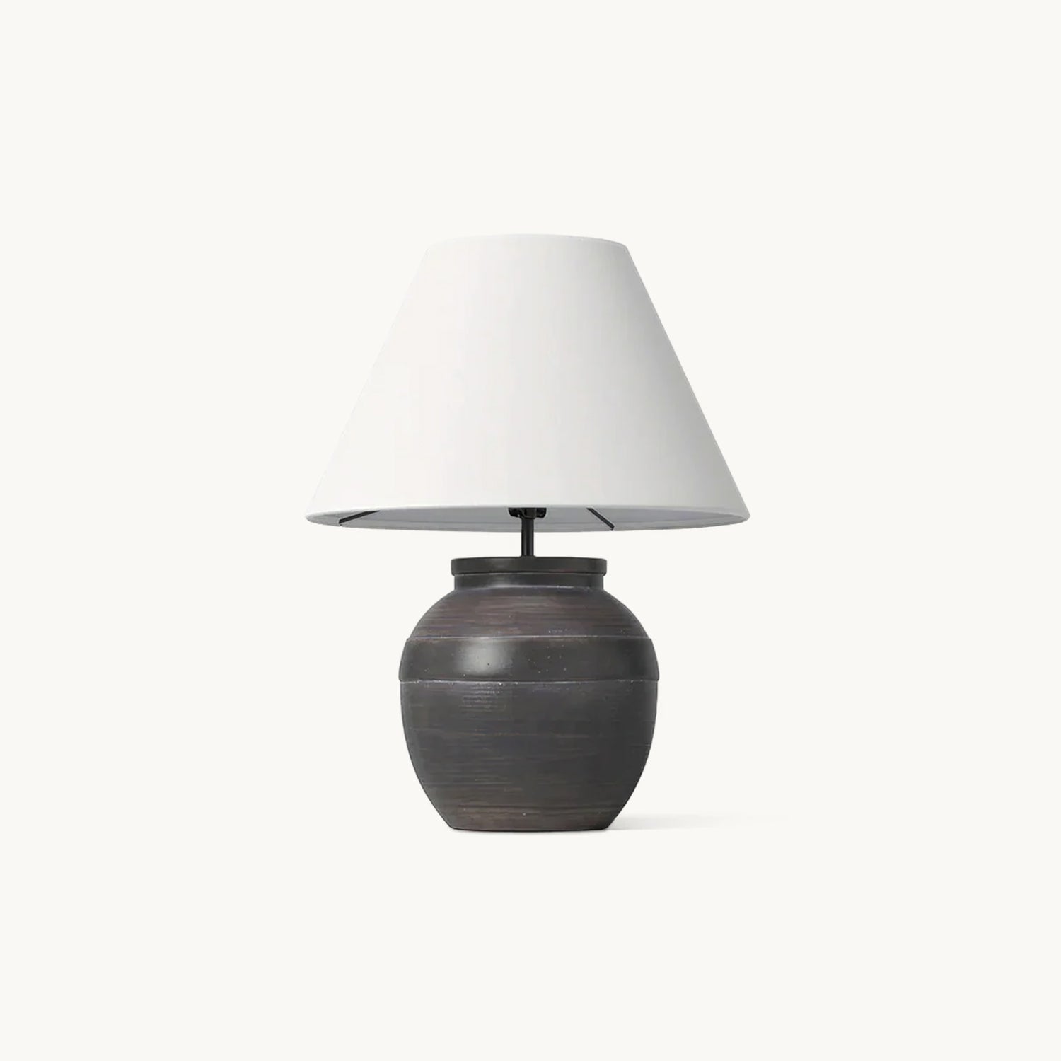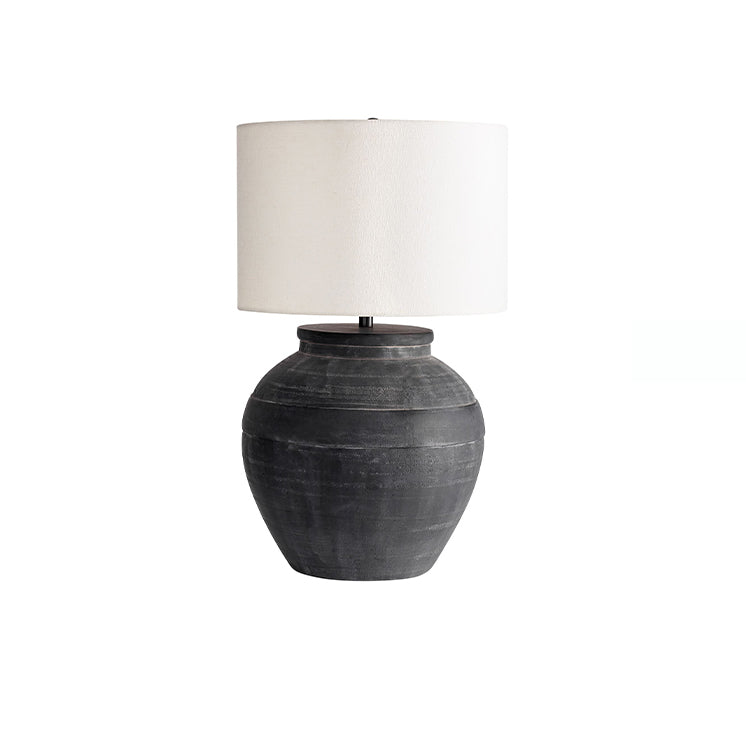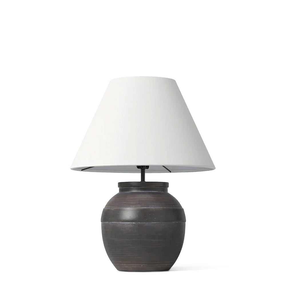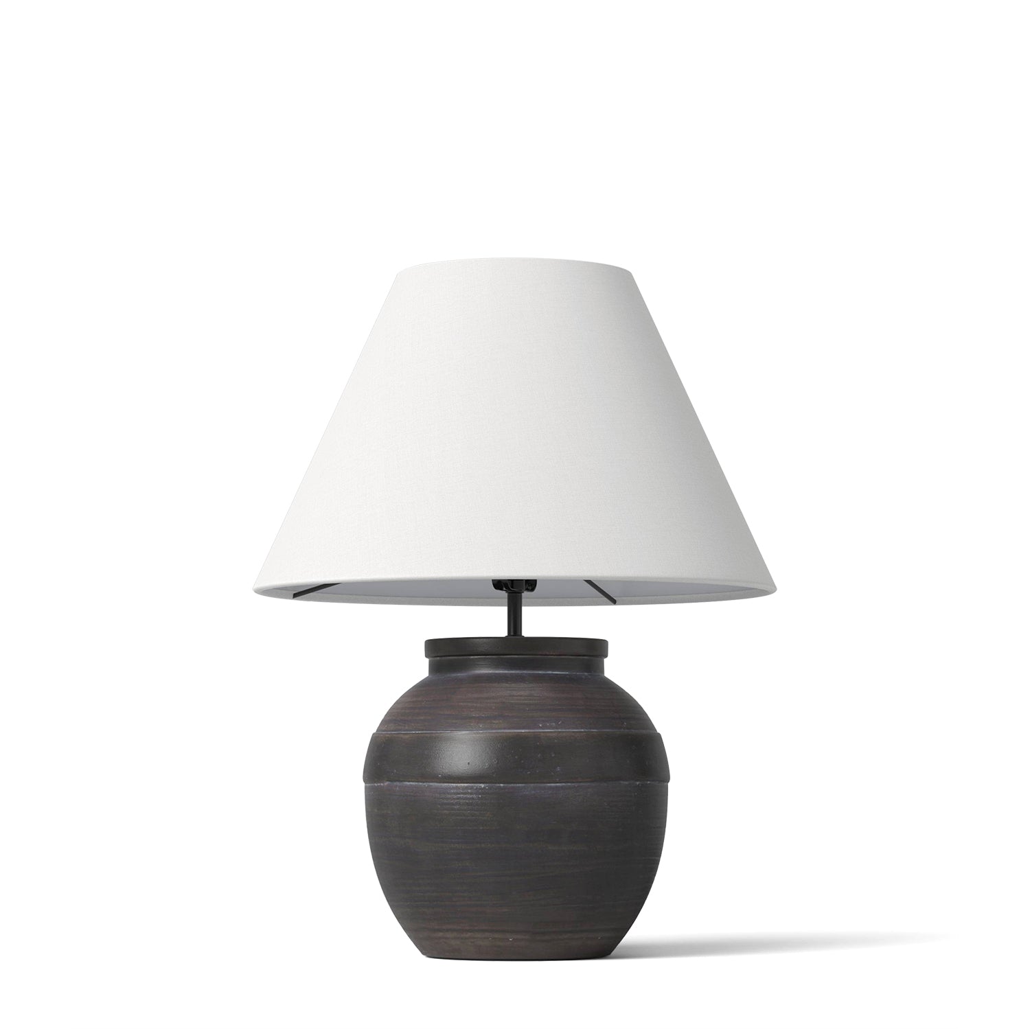 Update your everyday lighting with this Black Large Ceramic Table Lamp. This ceramic table lamp makes a great addition to your indoor lighting. It features a painted black base with an embossed band detail for decorative flair, and a white empire shade to finish off the fresh look. This simple table lamp comes with a simple on/off switch for effortless illumination, and it includes 1 LED bulb for instant use. Place it on a side table in your living room, family room, or on the console table for endless display potential around your home. Variations along the edges and subtle markings add a subtle antique feel and make each lamp one of a kind.