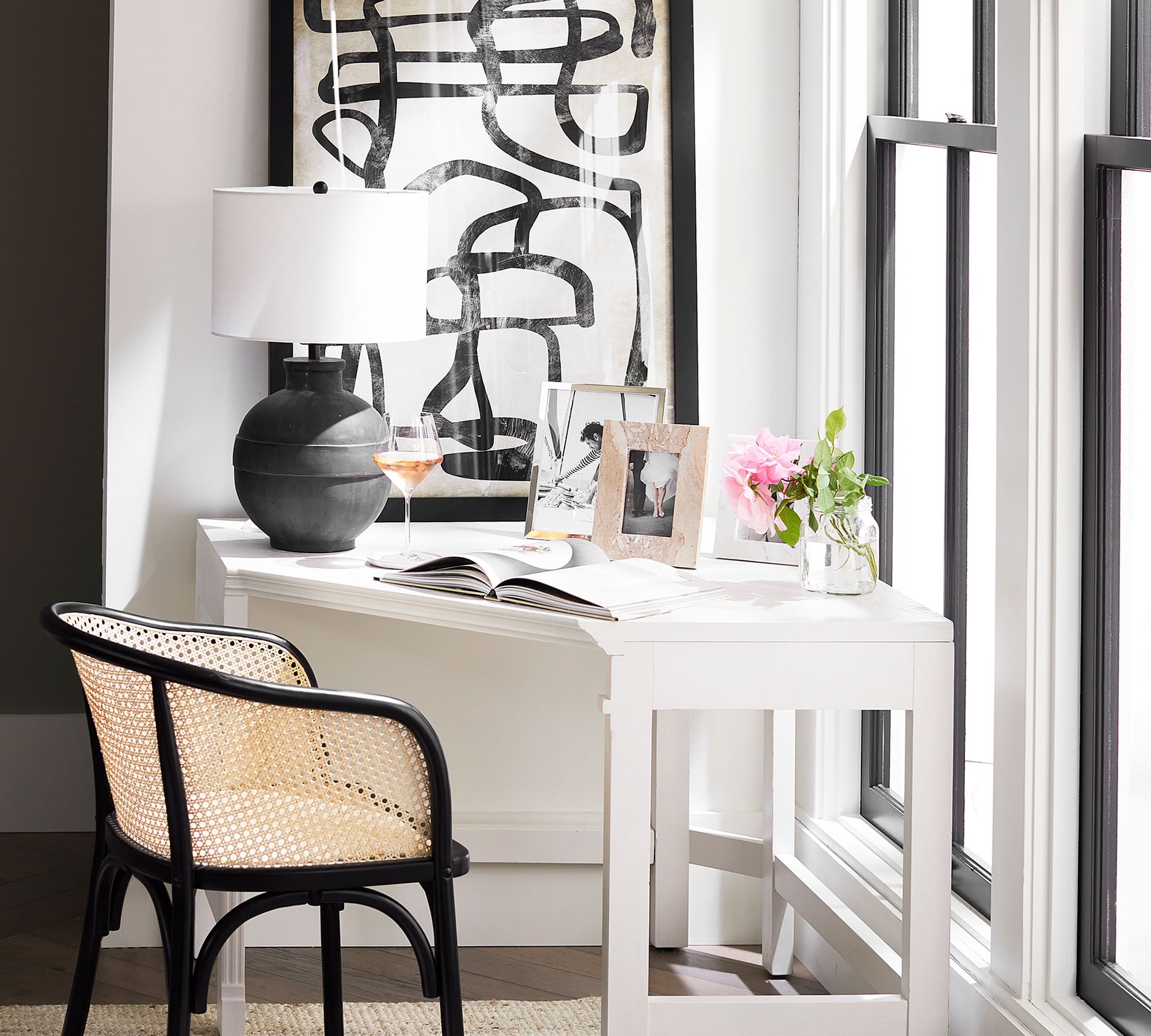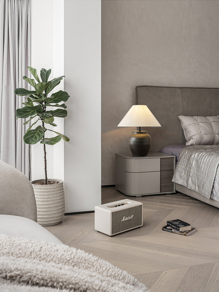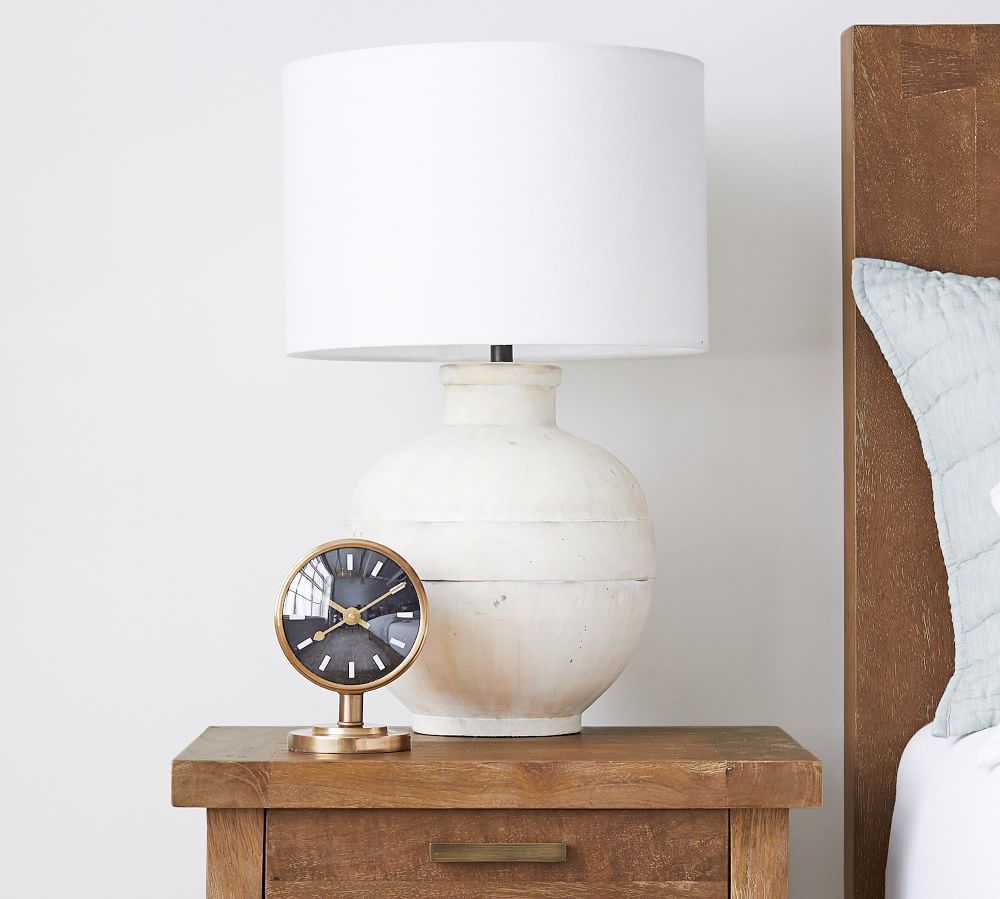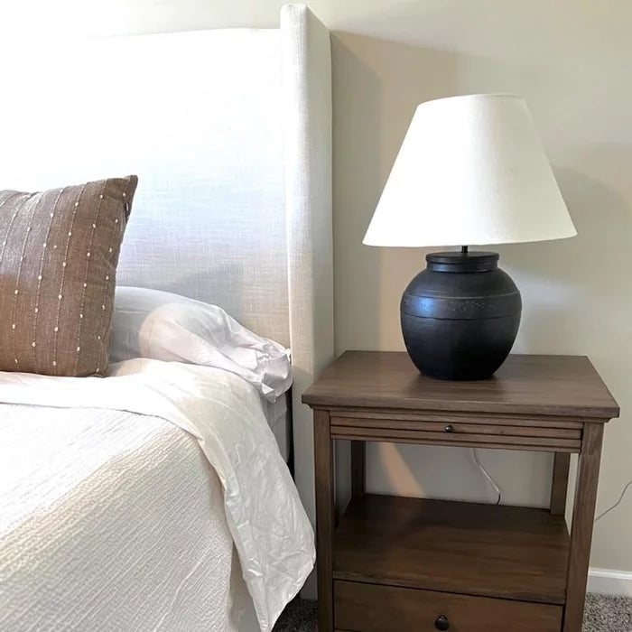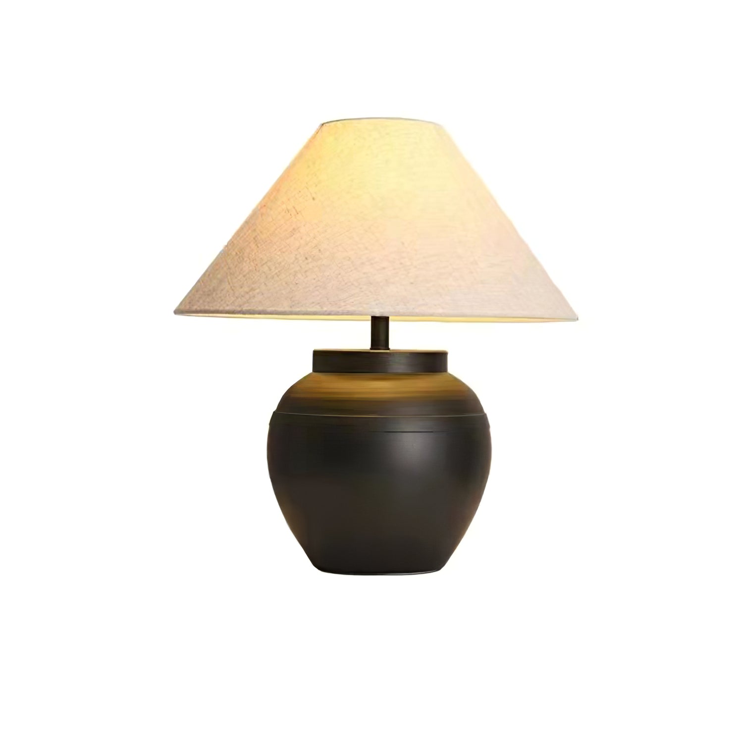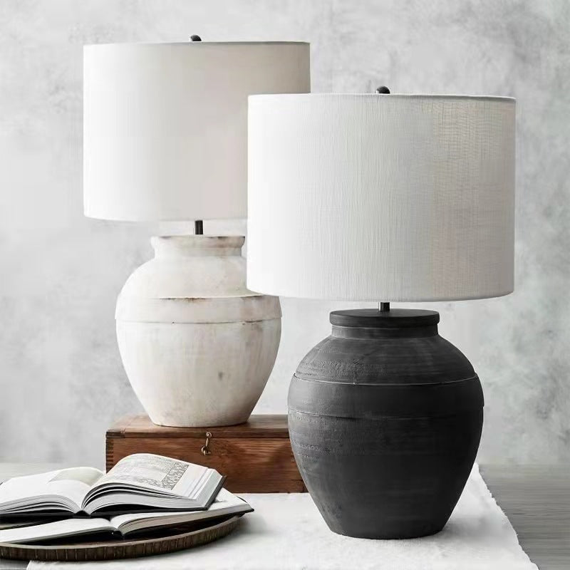 Update your everyday lighting with this Black Large Ceramic Table Lamp. This ceramic table lamp makes a great addition to your indoor lighting. It features a painted black base with an embossed band detail for decorative flair, and a white empire shade to finish off the fresh look. This simple table lamp comes with a simple on/off switch for effortless illumination, and it includes 1 LED bulb for instant use. Place it on a side table in your living room, family room, or on the console table for endless display potential around your home. Variations along the edges and subtle markings add a subtle antique feel and make each lamp one of a kind.