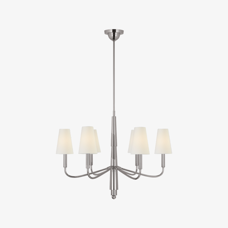 Upgrade your space with the Farlane Small Chandelier, featuring sleek arms and romantic curves. Add a touch of elegance to your entryway, dining room, or bedroom with a variety of sophisticated metal finishes to match your home's style. Transform your space with this exquisite piece!