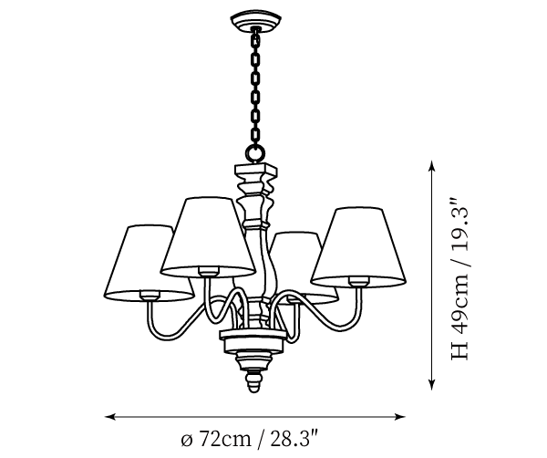 - 4 Heads: Dia 72cm x H 49cm / ∅ 28.3″ x H 19.3"