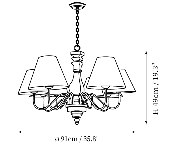 - 6 Heads: Dia 81cm x H 49cm / ∅ 31.9″ x H 19.3"