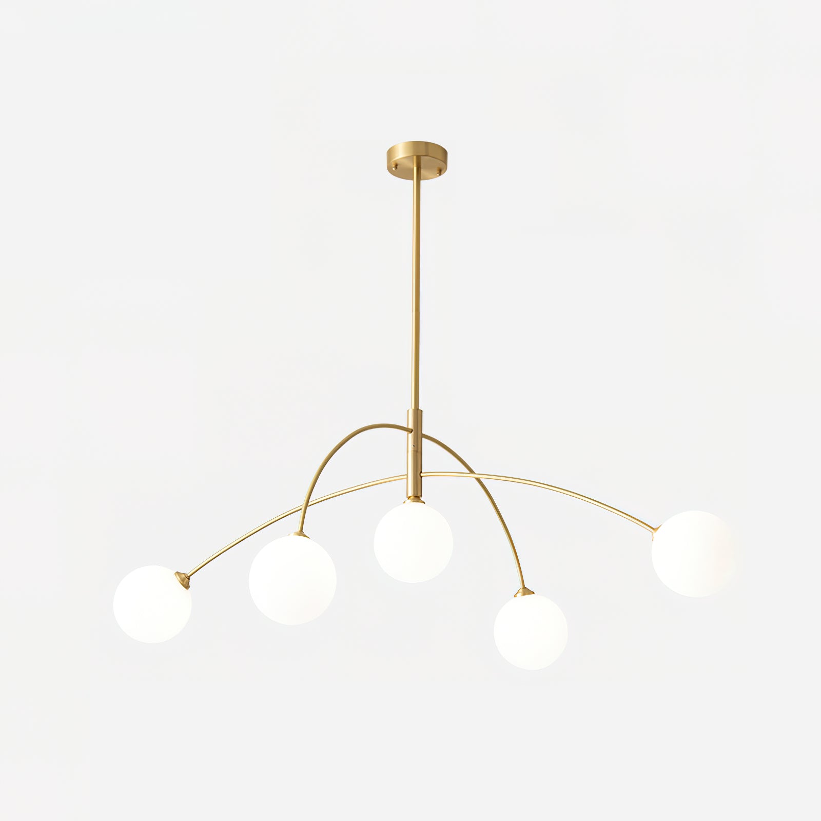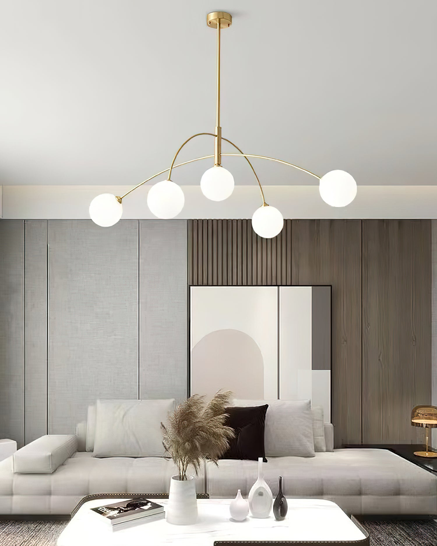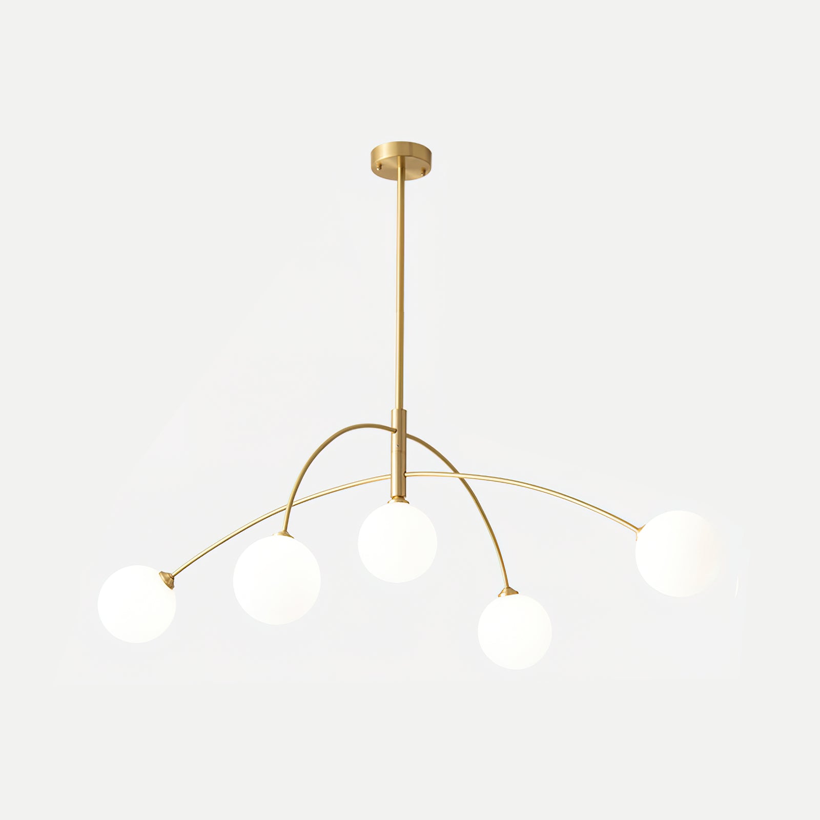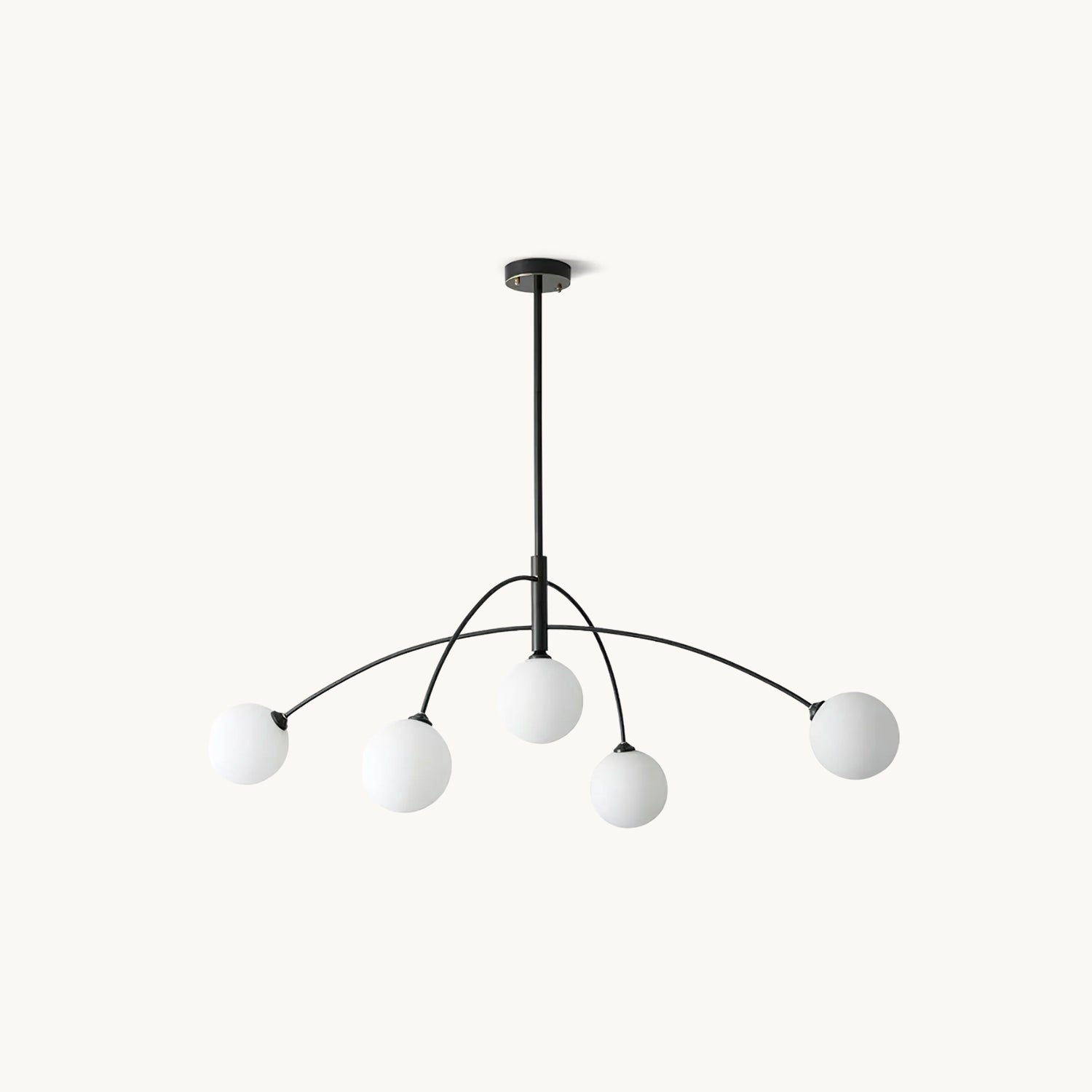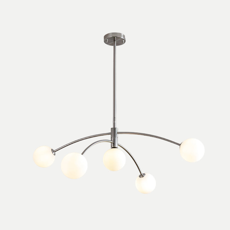Elevate your space with the Fellows Chandelier from Mooijane. This chandelier features a minimalist design that combines metal and glass elements to add a touch of modern sophistication to any room. This chandelier is perfect for adding a touch of glamour to any space, be it a modern living room, hallway, or grand dining room.