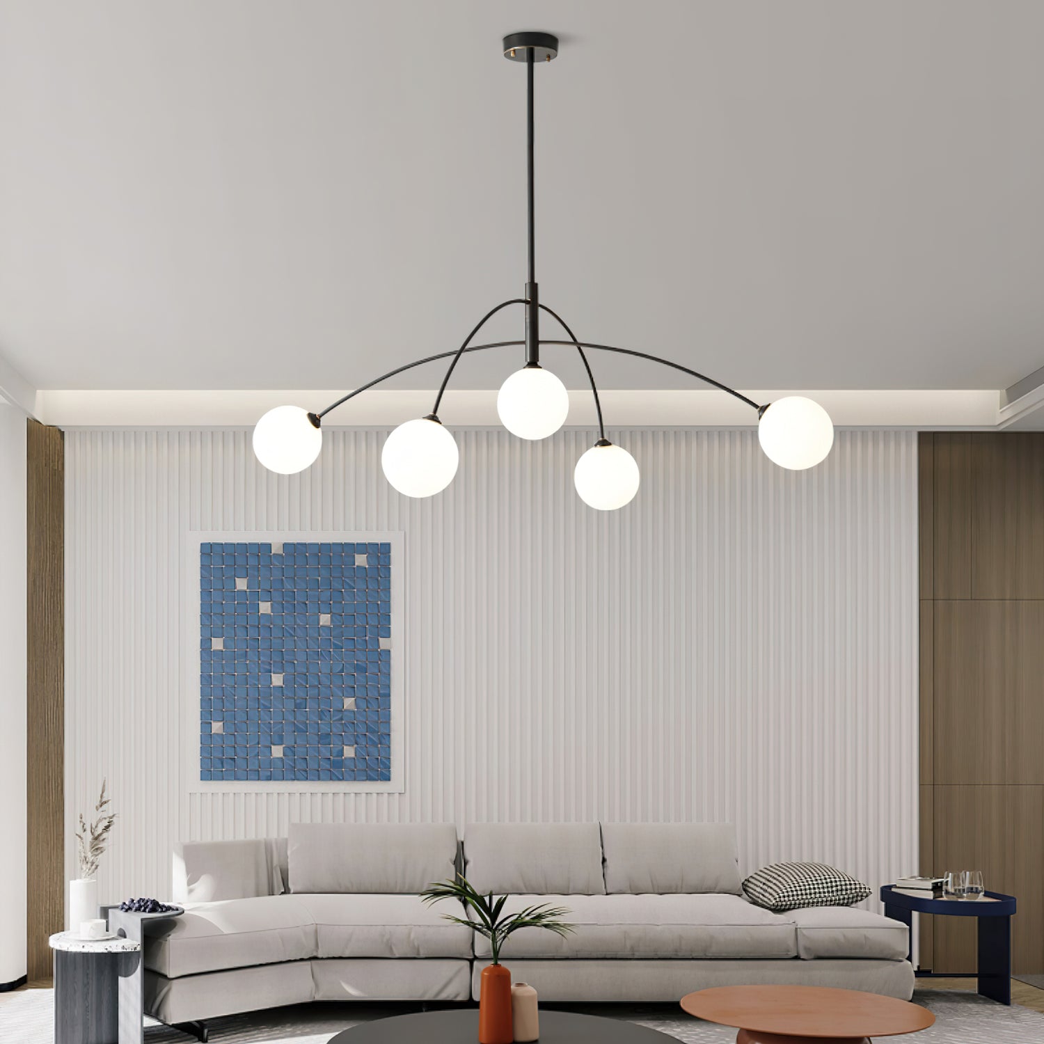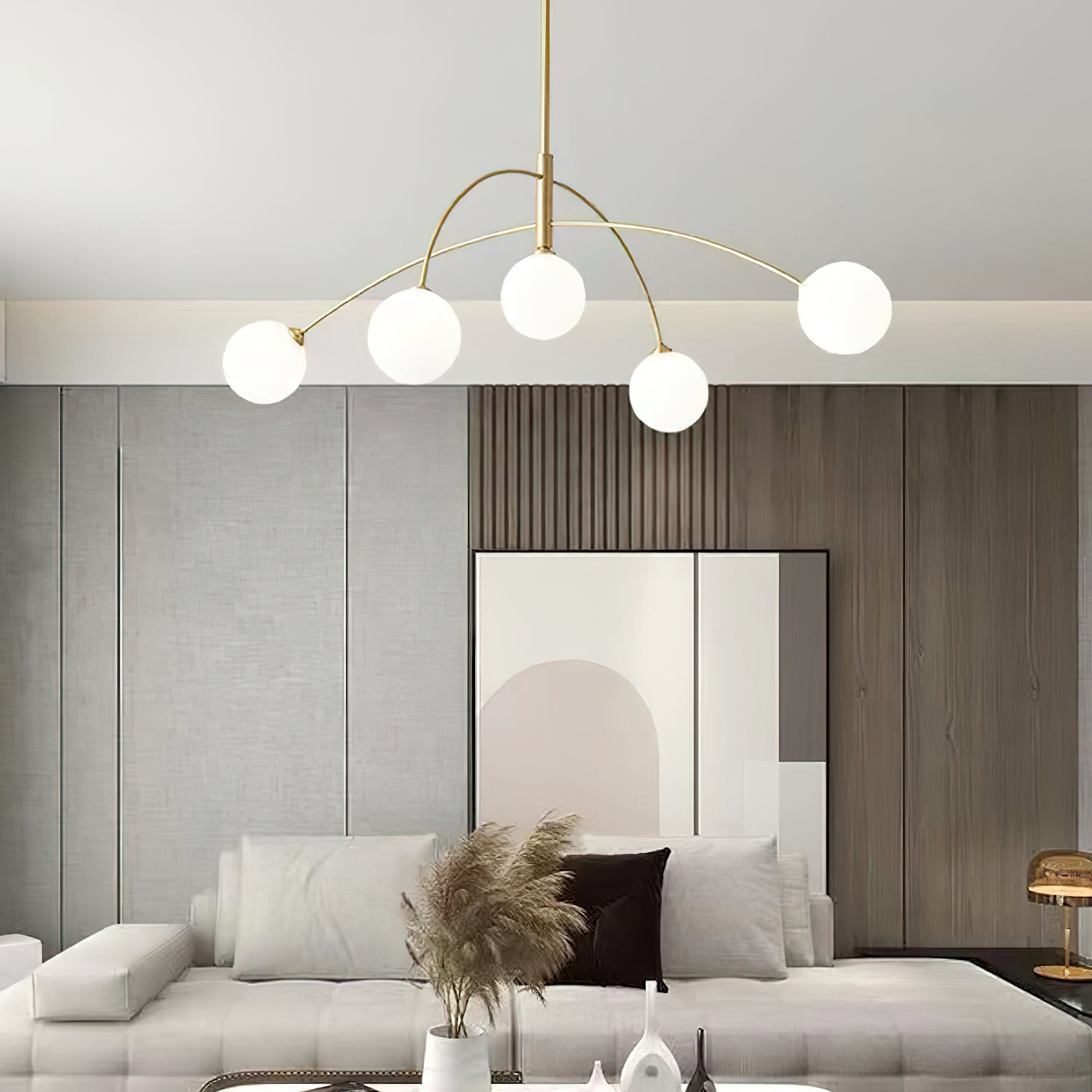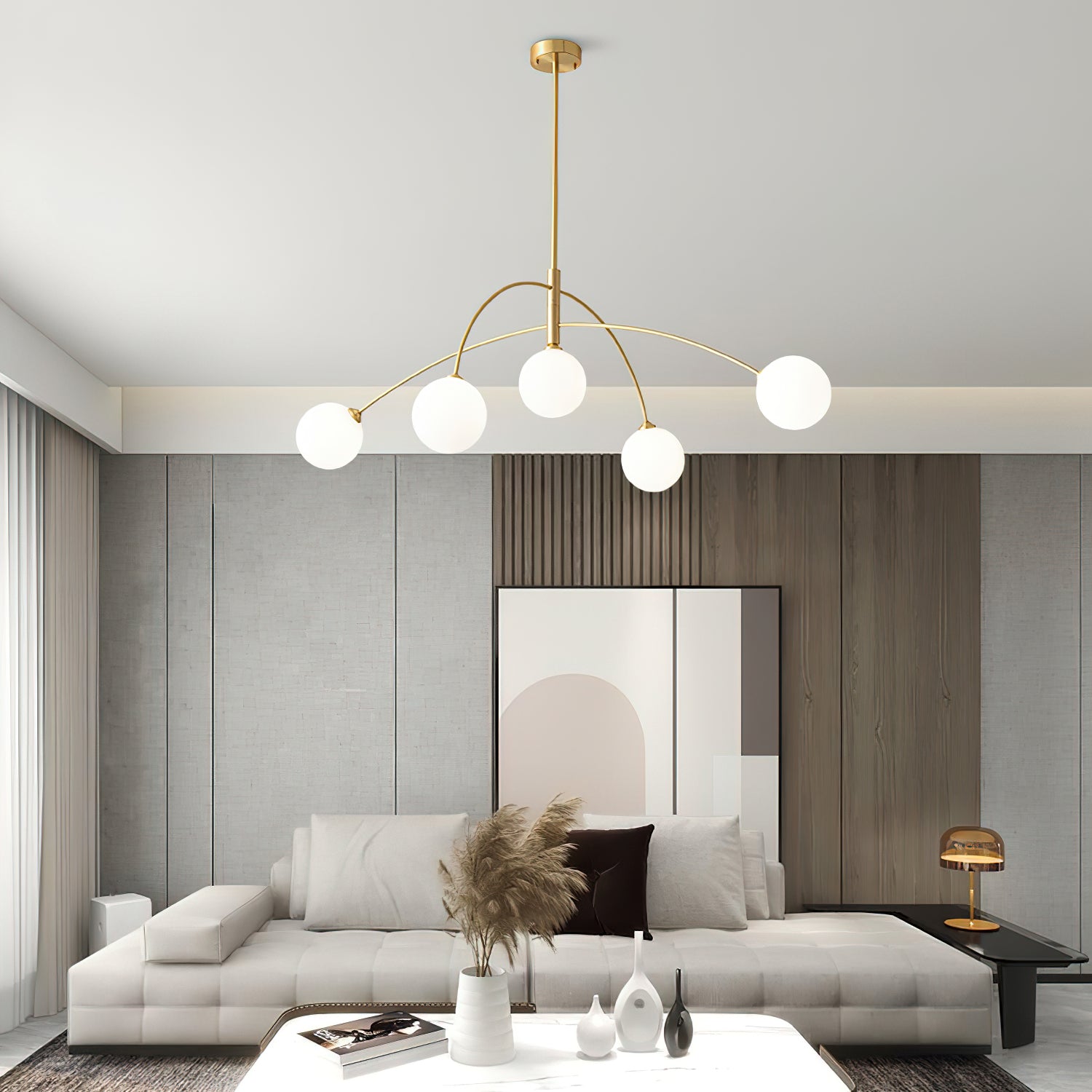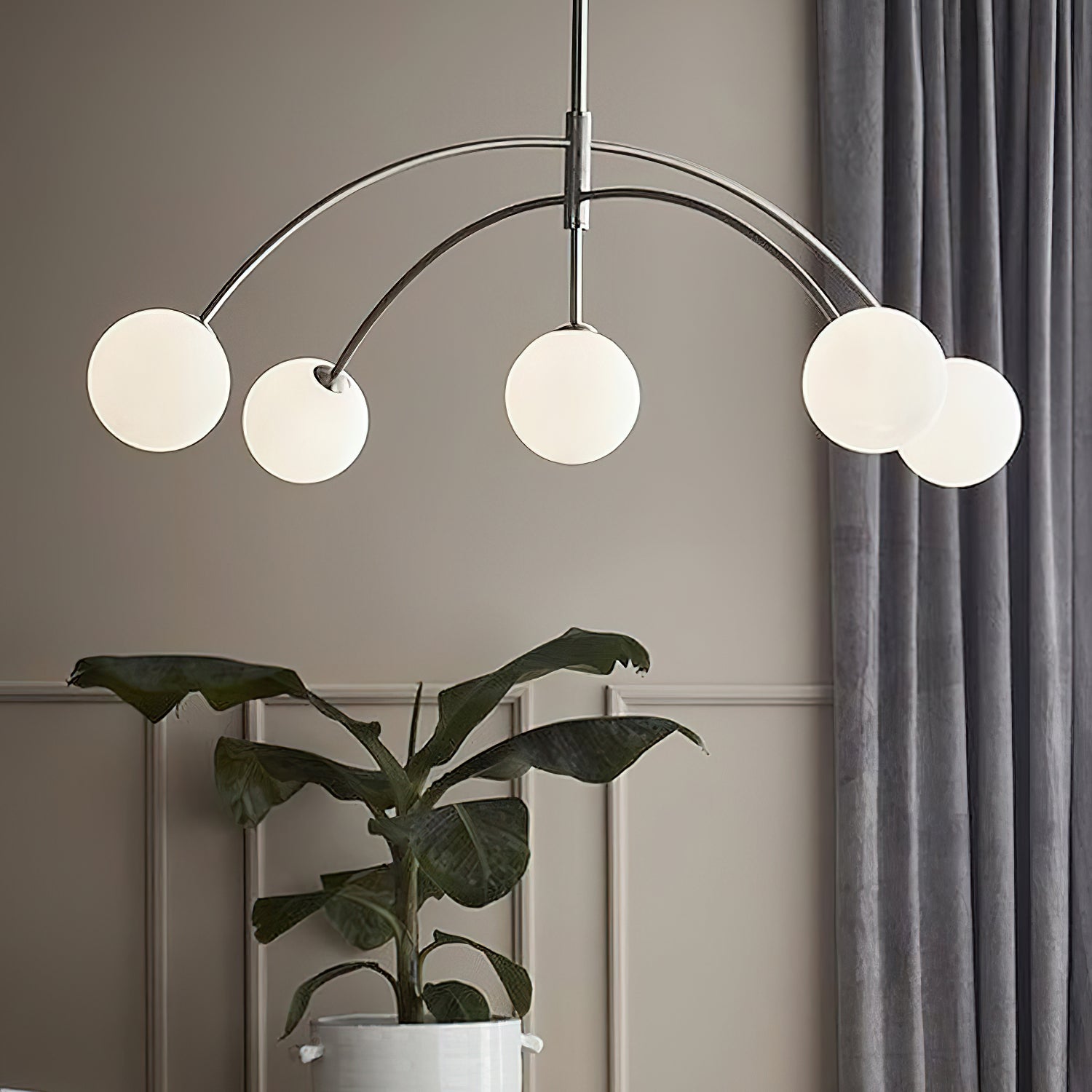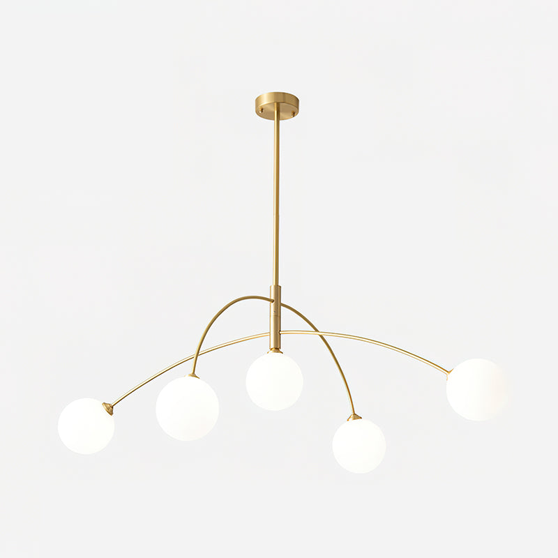 Elevate your space with the Fellows Chandelier from Mooijane. This chandelier features a minimalist design that combines metal and glass elements to add a touch of modern sophistication to any room. This chandelier is perfect for adding a touch of glamour to any space, be it a modern living room, hallway, or grand dining room.